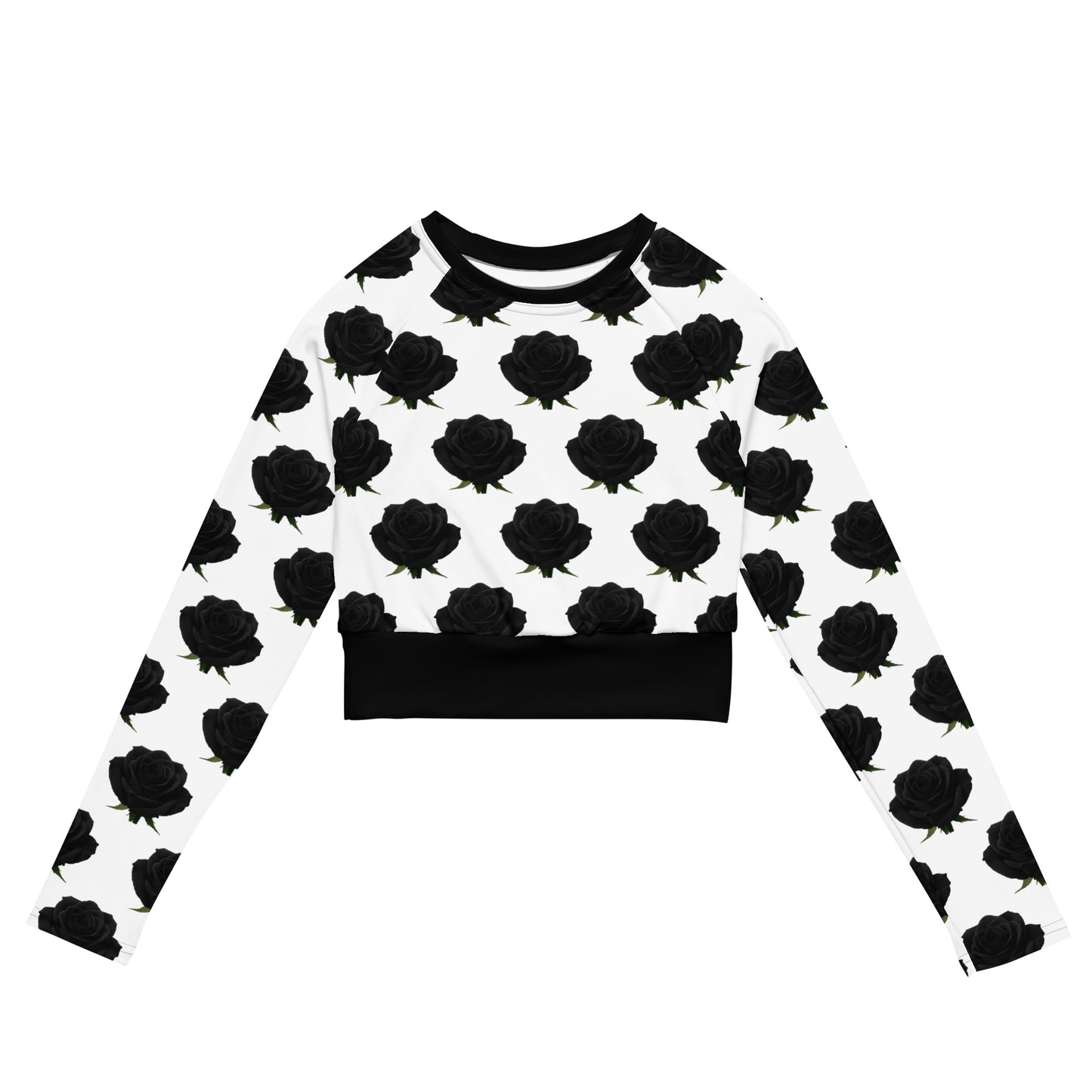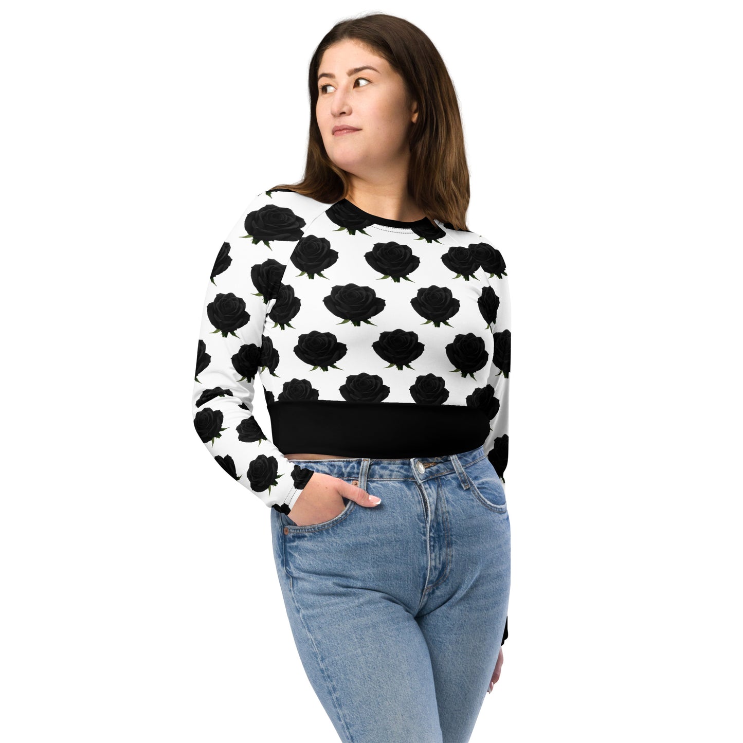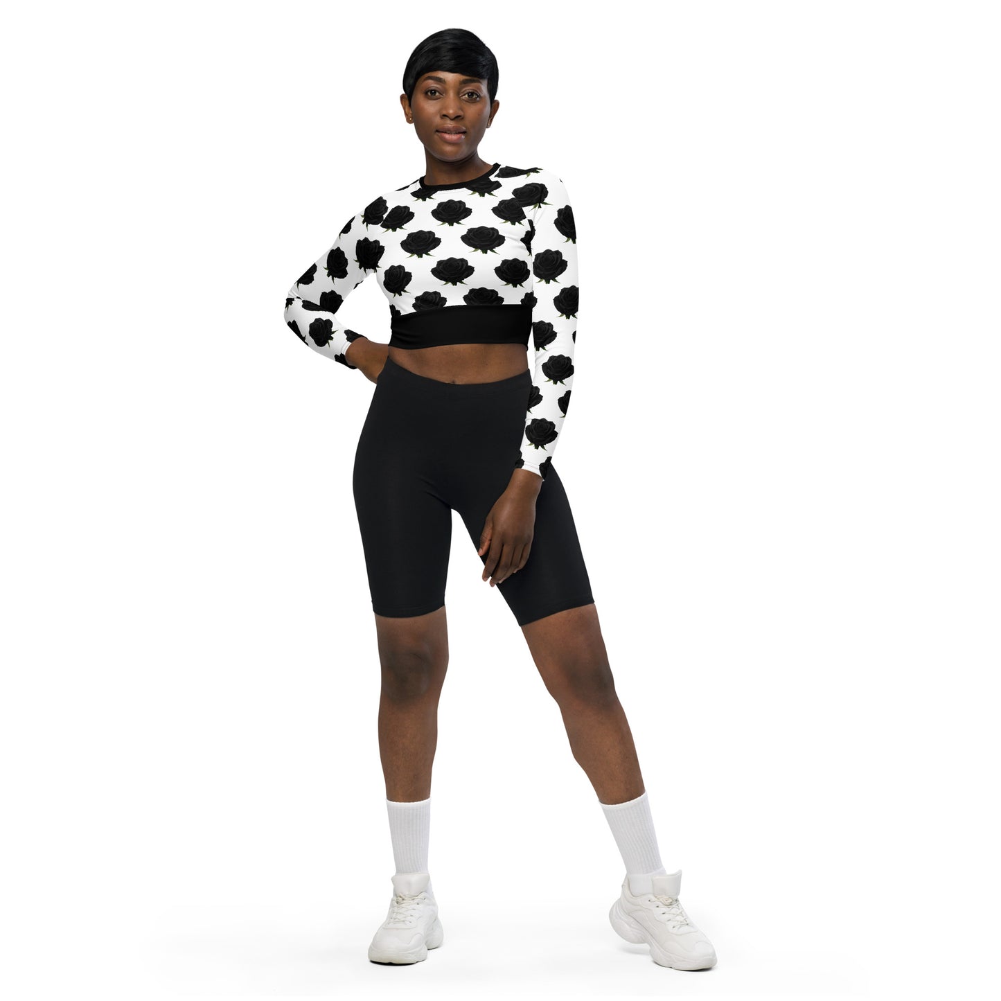 Black Rose Bloom – Women’s Long Sleeve Crop Top