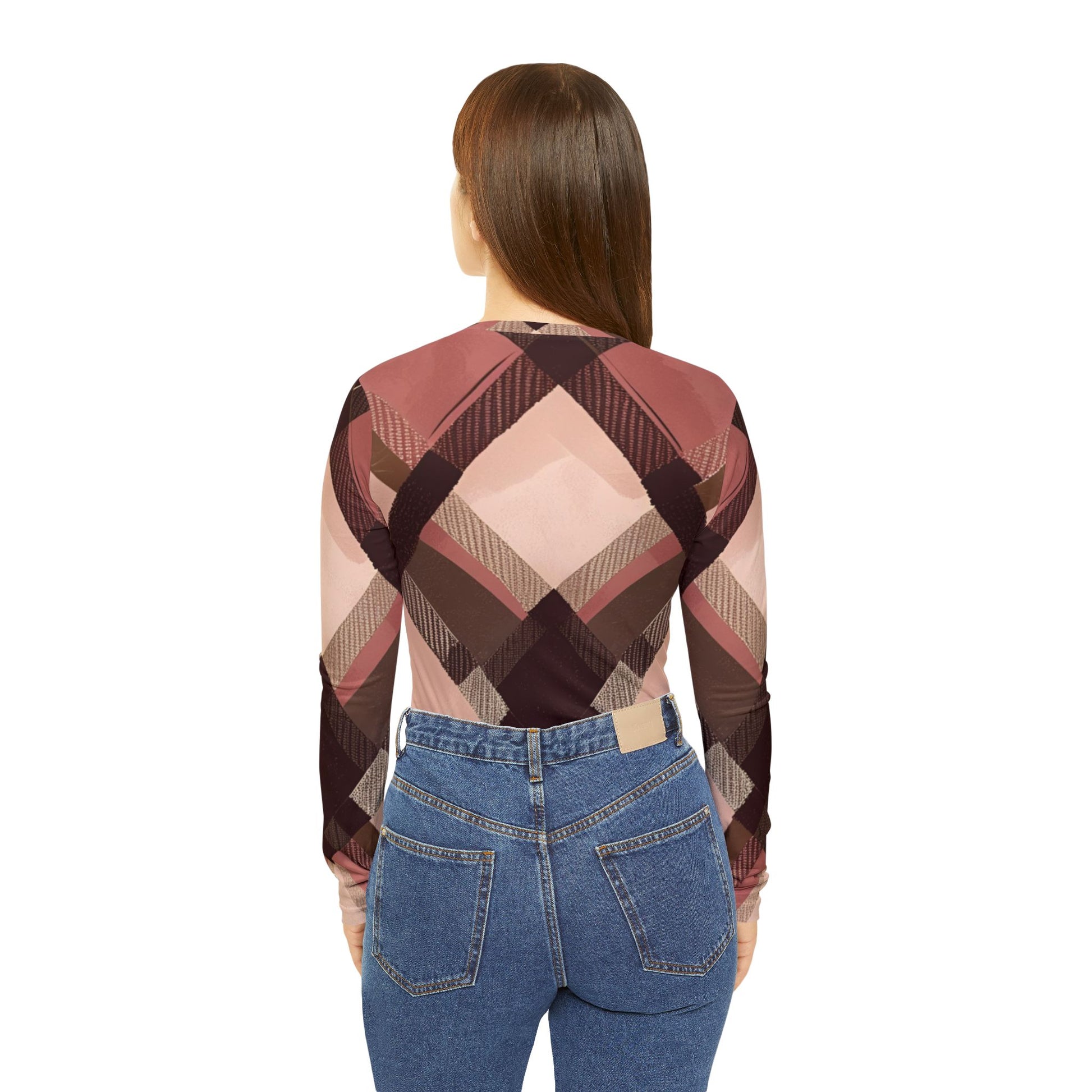 Blush & Mocha Plaid V-Neck Long Sleeve Top, Casual Fashion Top, Perfect for Layering, Fall Fashion, Cozy Everyday Wear