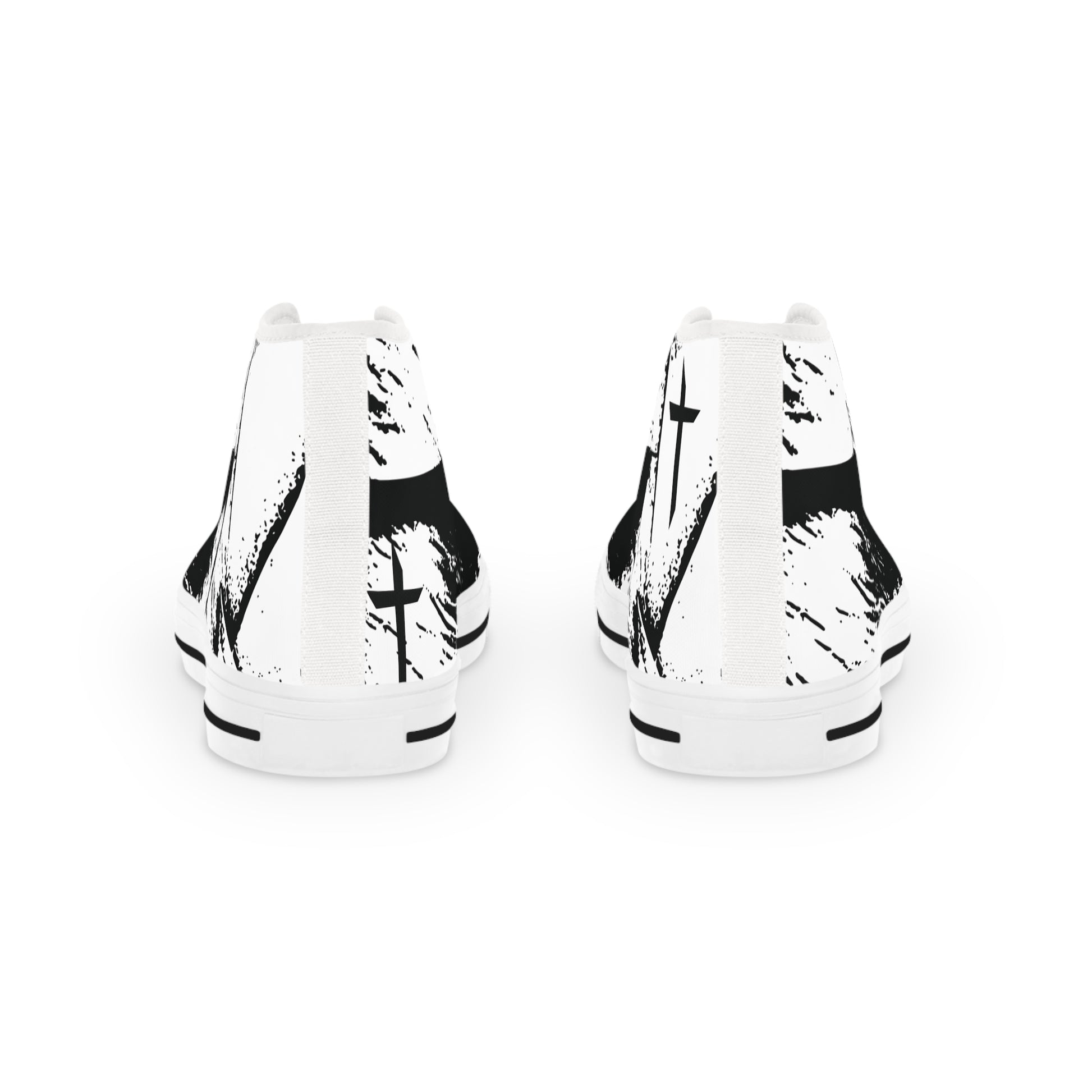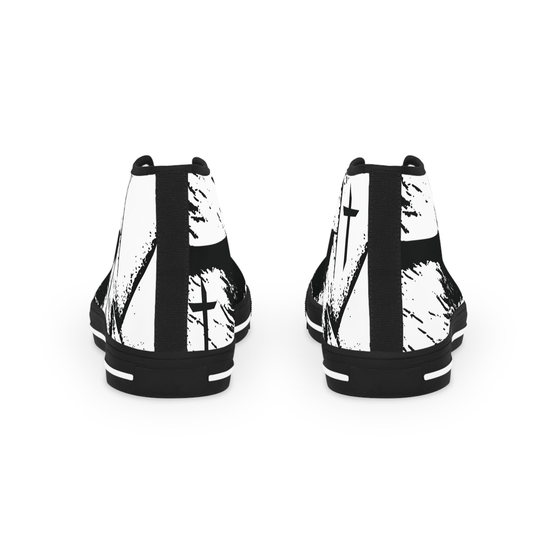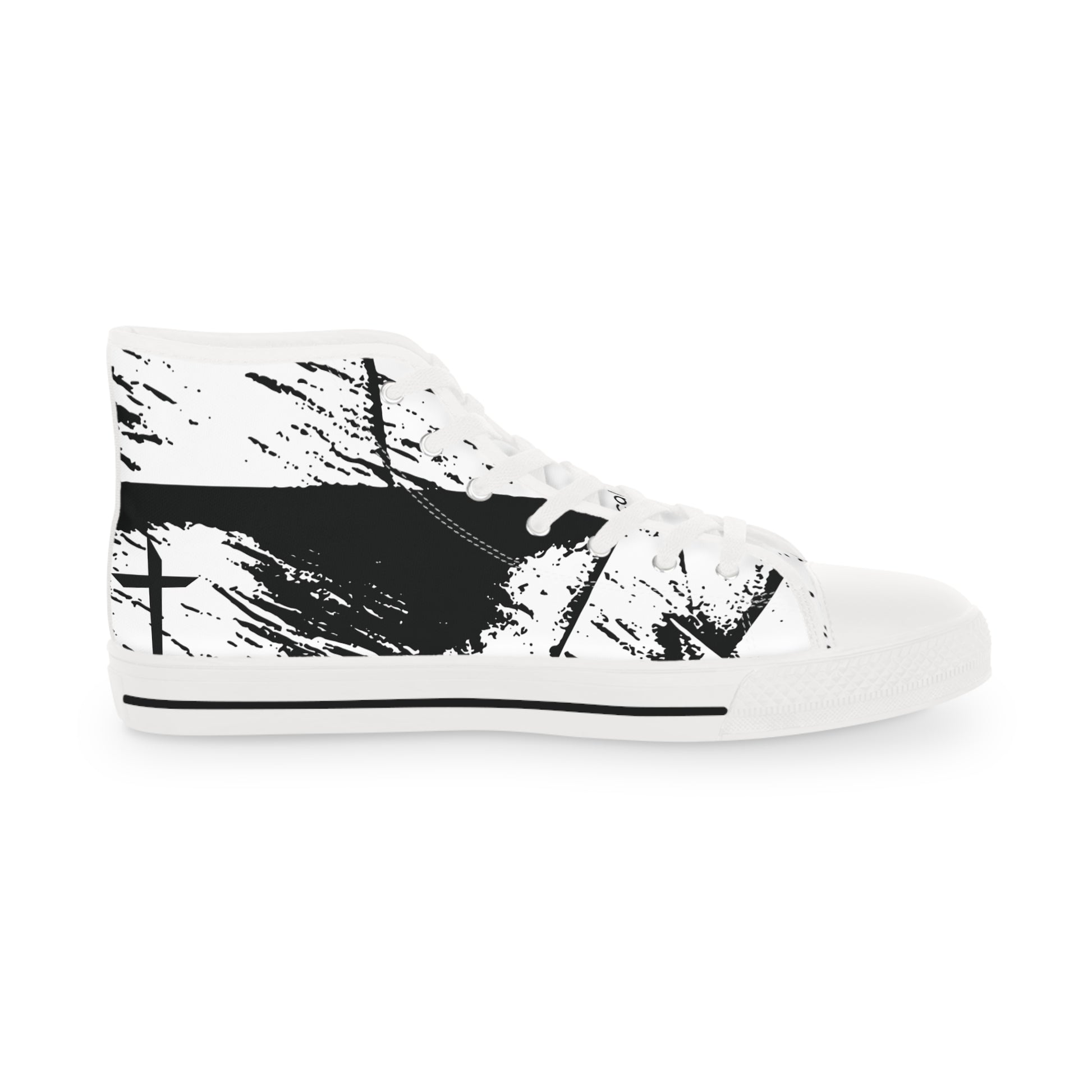 Step into Bold Foundations, where sharp, abstract design meets unshakable purpose. The black-and-white geometric print delivers a fearless, urban edge, while the comfort-driven build keeps you ready for whatever the day holds. Whether you’re walking in faith or making a statement on the street, these high-tops are built to move with you.