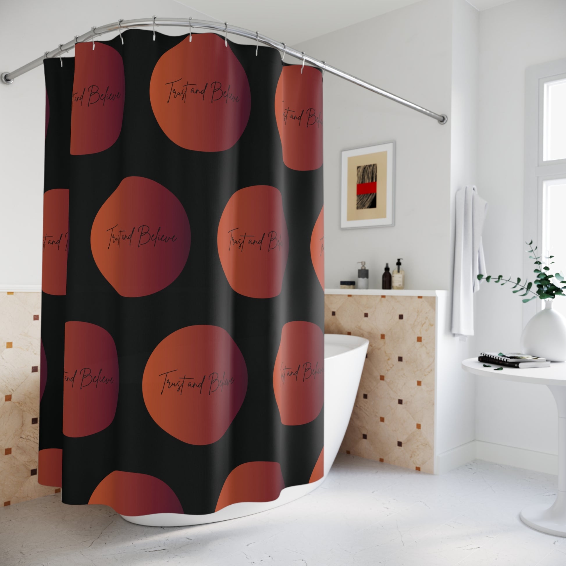 Step into your sanctuary wrapped in strength and bold belief. This striking shower curtain features deep earthy tones with powerful circles that carry the message: Trust and Believe. It’s more than décor—it’s a daily declaration that anchors your spirit in faith, even in the smallest routines. Designed to uplift, protect, and remind you that even the storm has to yield to trust.