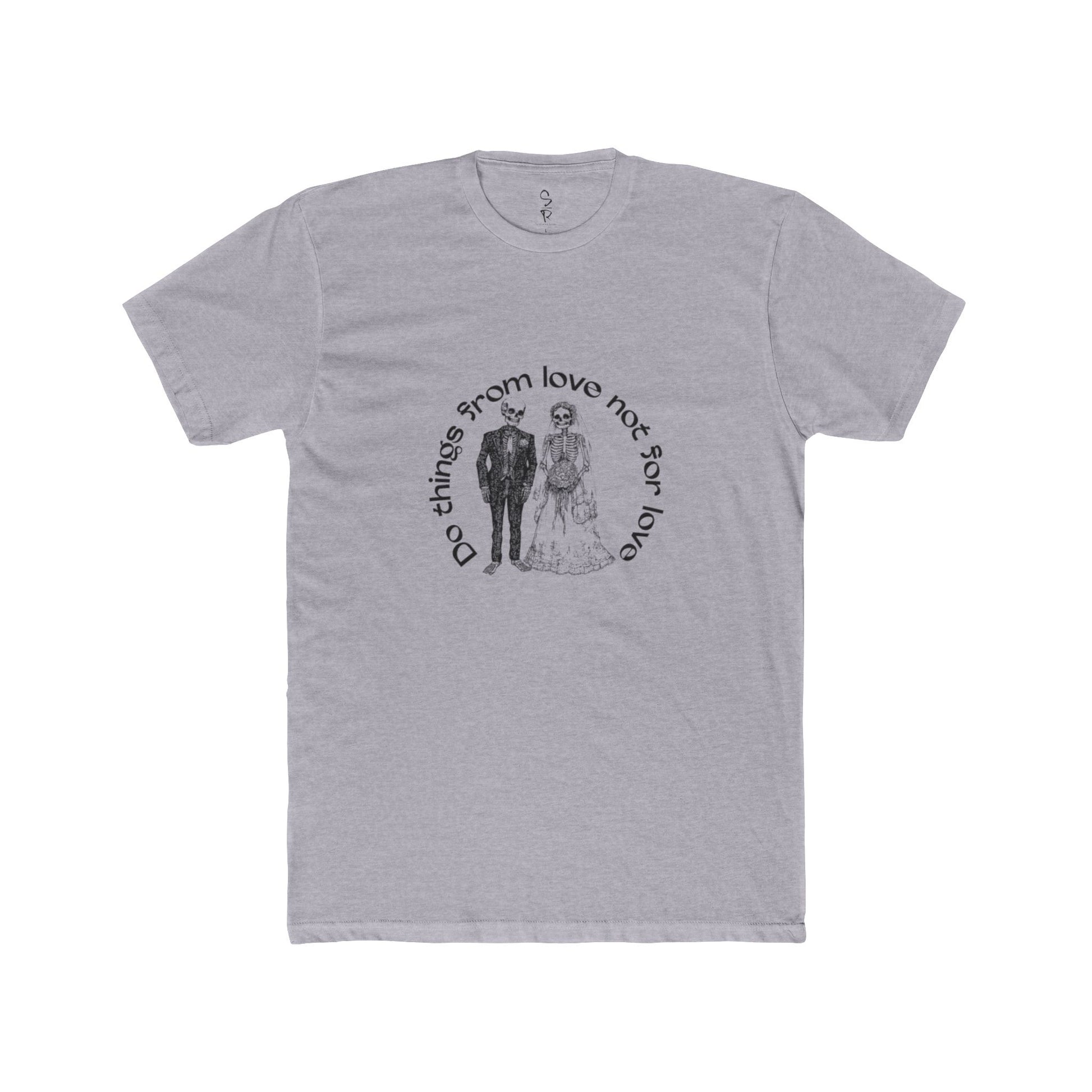 What drives you? This tee flips the question on its head—Do things from love, not for love. At the center, a hand-drawn skeletal bride and groom stand as stark, haunting icons of what happens when performance replaces purpose.