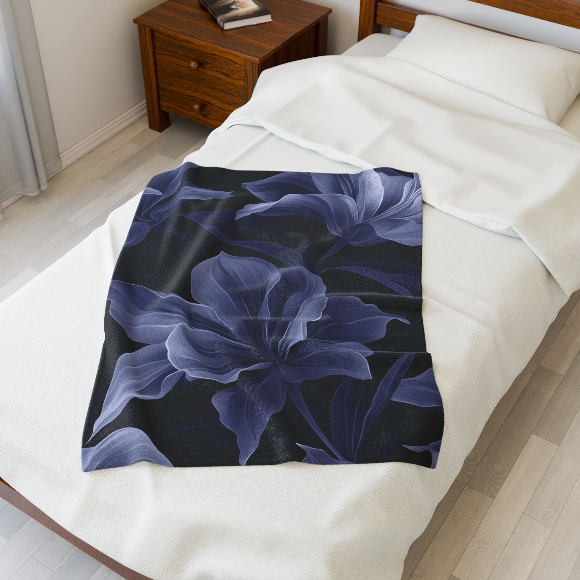Envelop yourself in the elegance of night with the Midnight Bloom Throw Blanket. Featuring graceful indigo and violet petals flowing across a jet-black canvas, this lightweight yet cozy accent piece adds bold sophistication to any space. Whether draped over a chair or wrapped around your shoulders, it's where comfort meets midnight charm.