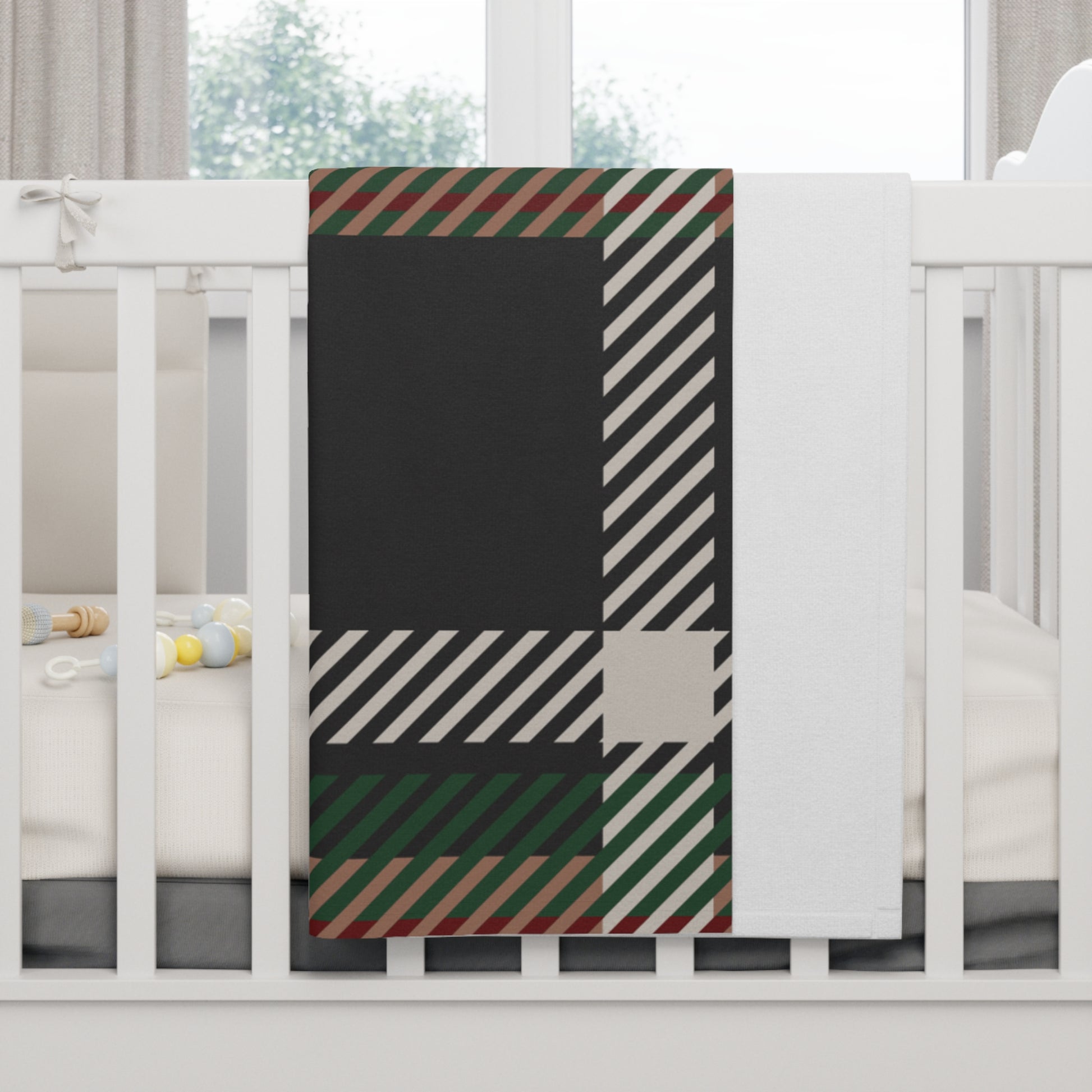A blanket that speaks strength over their slumber. The Faithful Tartan Baby Blanket offers more than warmth — it delivers covering with purpose. Designed in a classic-yet-bold tartan of charcoal black, forest green, oxblood, mocha mousse, and stone beige, this piece wraps little ones in modern heritage.