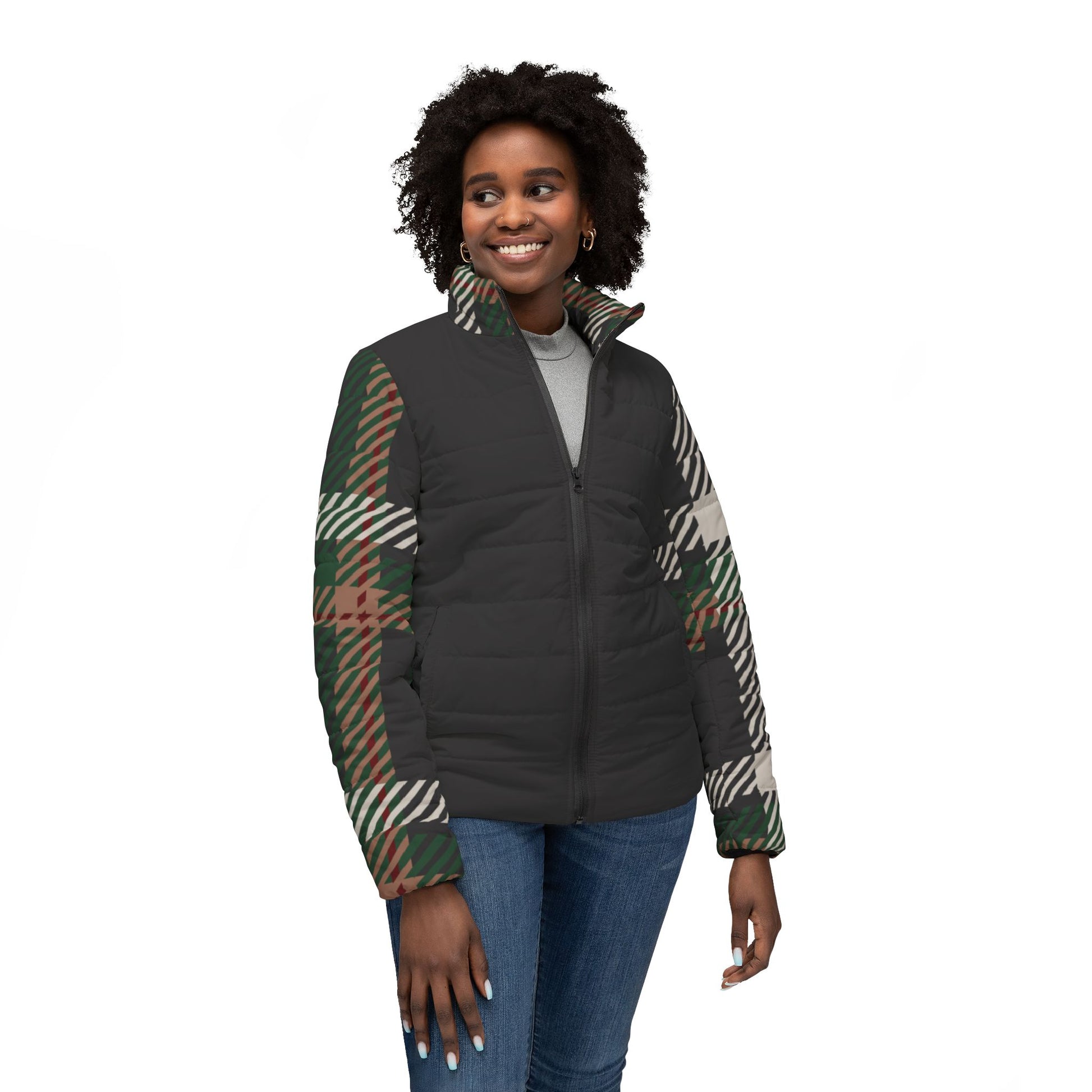 Faithful Tartan Puffer Jacket – Black Edition - Women's