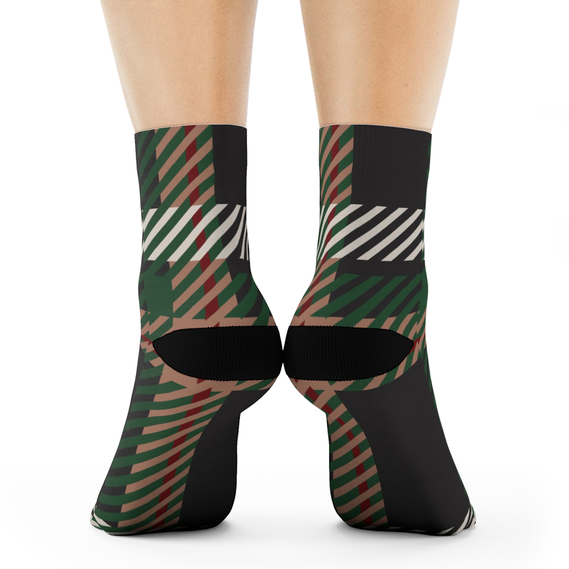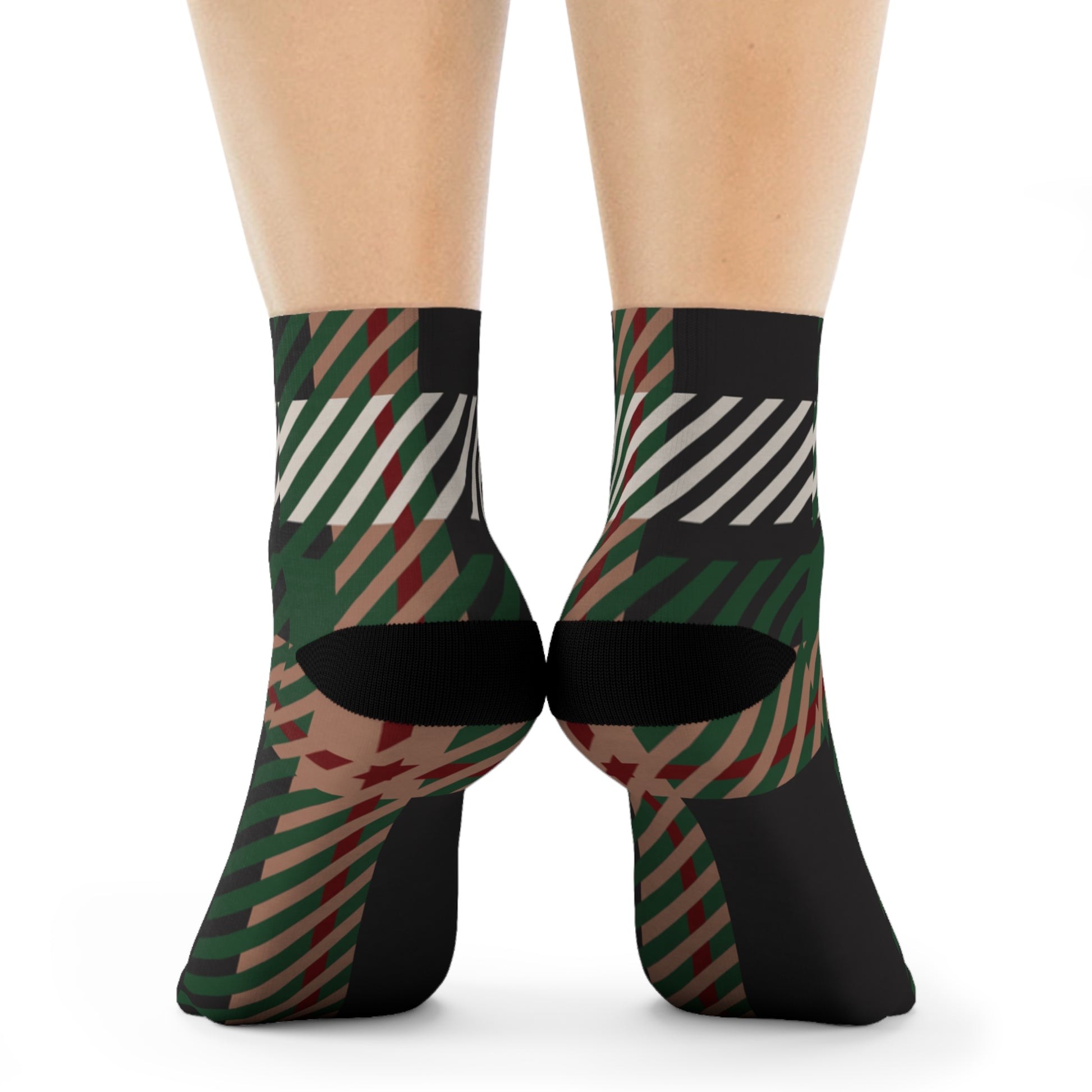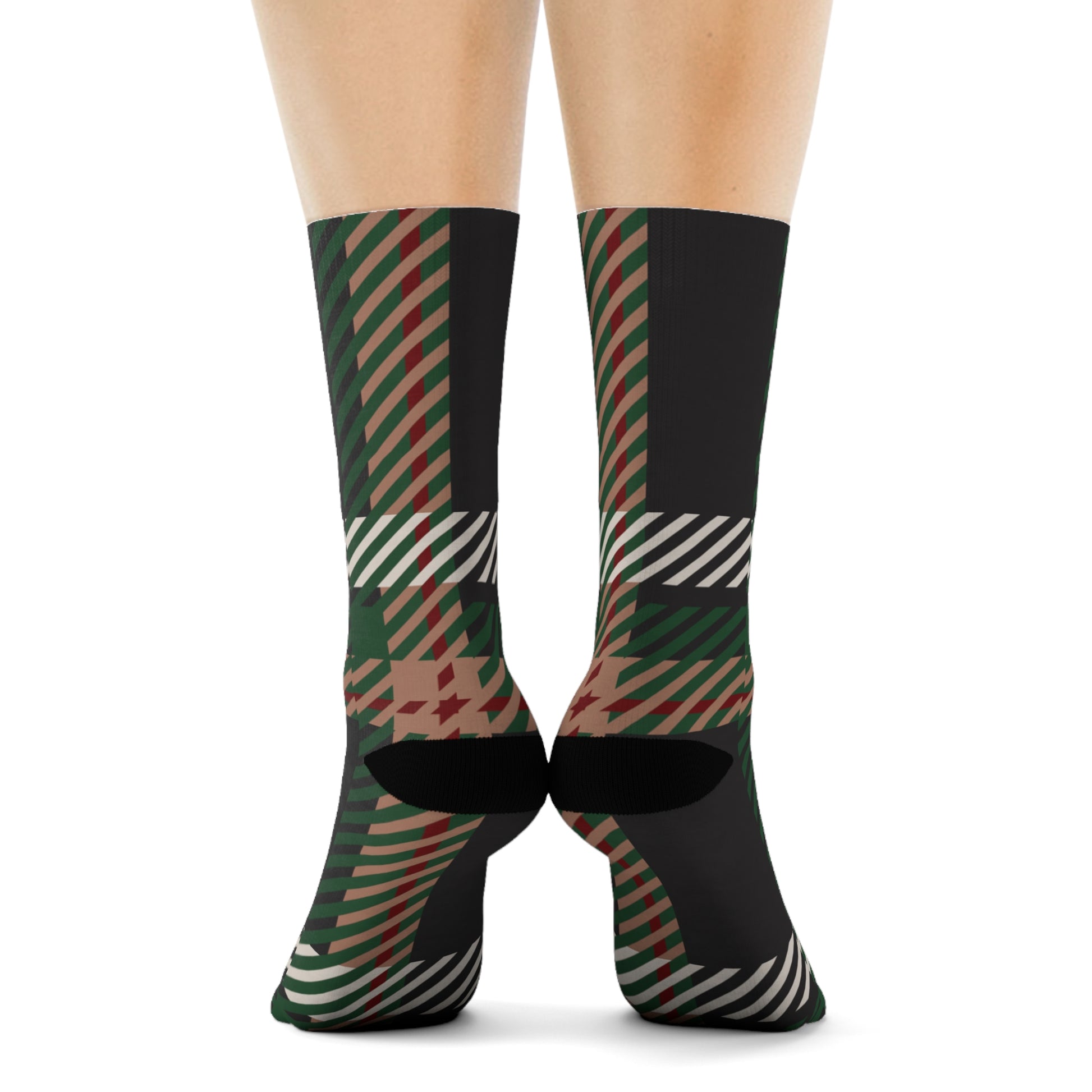 The deep greens, oxblood lines, mocha accents, and stone beige blocks mirror the collection’s call to grounded beauty and unwavering faith. Whether peeking out from boots or layered under winter fits, they carry the same message: the pattern is divine, the journey is sacred.