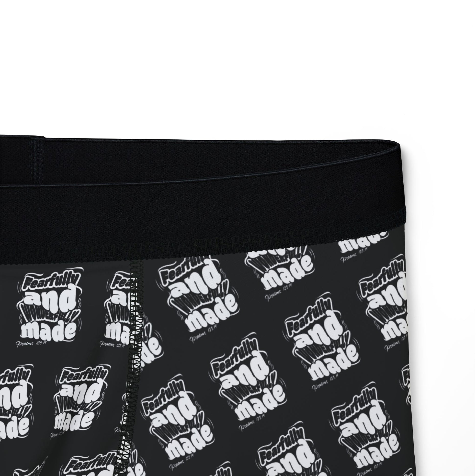 Step into bold faith and unapologetic style with our “Fearfully Made” men's boxer briefs. Featuring a powerful print inspired by Psalm 139:14, these briefs speak life even in the smallest details. Designed for comfort, support, and that confident, covered-in-purpose kind of energy, they’re perfect for the man who knows he’s handcrafted by the Creator Himself.