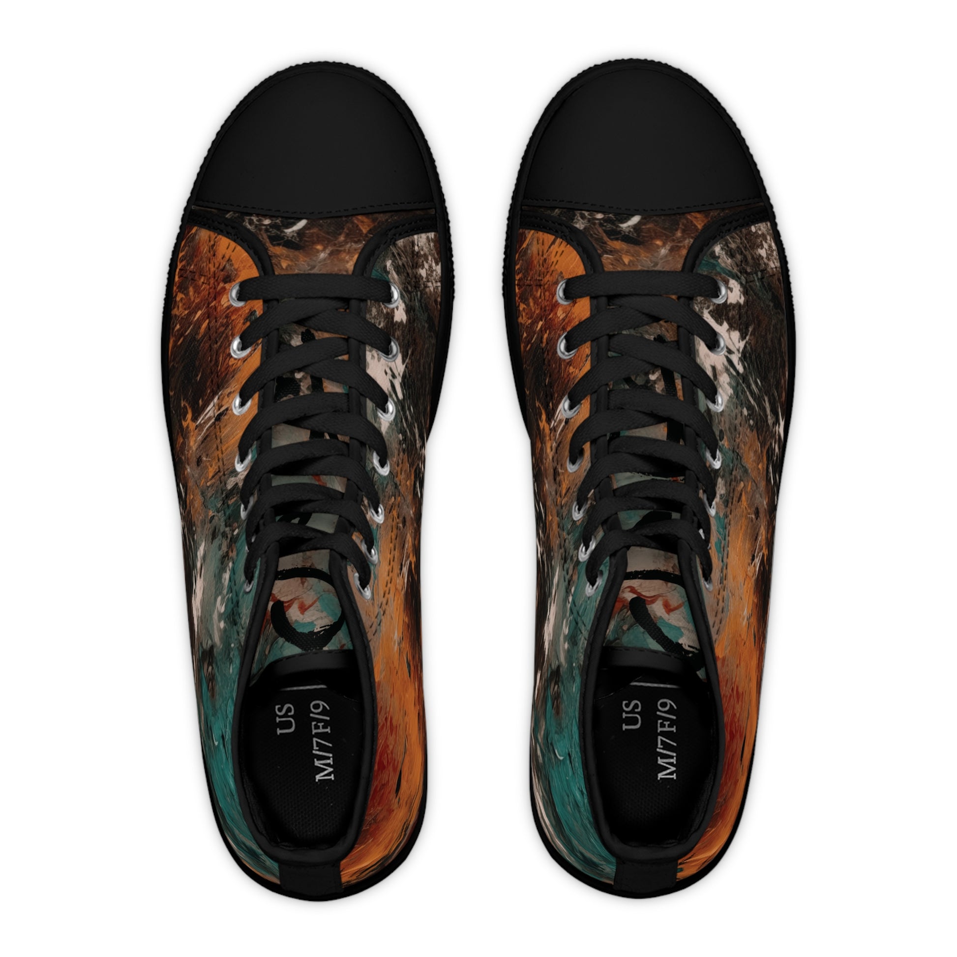 Step boldly in the Fiery Grace High-Top Sneakers—where strength meets artistry. The vivid blend of burnt orange, deep teal, and earthy browns creates a statement-making look, while the high-top design offers comfort and style for any occasion. Perfect for those who walk with confidence and a spark of passion.