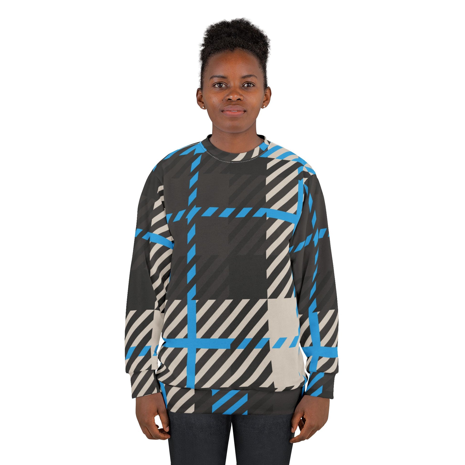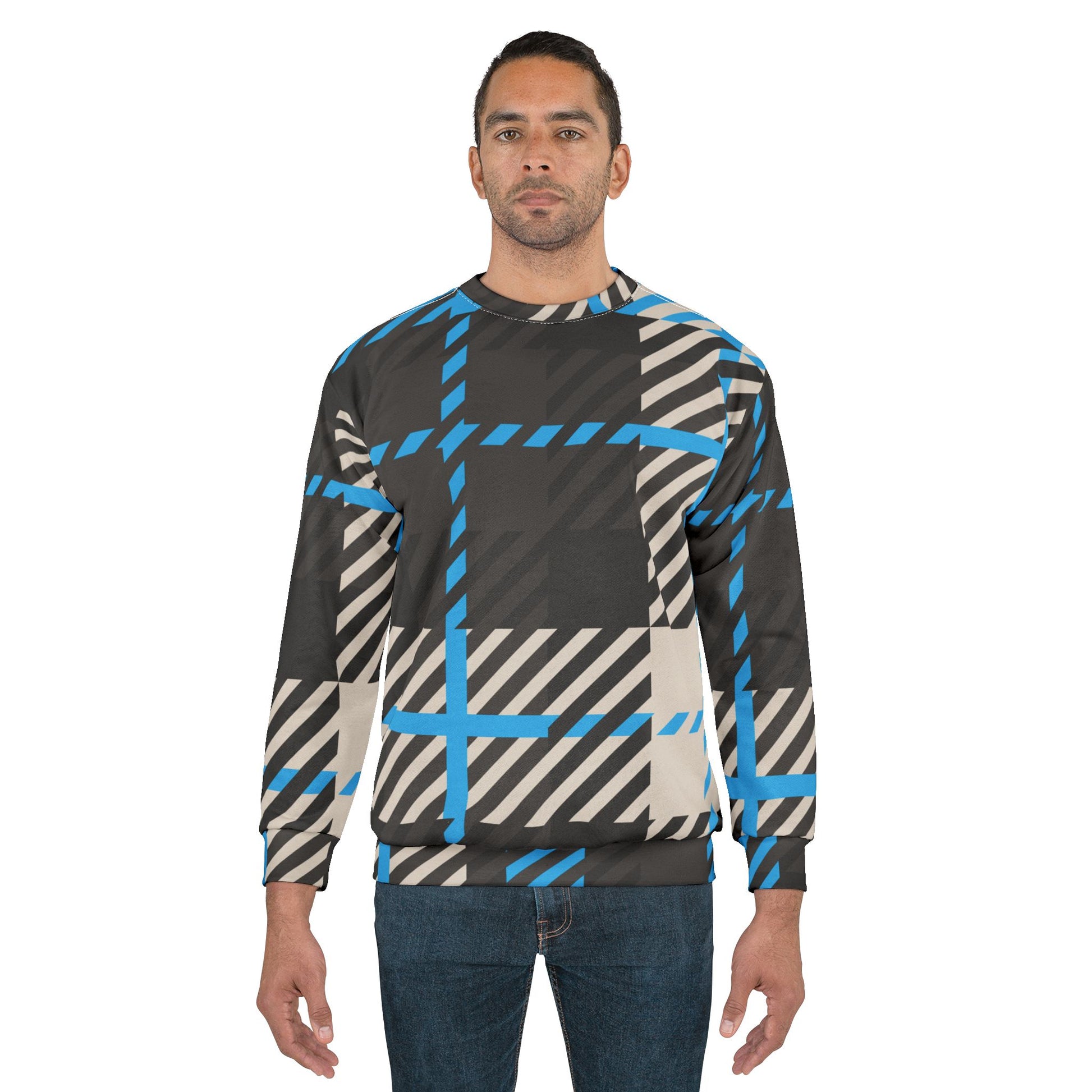 Let your layers preach. The Frozen Echo crewneck sweatshirt delivers bold contrast and divine rhythm—wrapped in a striking broken plaid of charcoal black, soft stone beige, and that unmistakable Gamma Blue. It's unisex, unapologetic, and undeniably intentional.