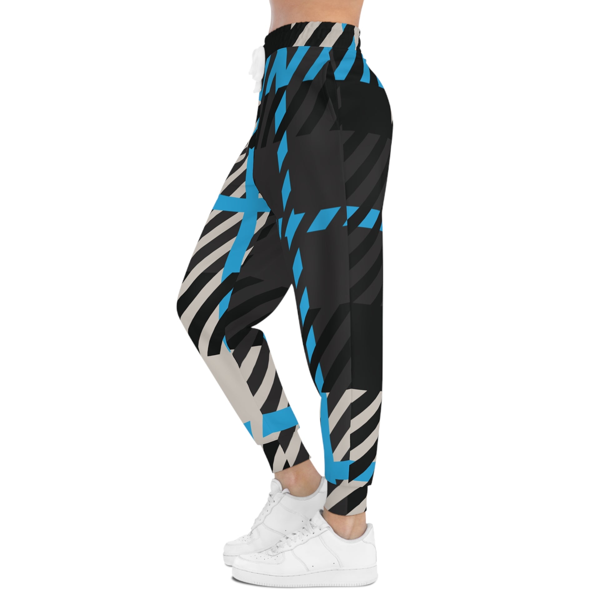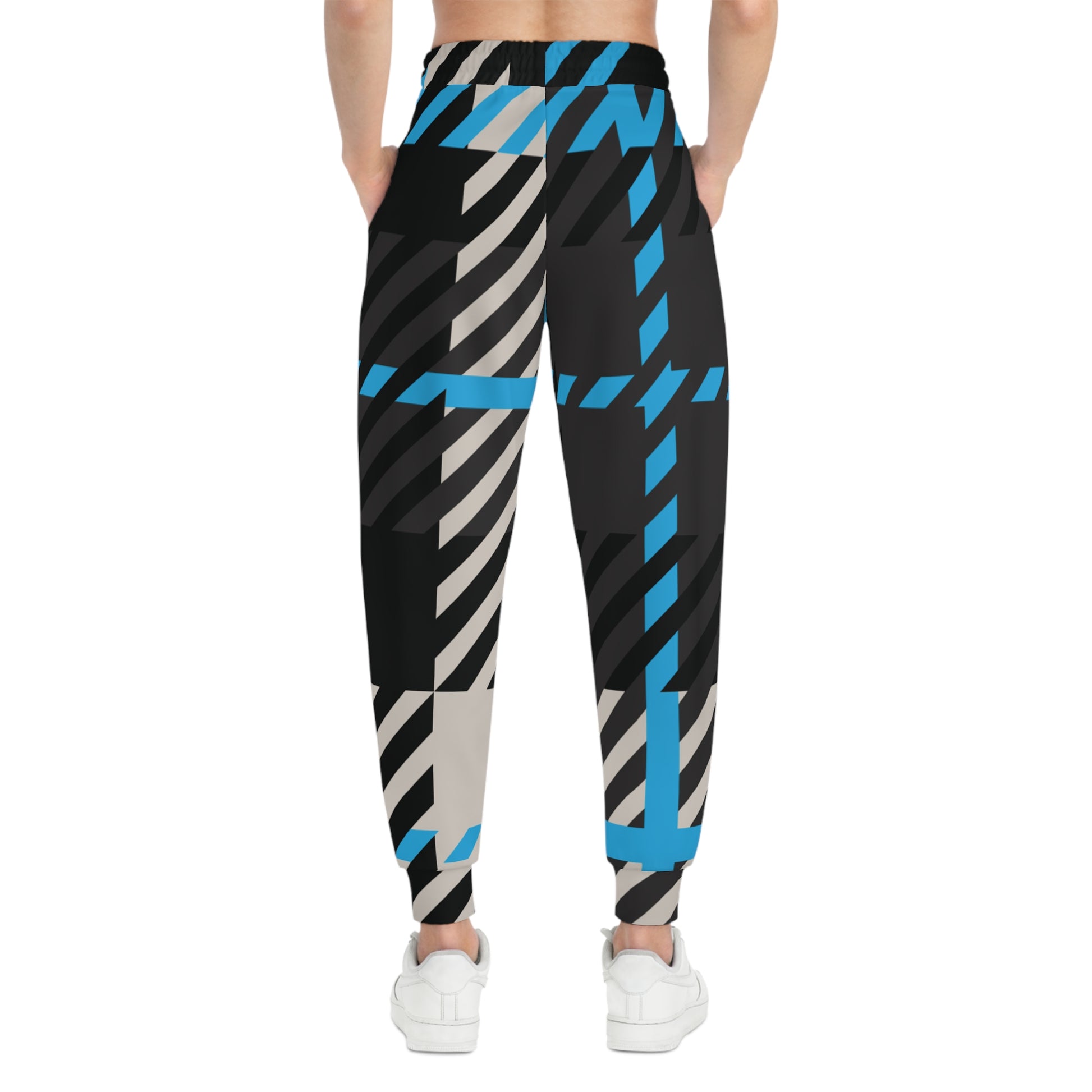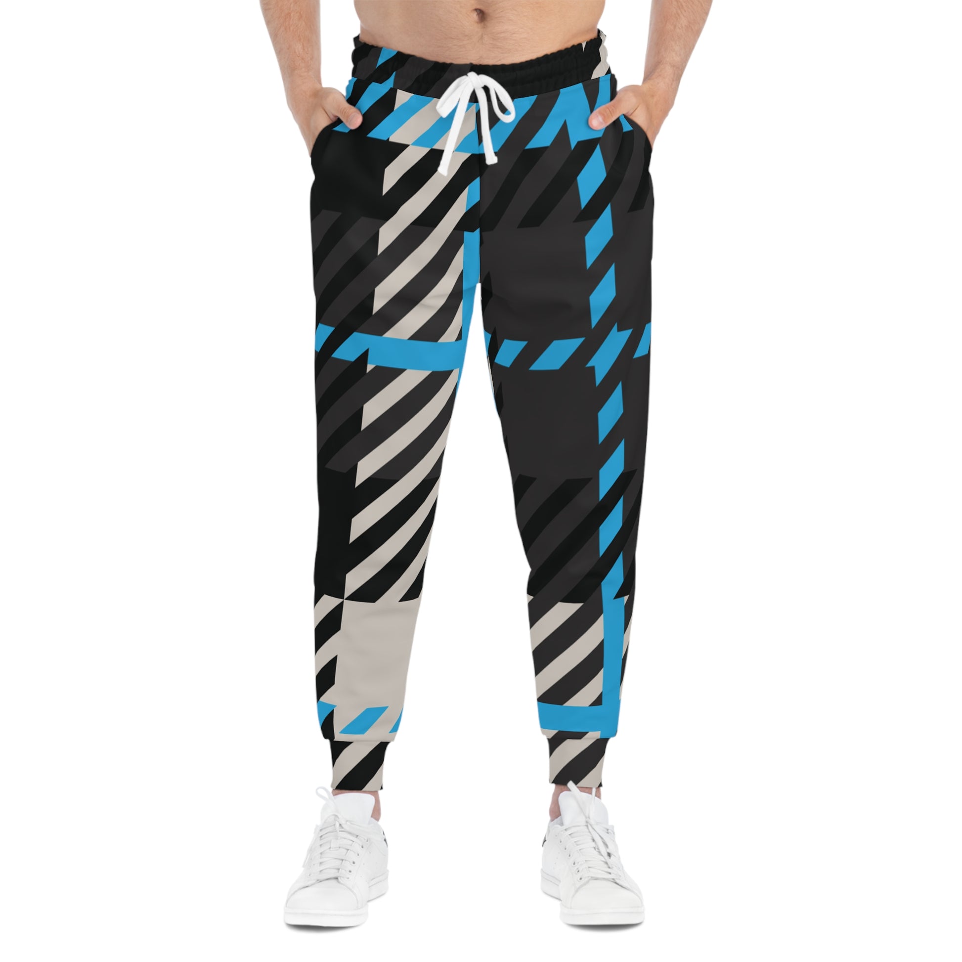 Bold like your purpose. Soft like your prayers. These Frozen Echo joggers walk the line between edge and ease—stitched with a geometric remix of winter’s whisper. Gamma blue slices through charcoal black and stone beige in a divine rhythm of motion, echoing resilience in every step.