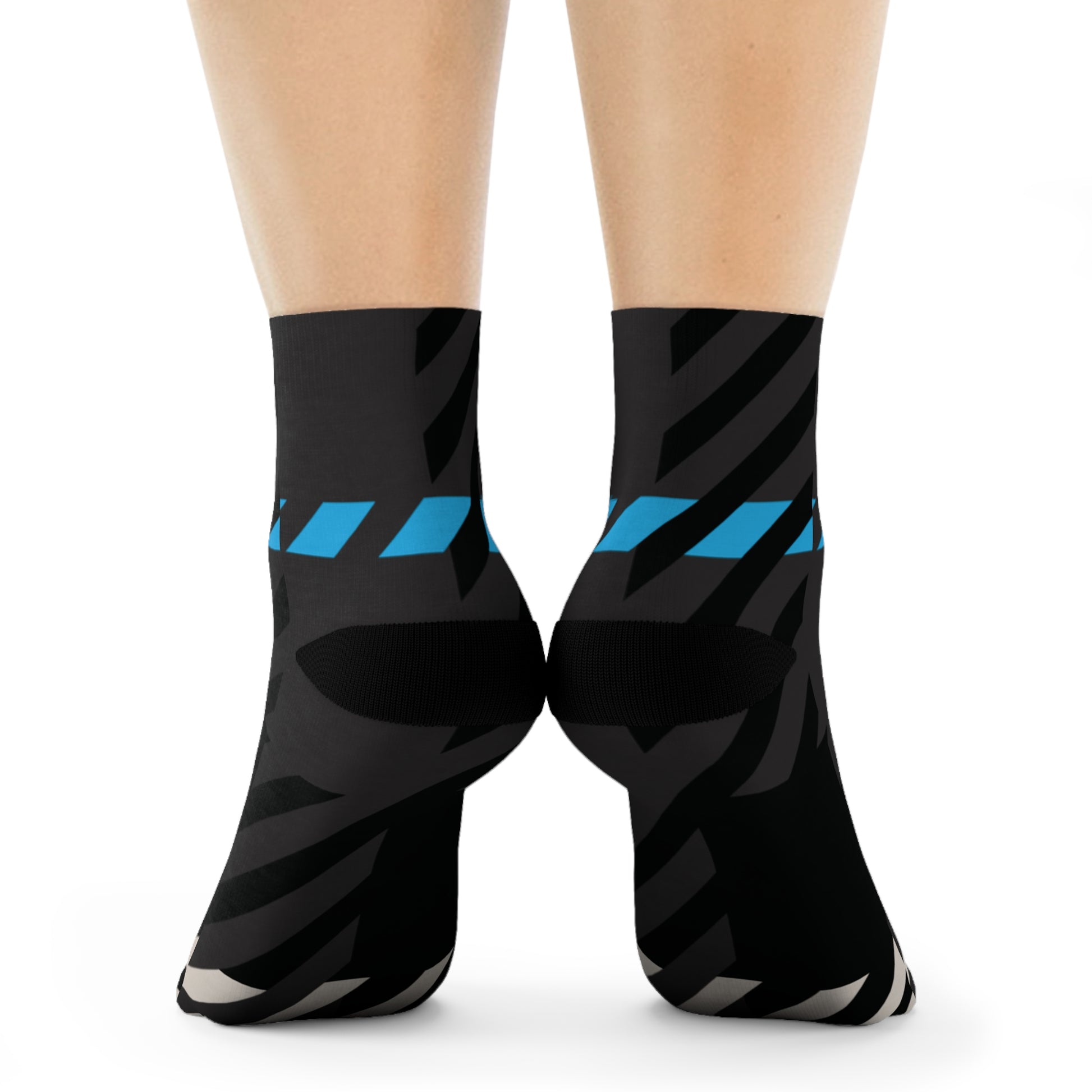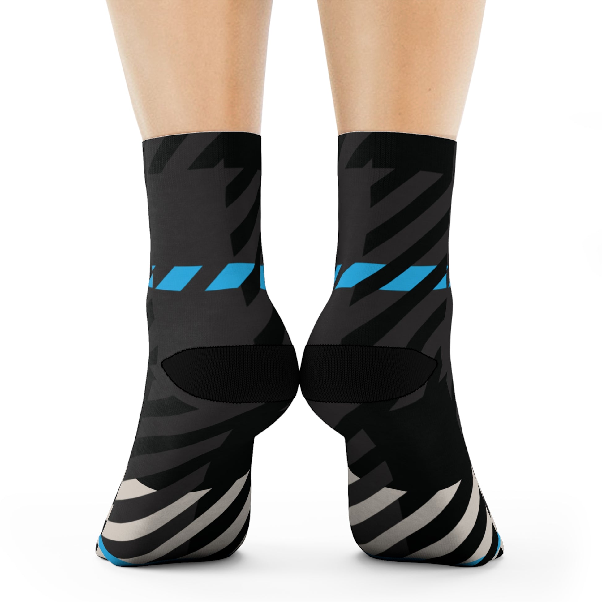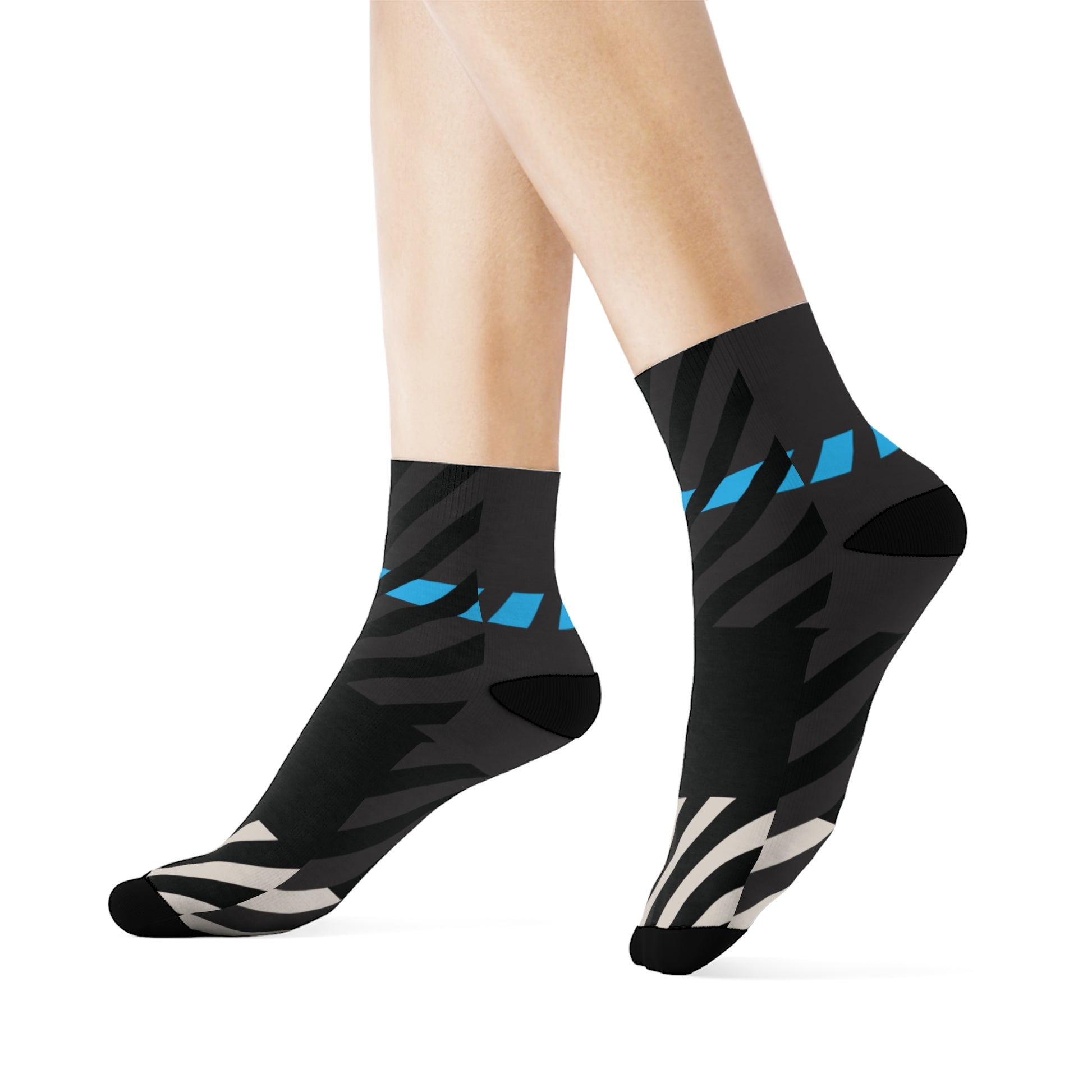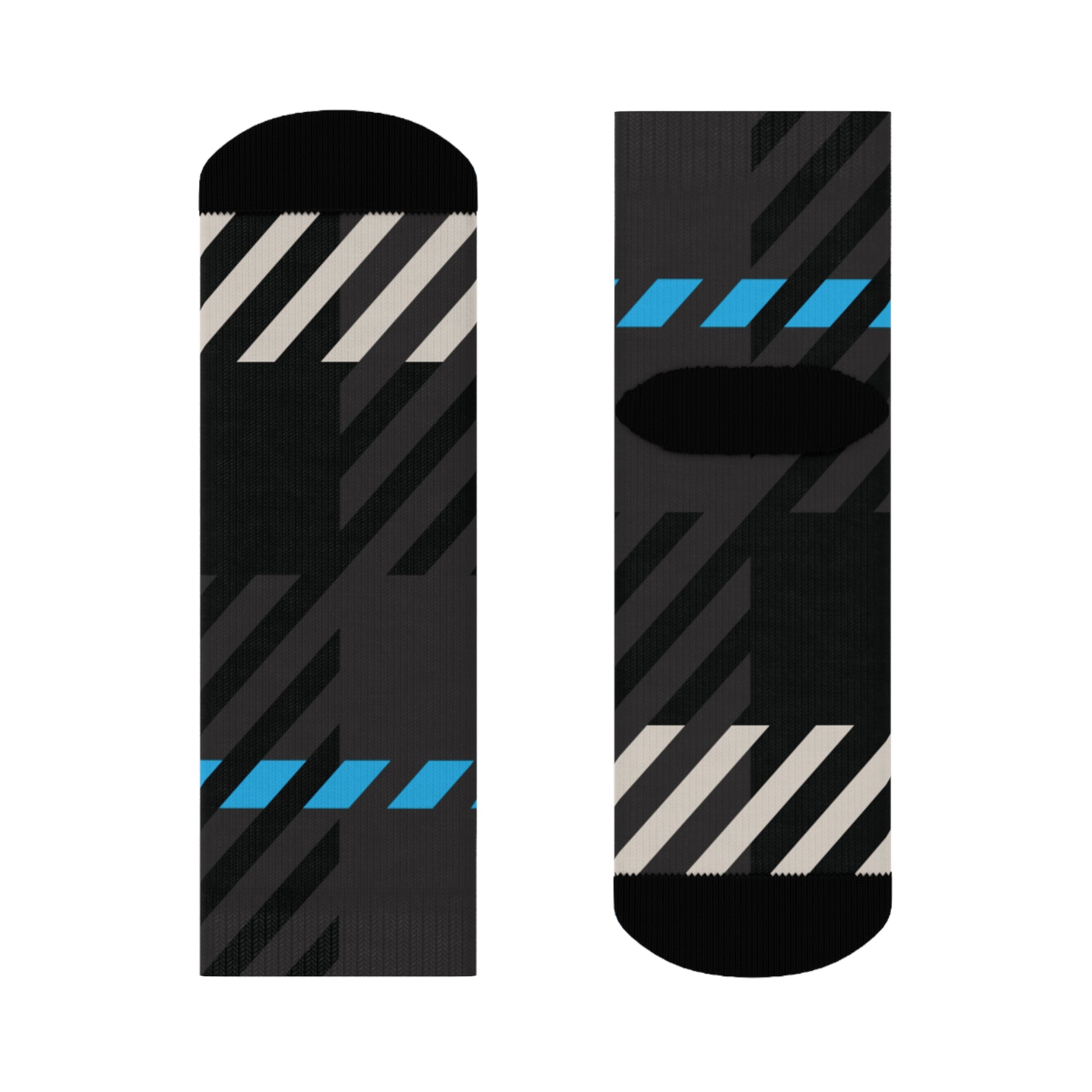 The abstract tartan design weaves together Gamma Blue, stone beige, and charcoal black in a rhythm of alignment and quiet strength—perfect for pairing with leggings, joggers, or layered winter fits from the full Frozen Echo collection. Whether peeking out from under boots or carrying the look solo, these socks were designed to remind you that every step is ordered.