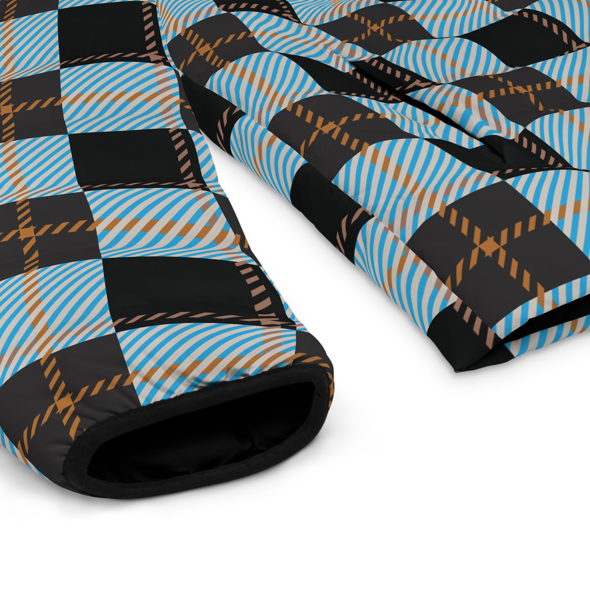 Step boldly into the cold with the Frozen Ember Men’s Puffer Jacket, where faith meets fire in every stitch. Cloaked in a striking plaid of gamma blue, charcoal black, and burnished copper, this jacket embodies resilience and radiance. Designed to shield against the chill while reflecting a spirit unshaken, it’s more than outerwear—it’s messagewear, declaring strength and purpose in every season.