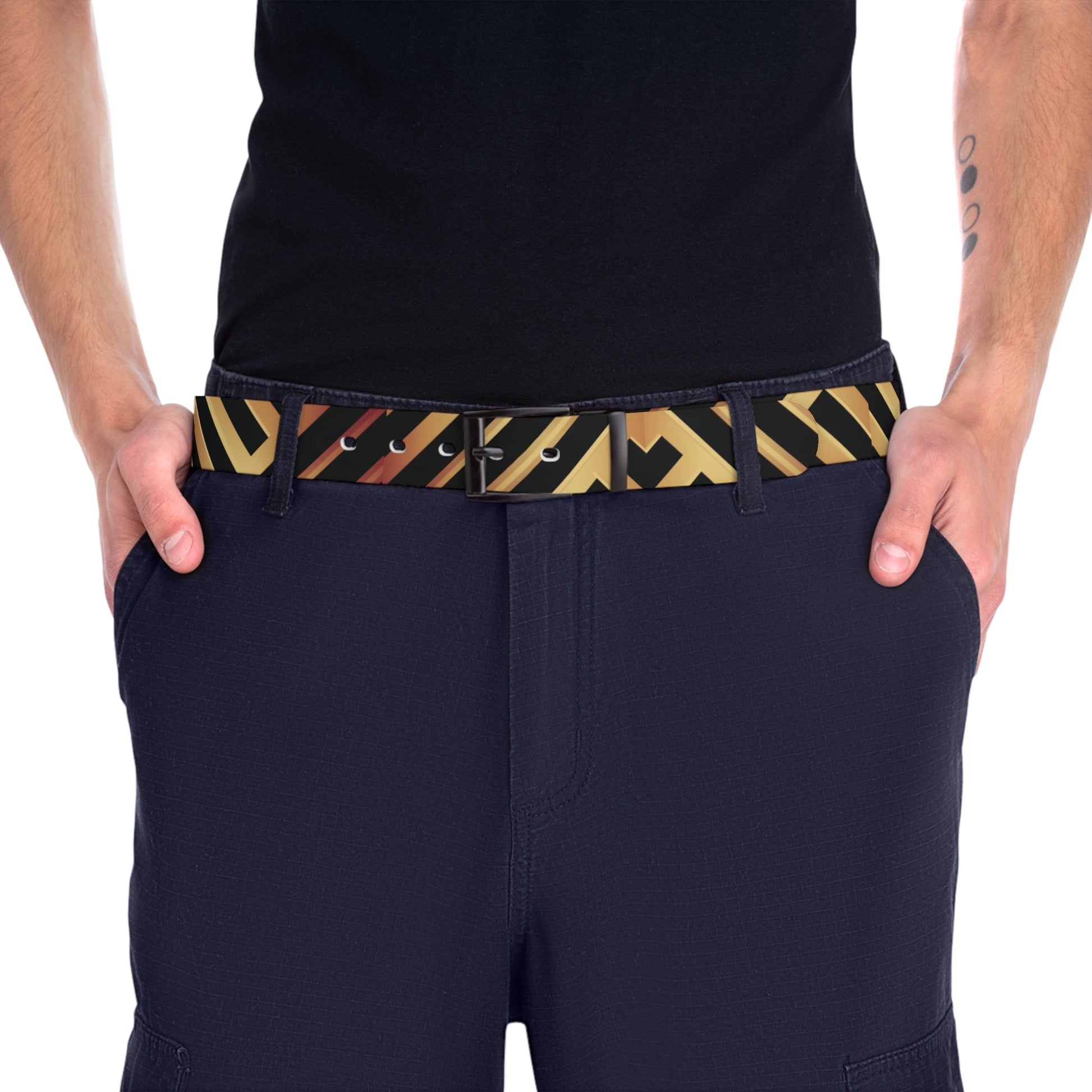 Secure your style with strength and grace. The Grace in Motion Belt carries the same bold black-and-gold geometry as its matching purse and sneakers, wrapping your waist with purpose and poise. Each line echoes divine order, a reminder that even in the smallest details, the Lord directs your steps.