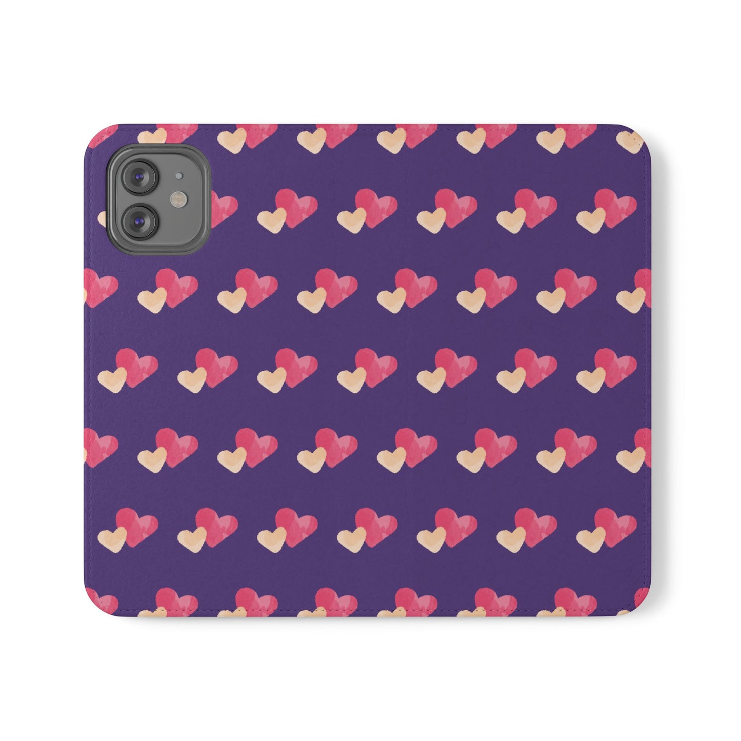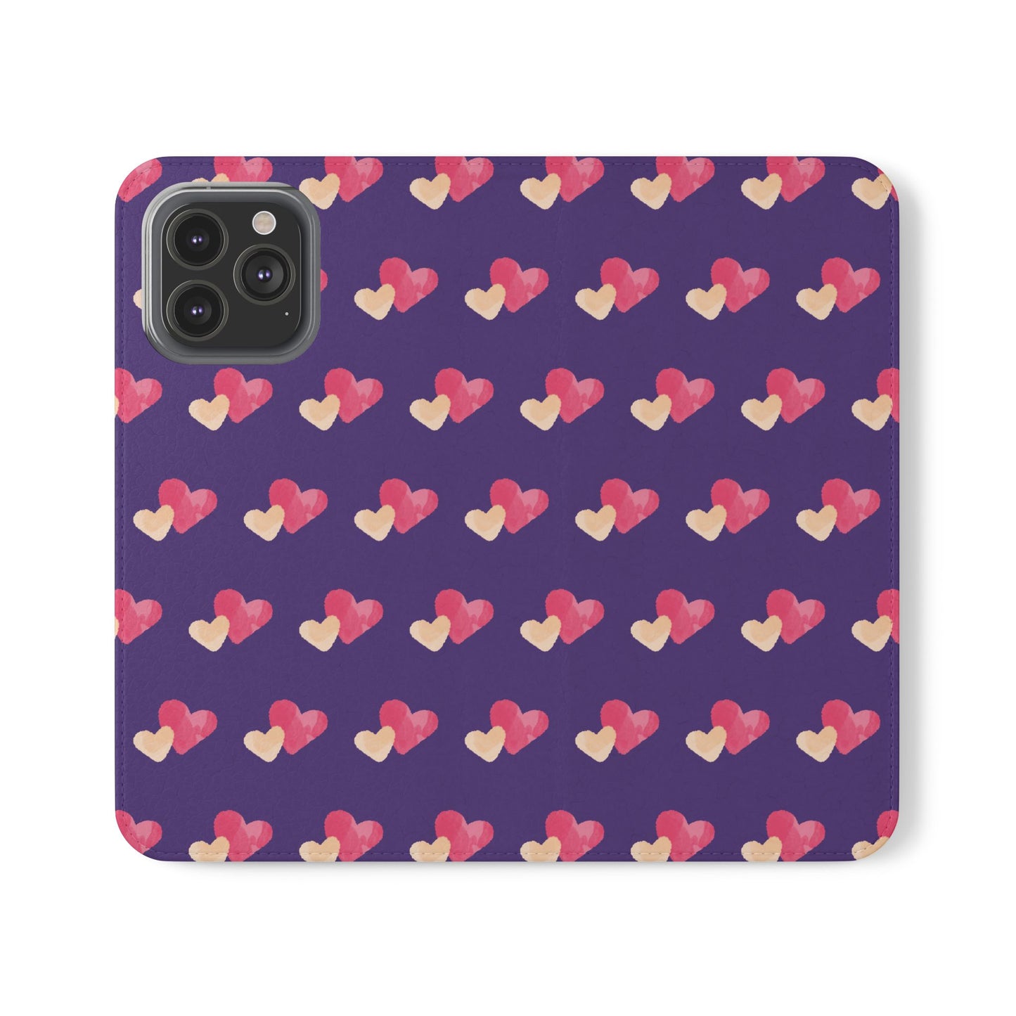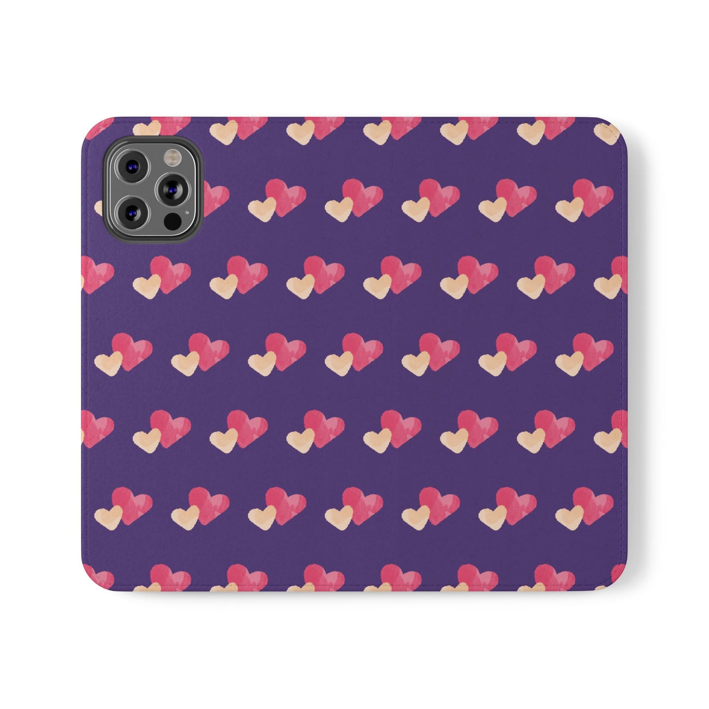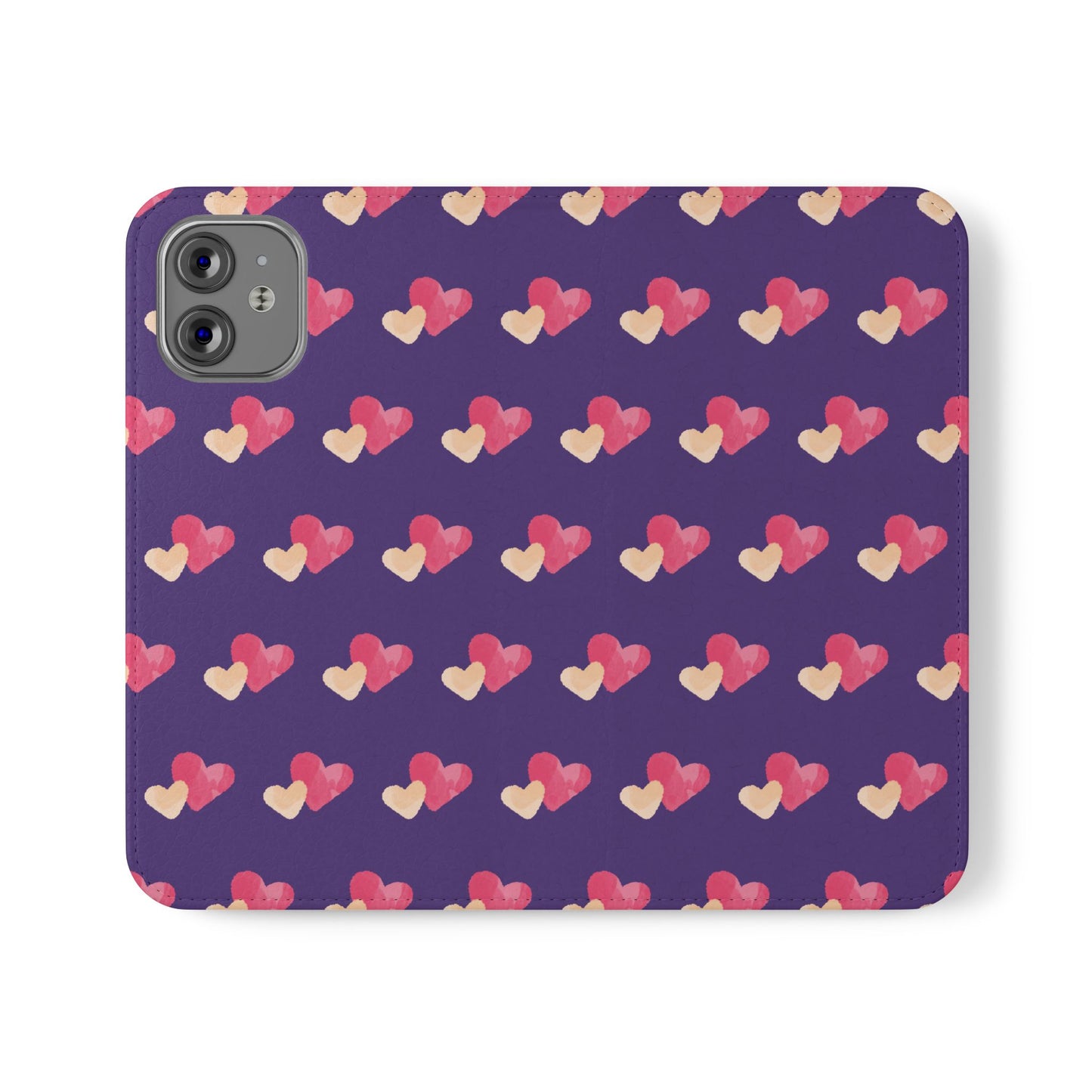 Let every call, scroll, and text be wrapped in love. This charming phone flip case features a pattern of double hearts in red and blush tones against a rich purple background—offering protection with a pop of joyful devotion. Made for everyday use, it’s both functional and faith-inspired, reminding you that you're covered in love wherever you go.