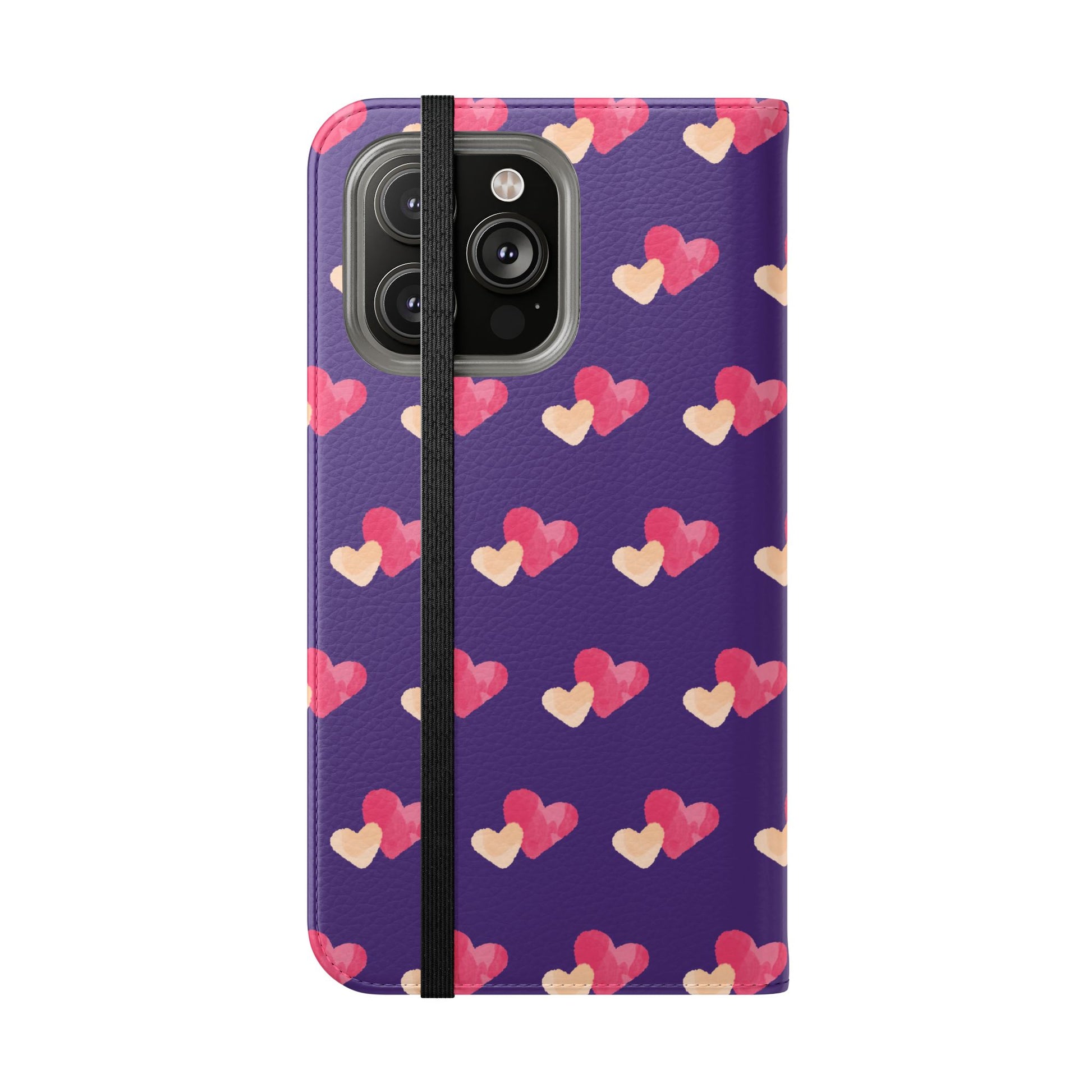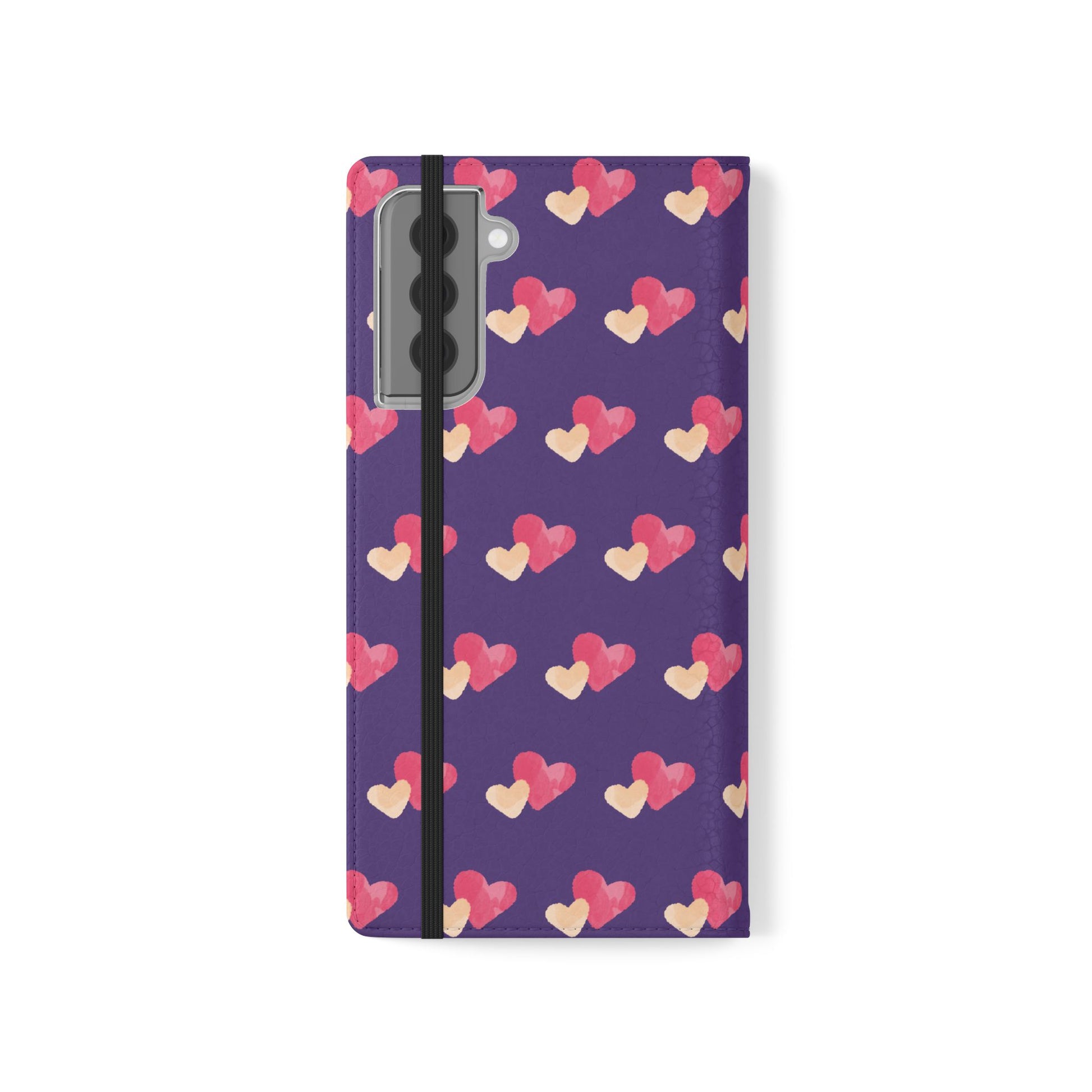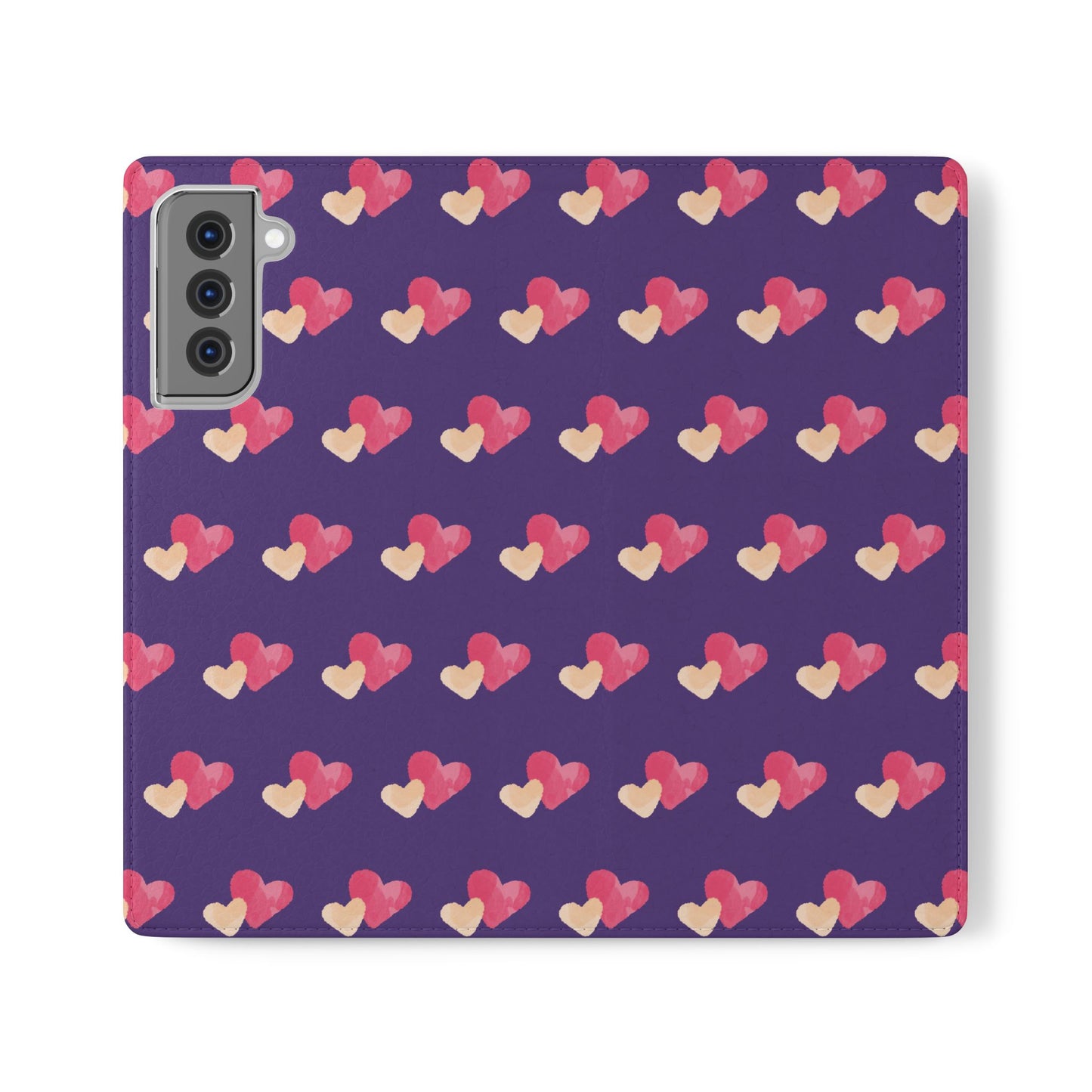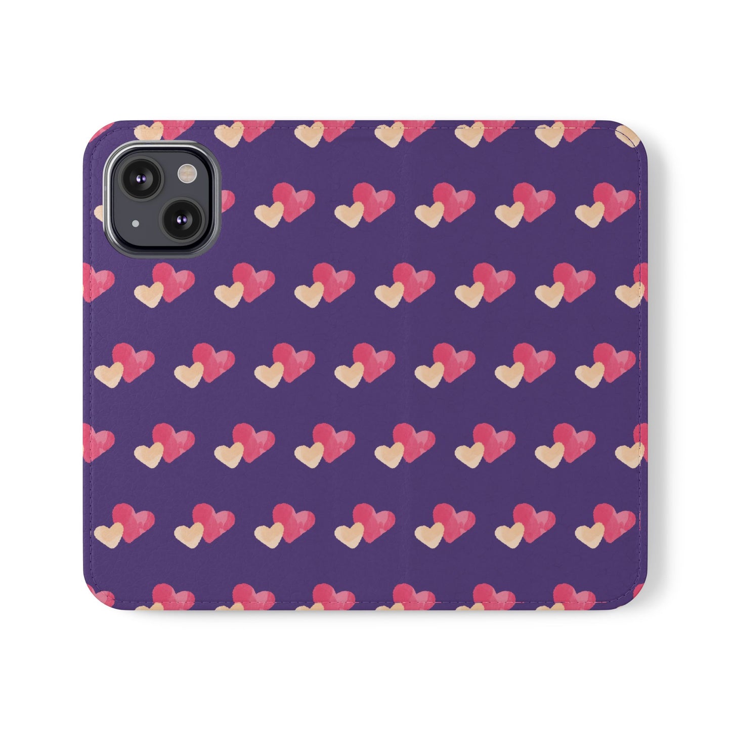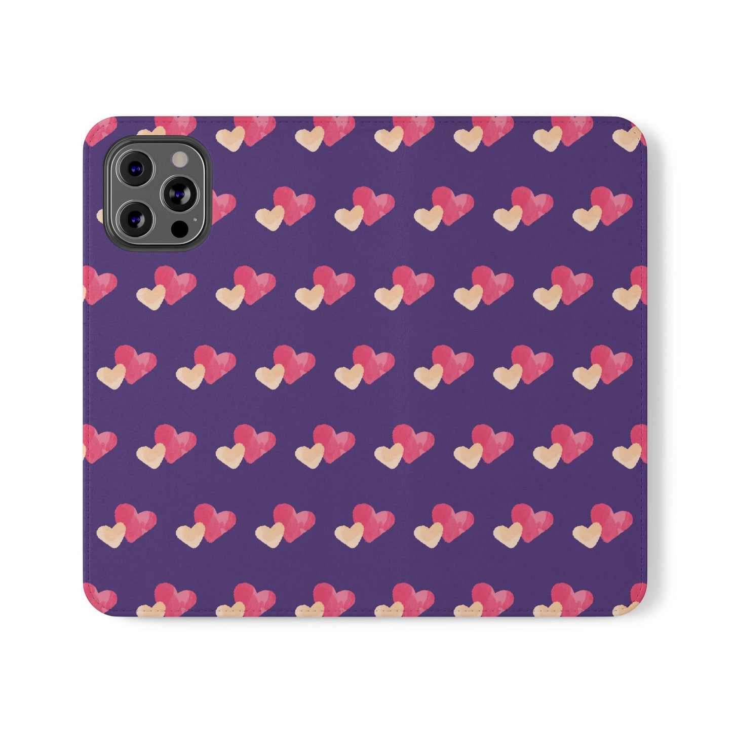 Let every call, scroll, and text be wrapped in love. This charming phone flip case features a pattern of double hearts in red and blush tones against a rich purple background—offering protection with a pop of joyful devotion. Made for everyday use, it’s both functional and faith-inspired, reminding you that you're covered in love wherever you go.