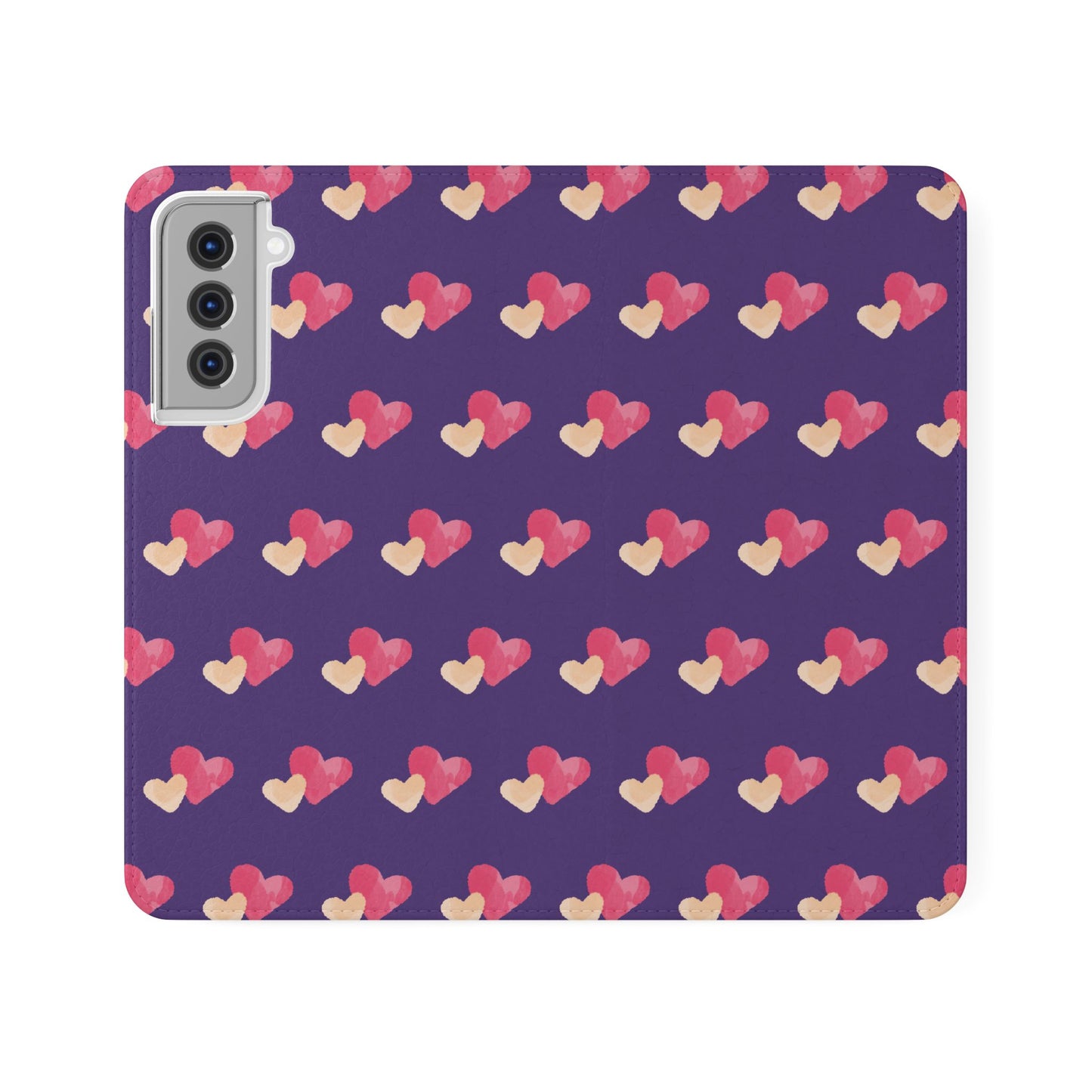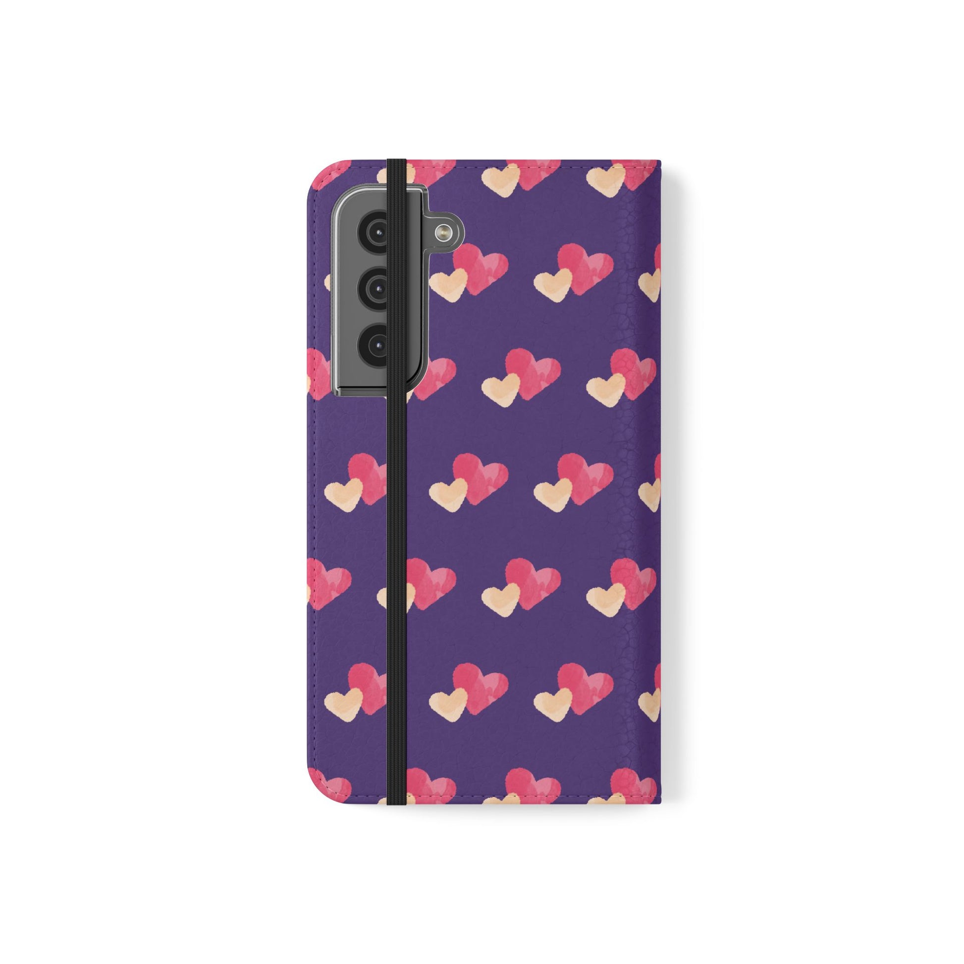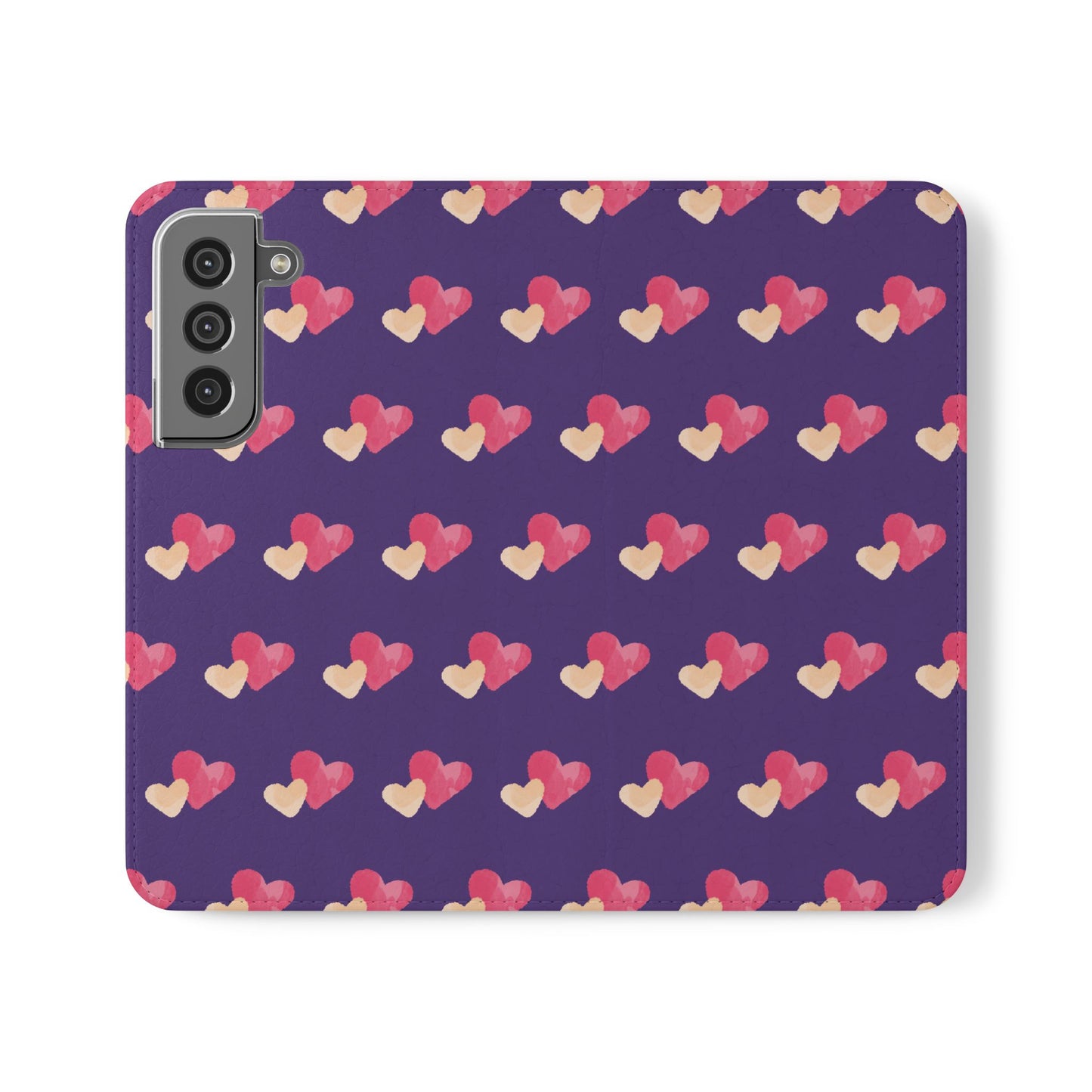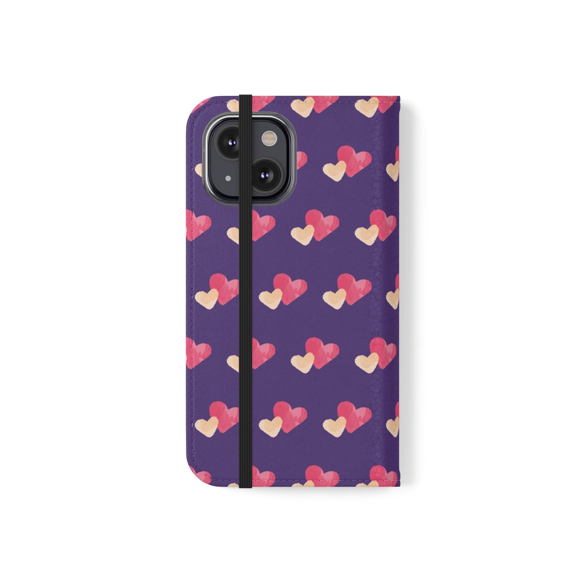 Let every call, scroll, and text be wrapped in love. This charming phone flip case features a pattern of double hearts in red and blush tones against a rich purple background—offering protection with a pop of joyful devotion. Made for everyday use, it’s both functional and faith-inspired, reminding you that you're covered in love wherever you go.
