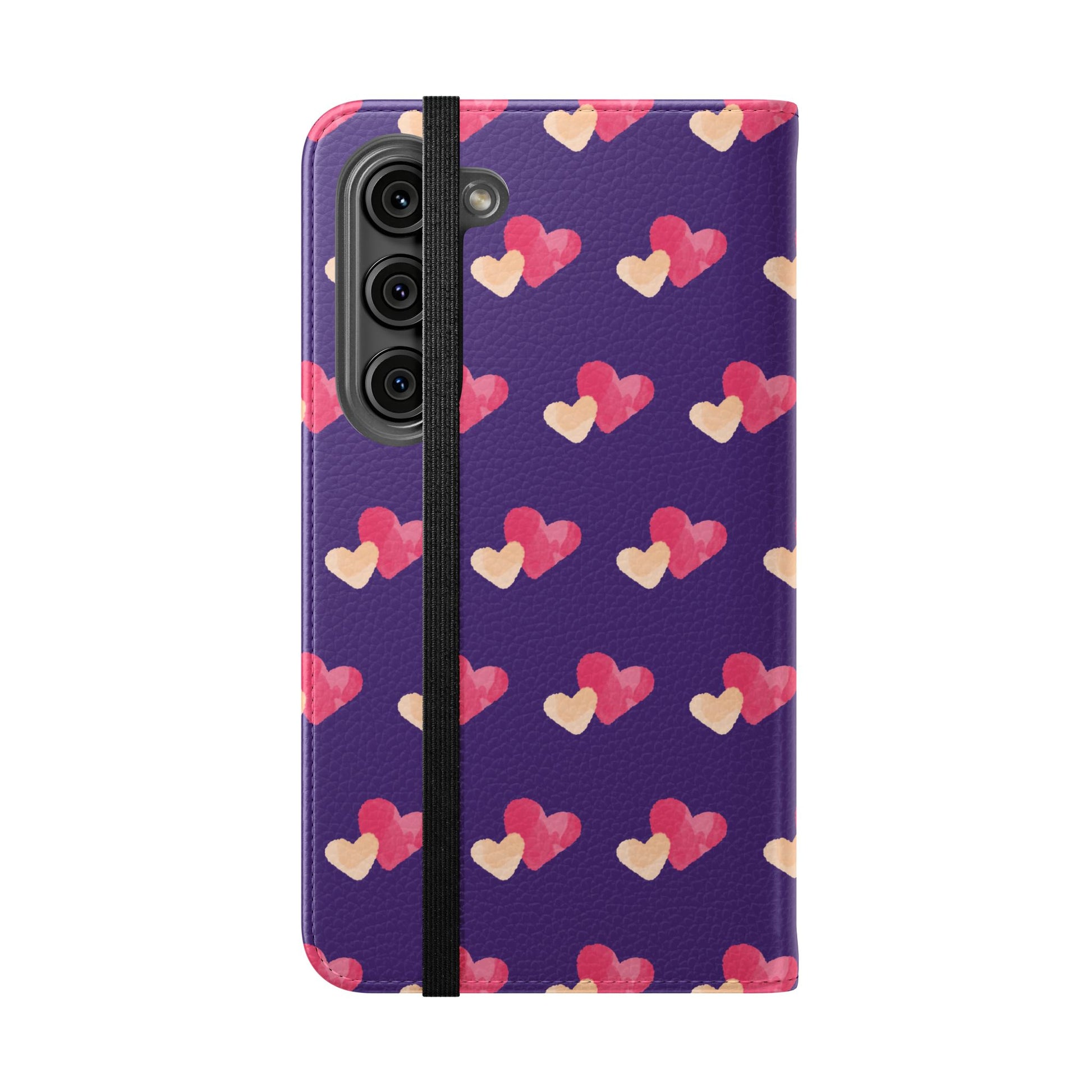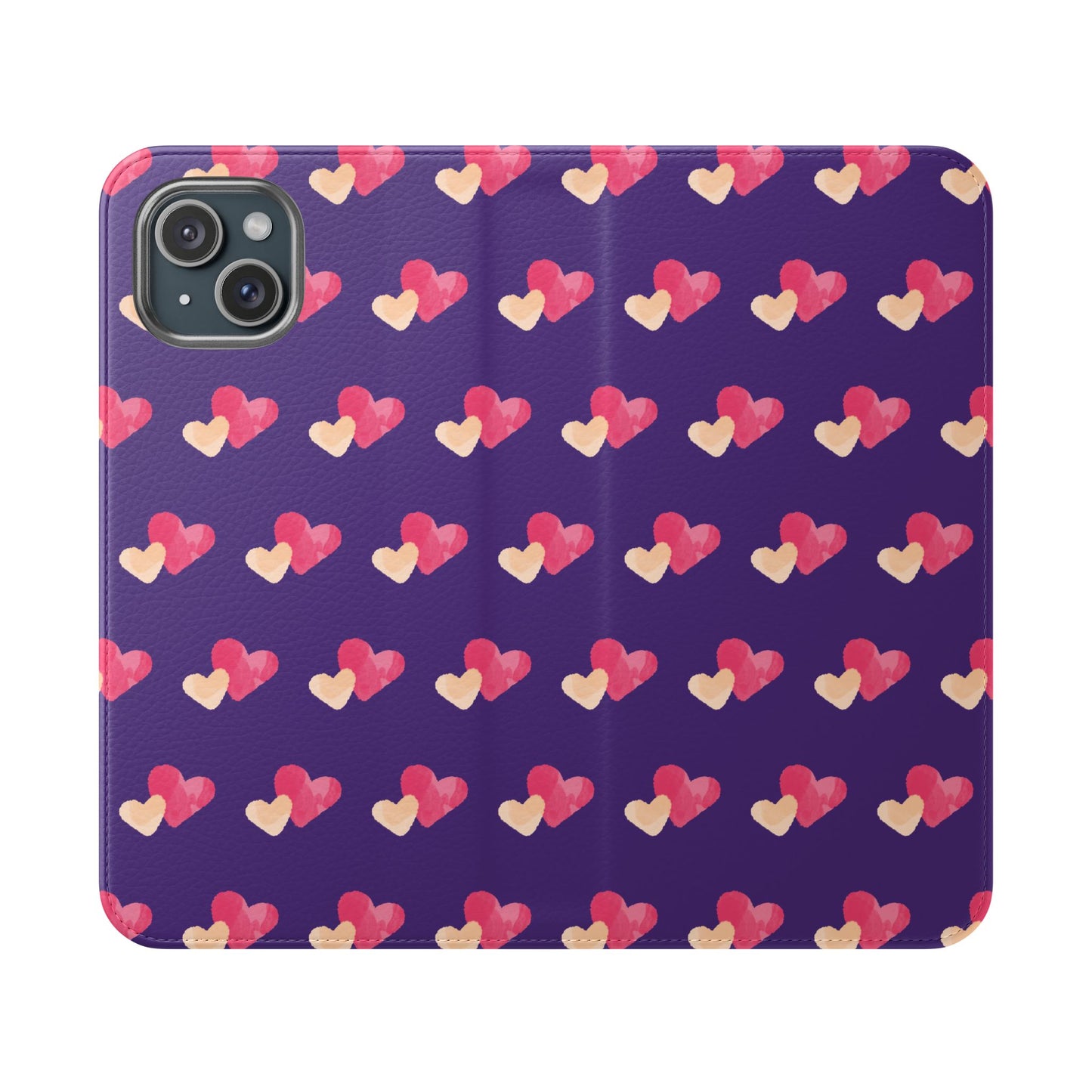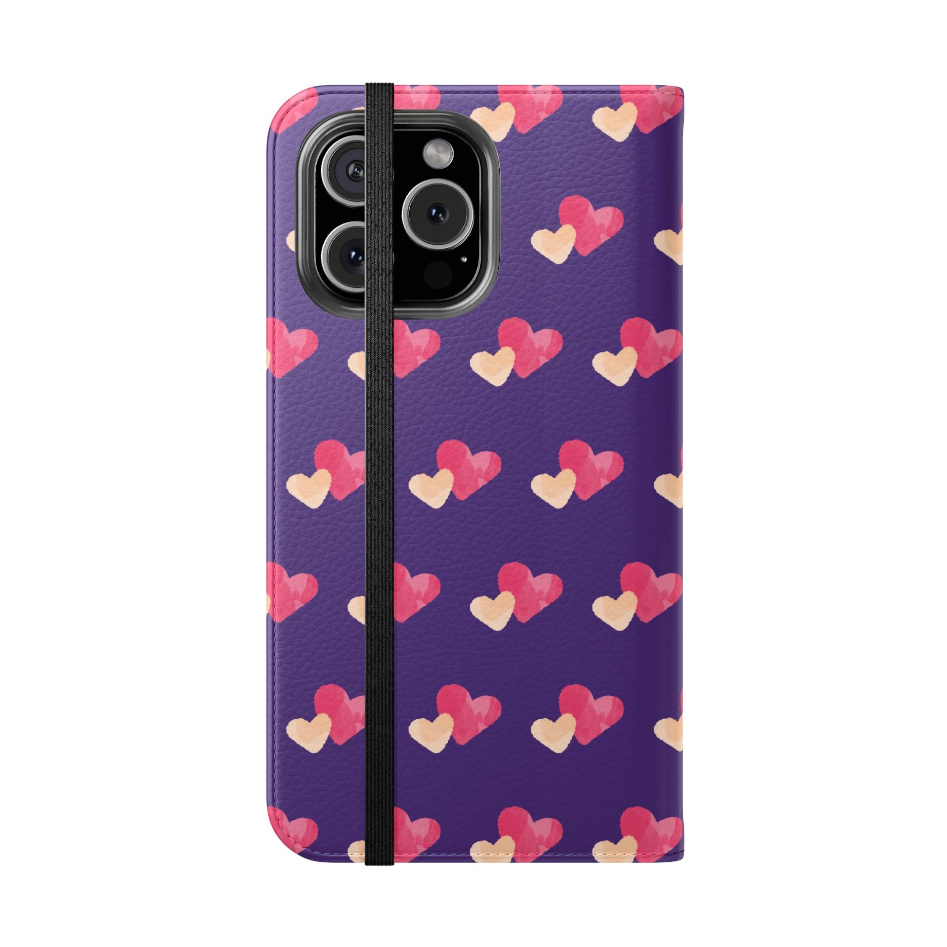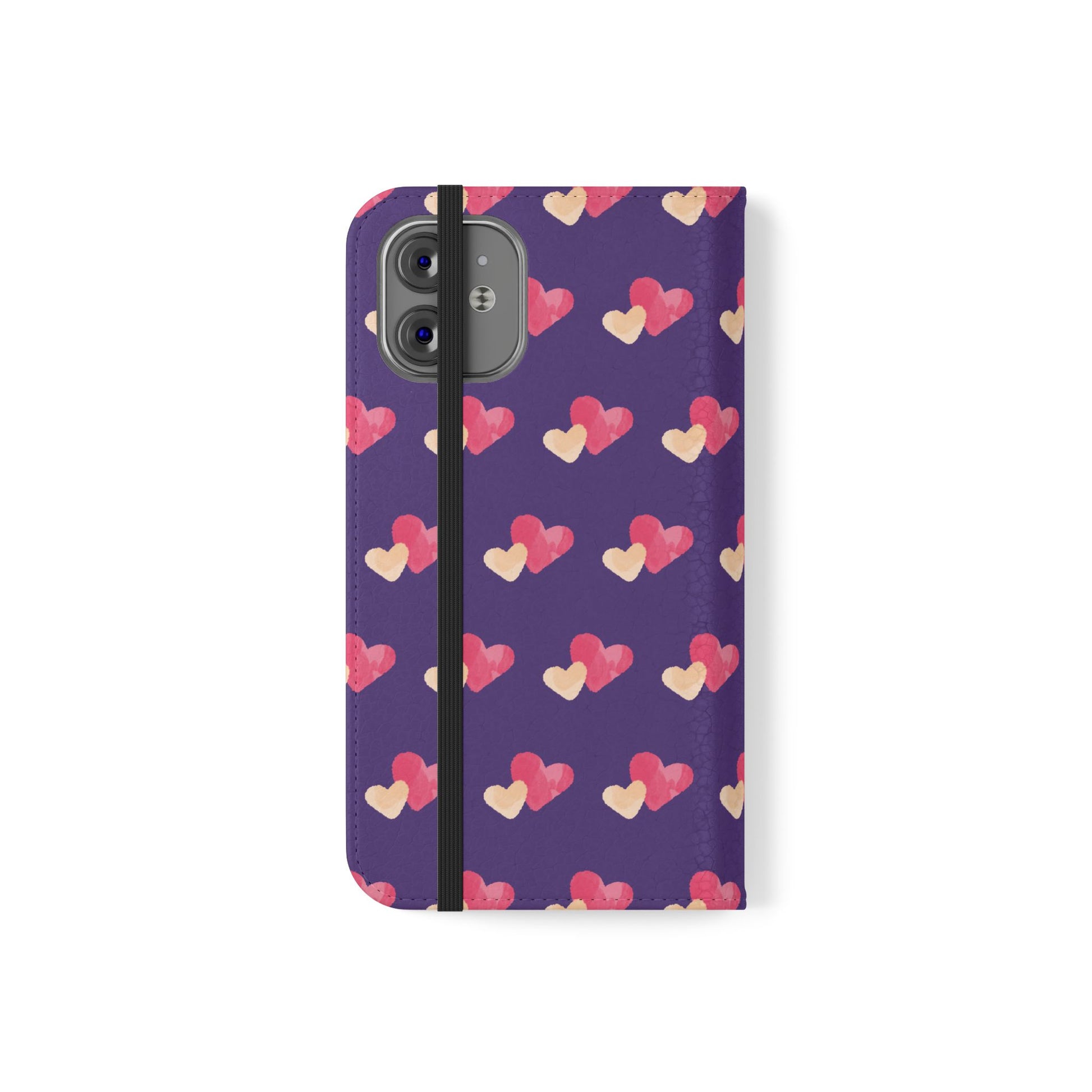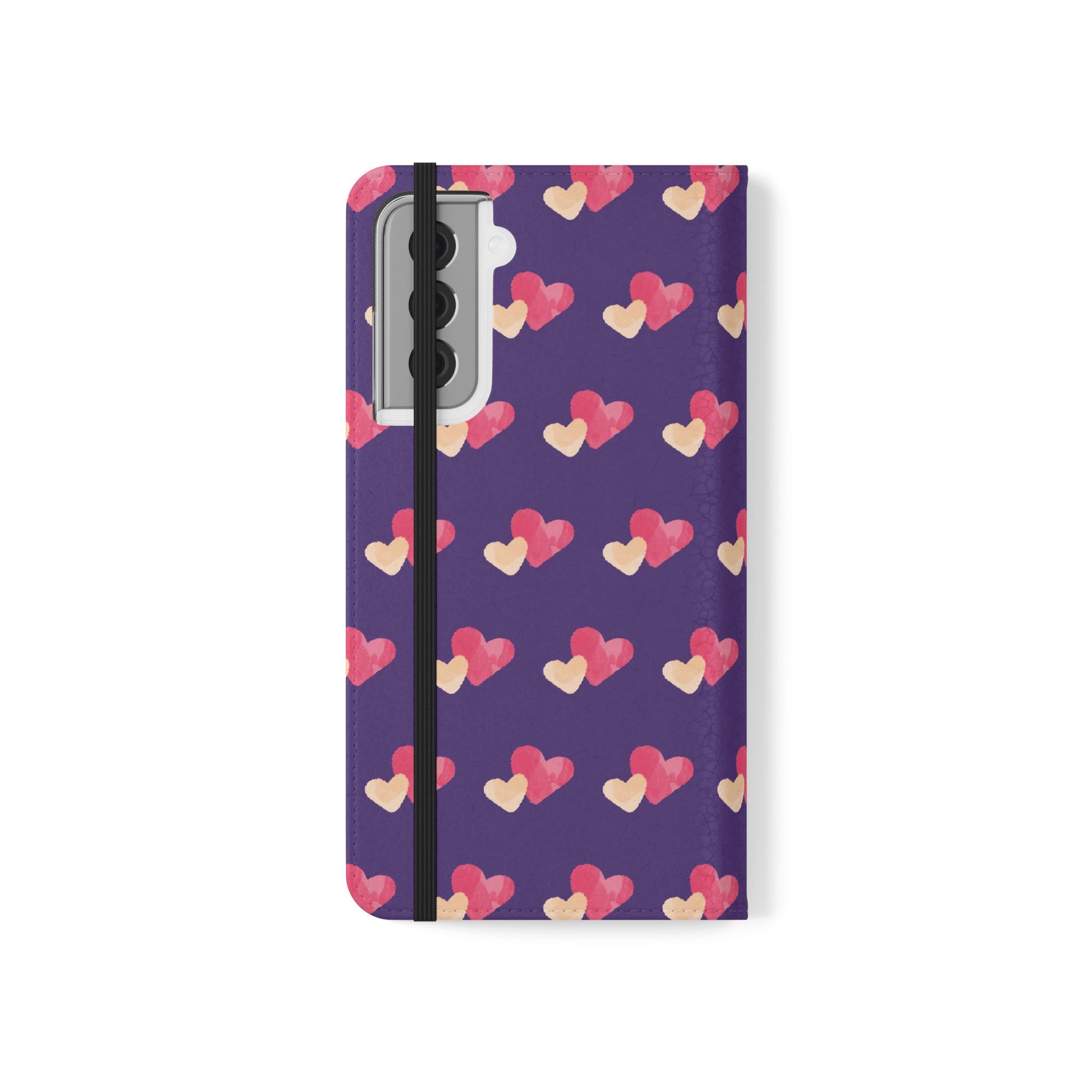 Let every call, scroll, and text be wrapped in love. This charming phone flip case features a pattern of double hearts in red and blush tones against a rich purple background—offering protection with a pop of joyful devotion. Made for everyday use, it’s both functional and faith-inspired, reminding you that you're covered in love wherever you go.