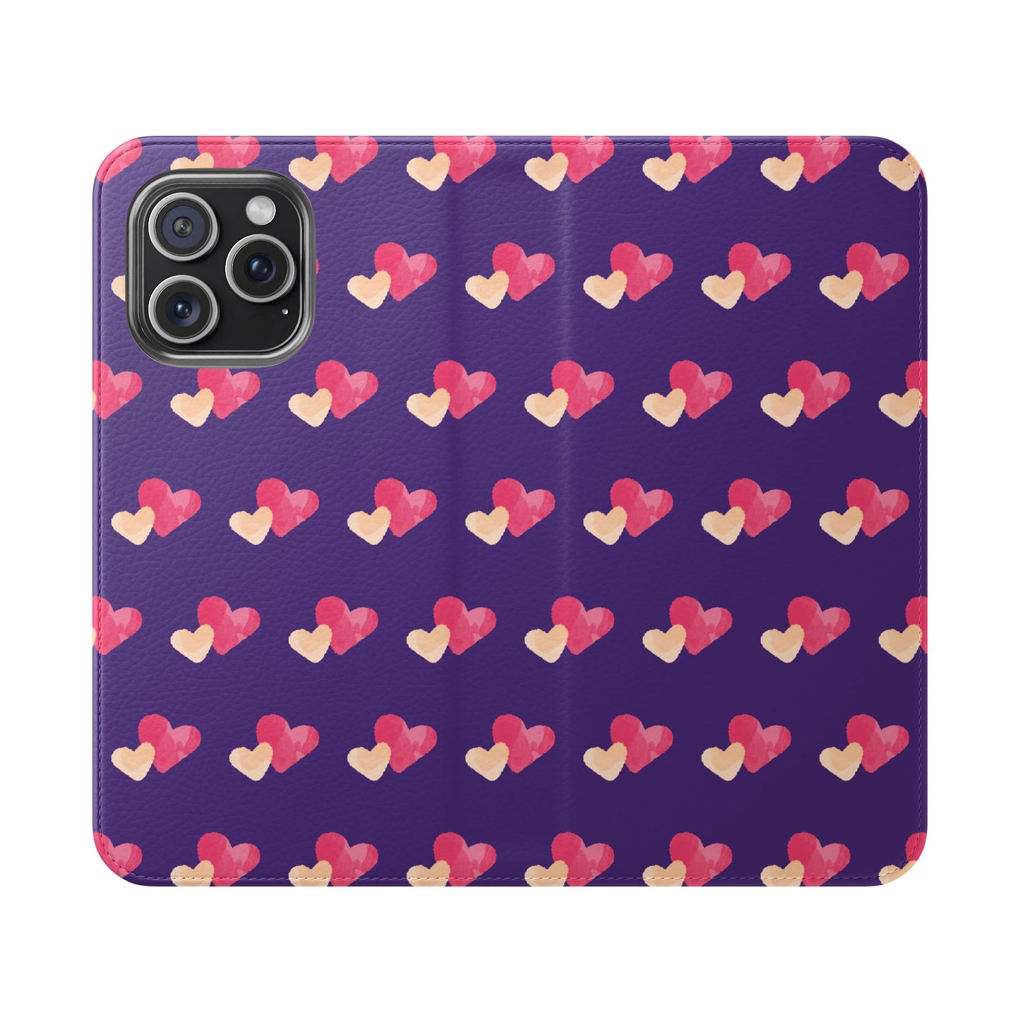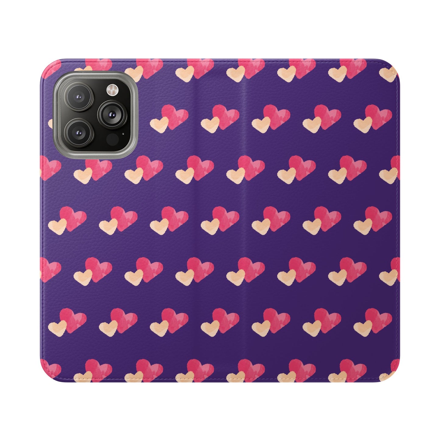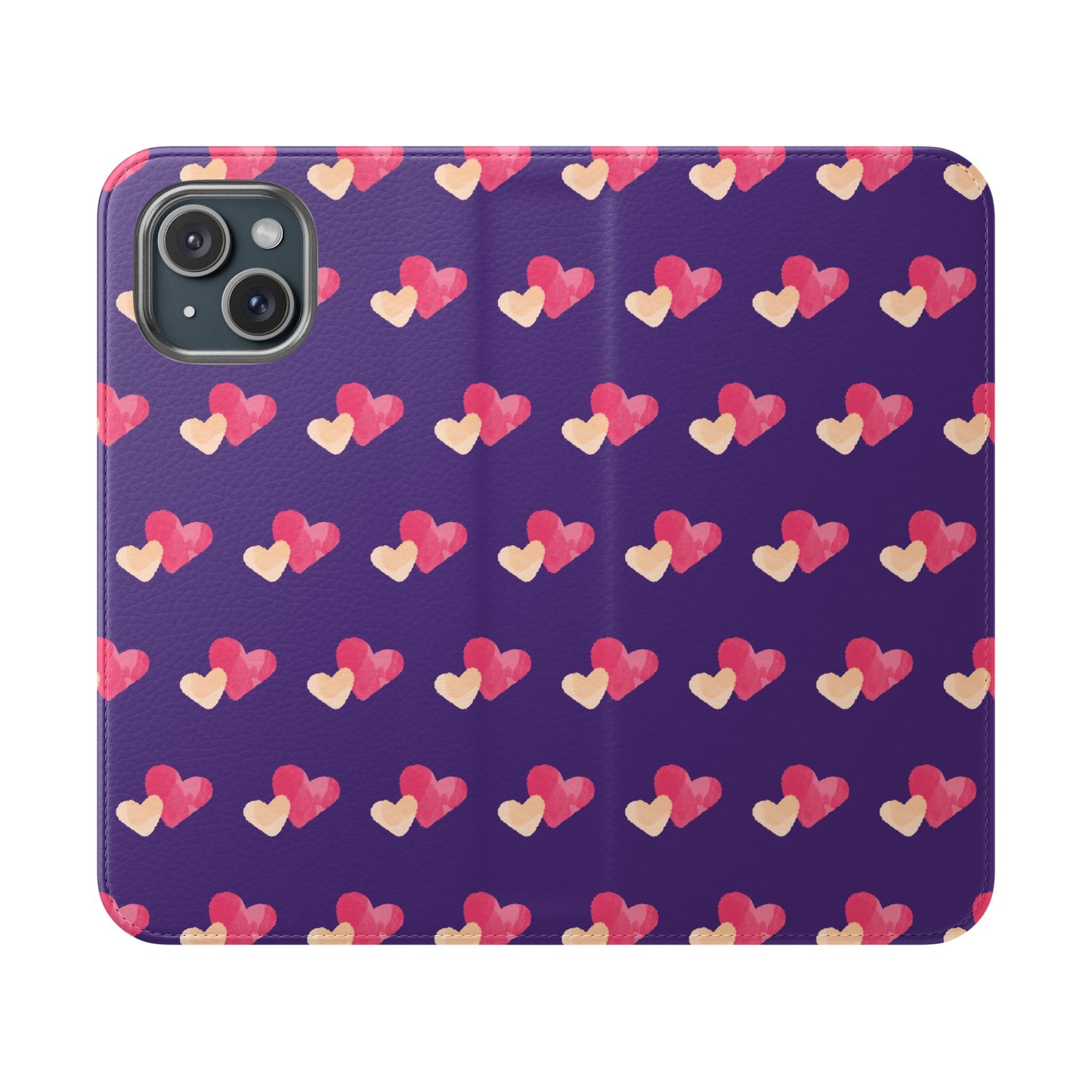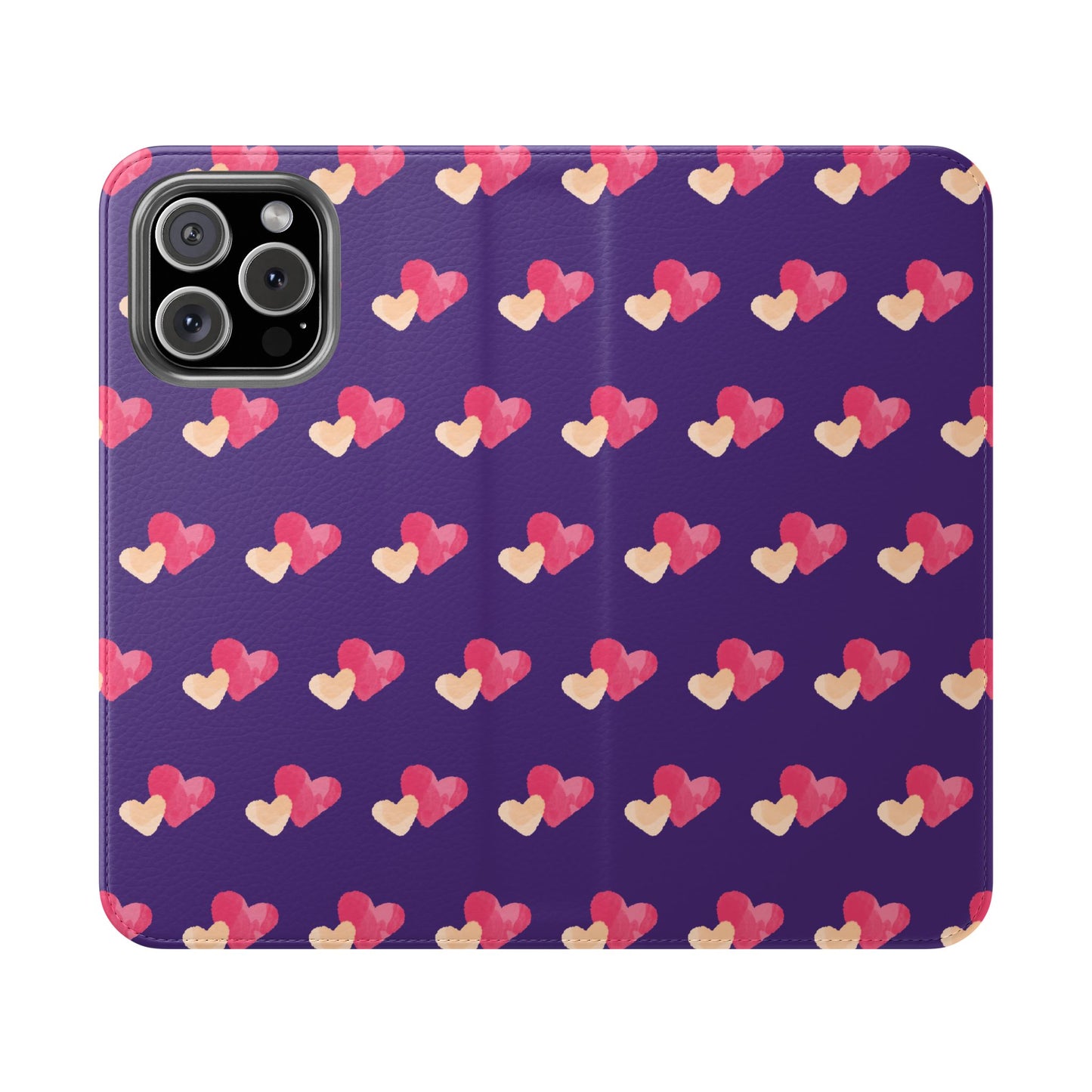 Let every call, scroll, and text be wrapped in love. This charming phone flip case features a pattern of double hearts in red and blush tones against a rich purple background—offering protection with a pop of joyful devotion. Made for everyday use, it’s both functional and faith-inspired, reminding you that you're covered in love wherever you go.