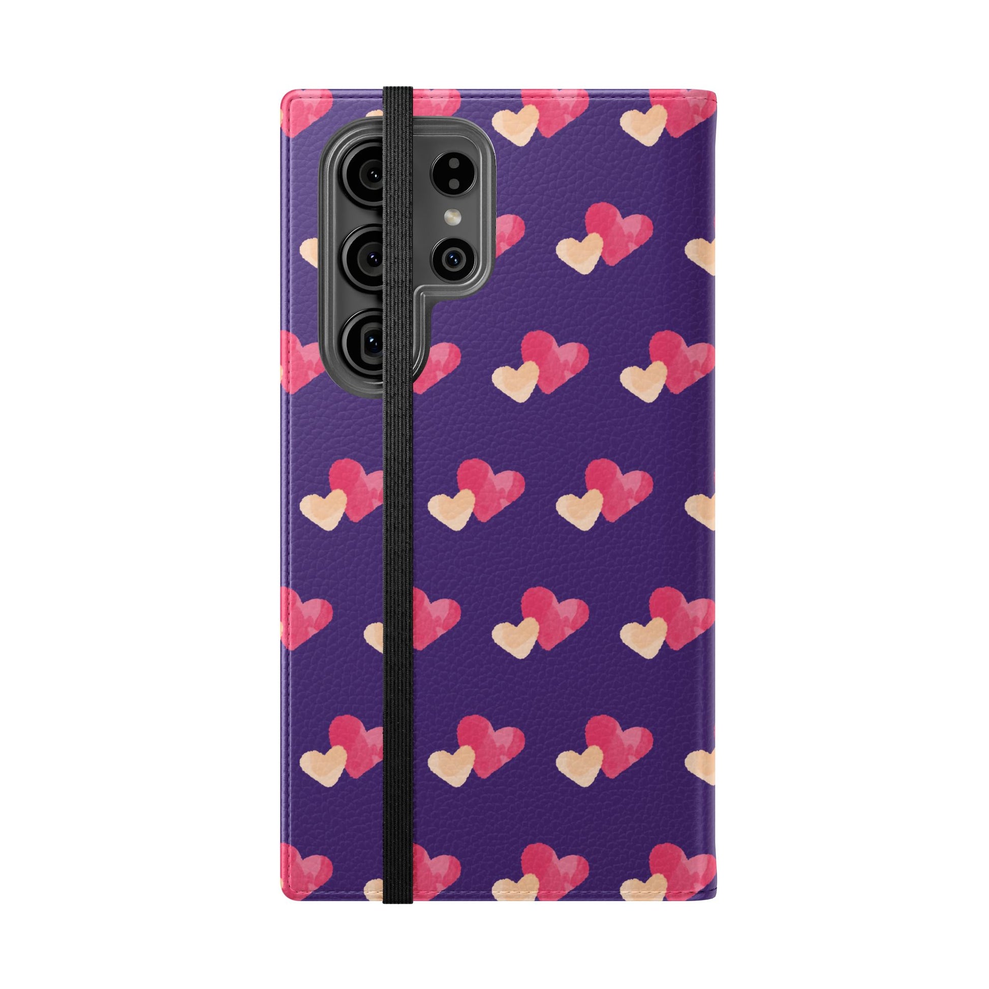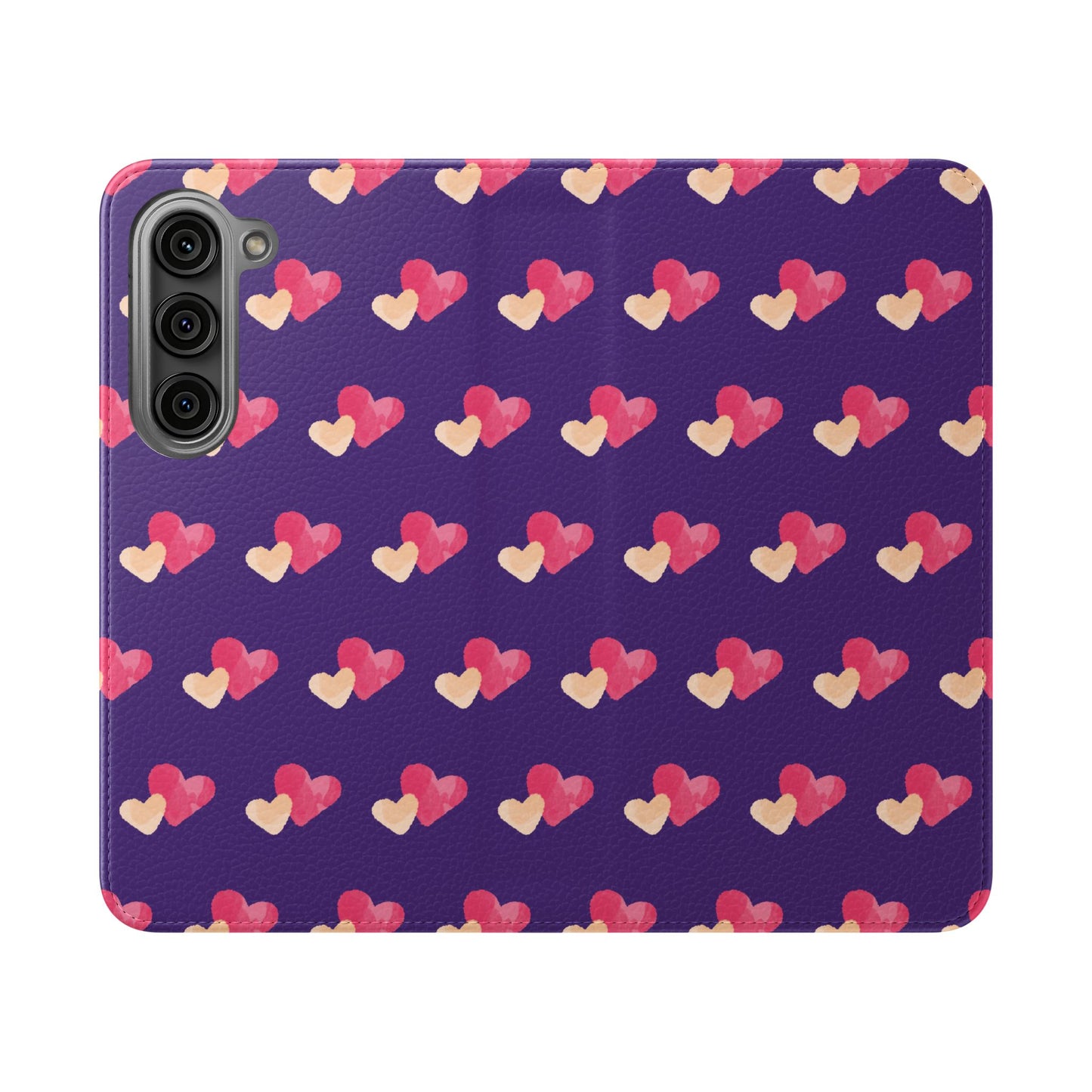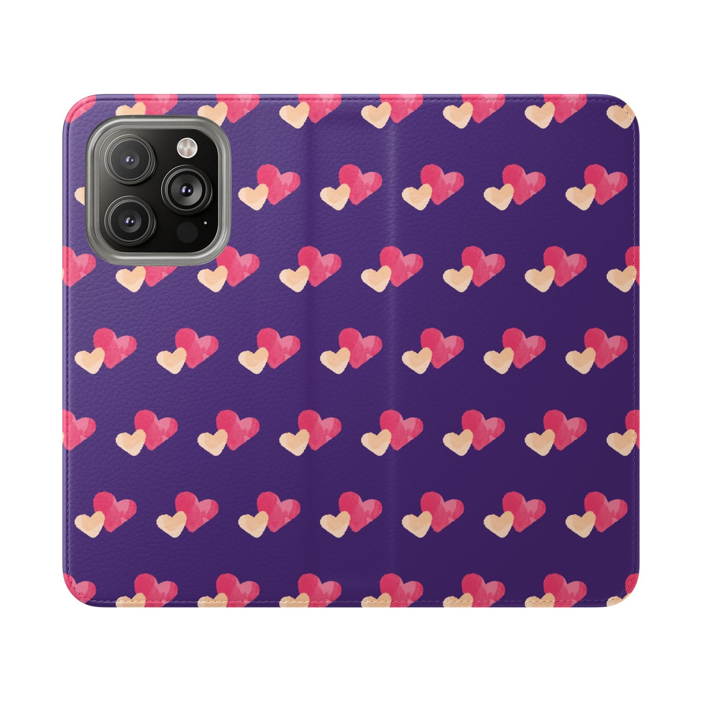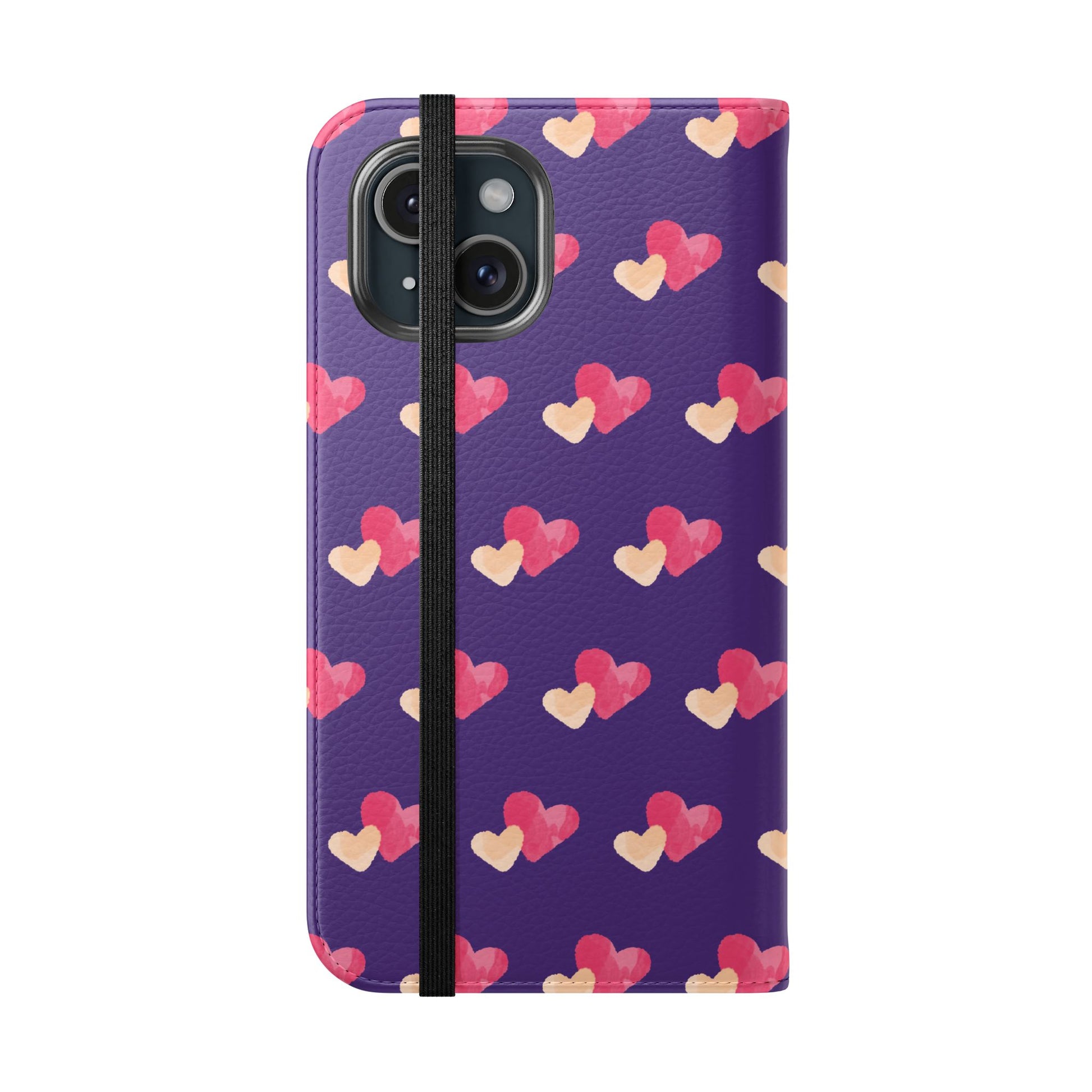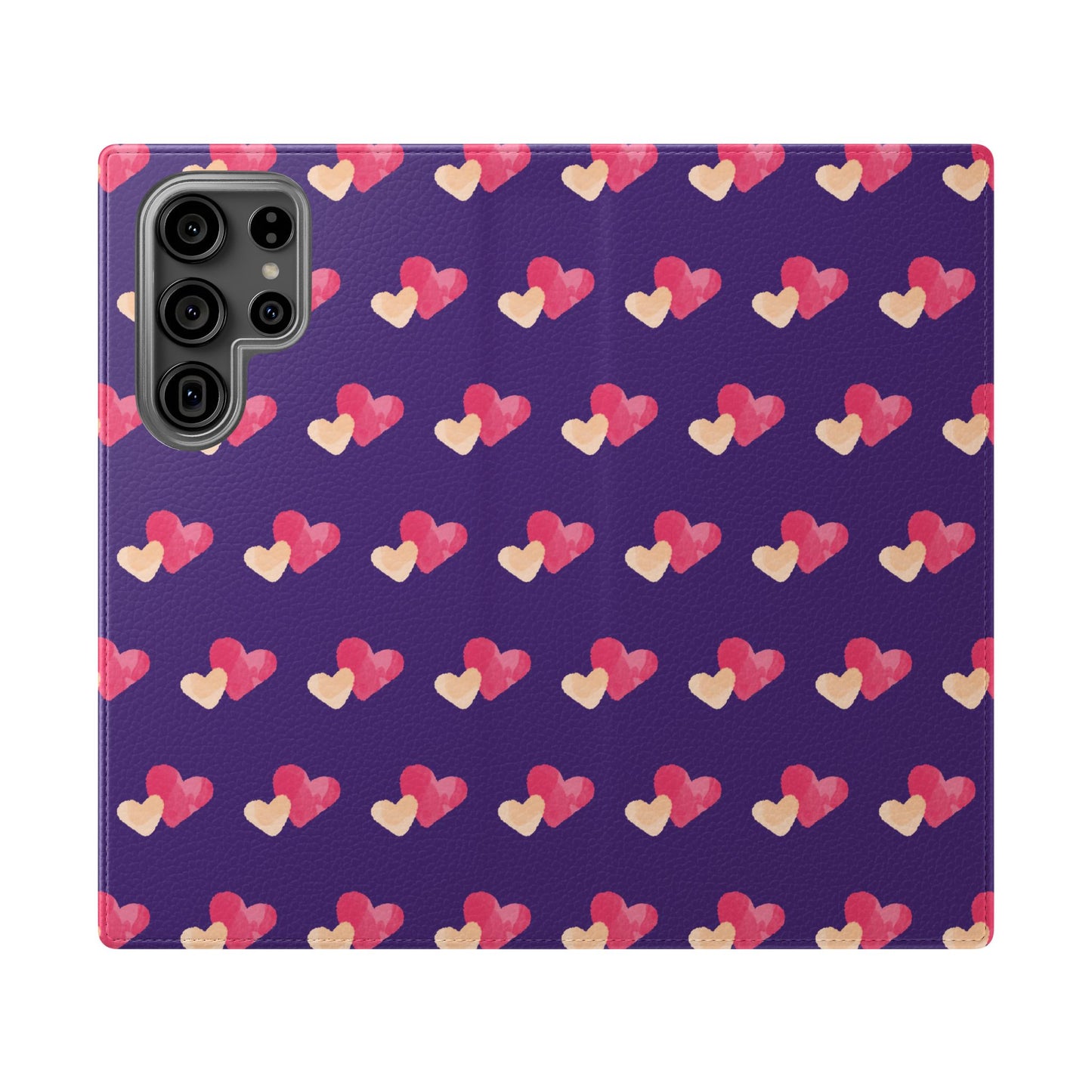 Let every call, scroll, and text be wrapped in love. This charming phone flip case features a pattern of double hearts in red and blush tones against a rich purple background—offering protection with a pop of joyful devotion. Made for everyday use, it’s both functional and faith-inspired, reminding you that you're covered in love wherever you go.
