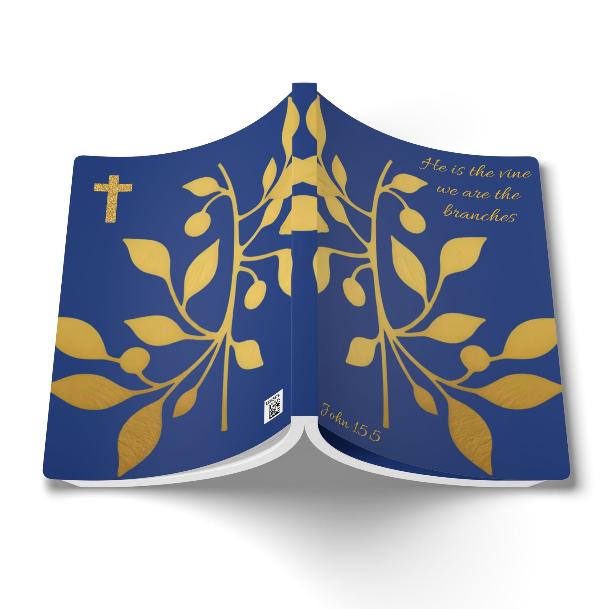 Embrace divine connection with our “Vine & Branches” journal in royal blue and gold. Featuring John 15:5 and stunning vine artwork, this hardcover journal is your sacred space to remain rooted in truth. Whether used for devotionals, Bible study notes, or reflective writing, let this journal remind you daily that true growth comes from abiding in Him.