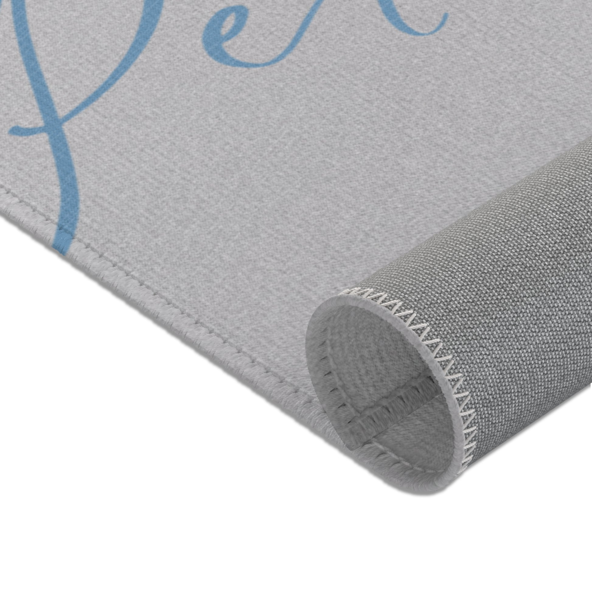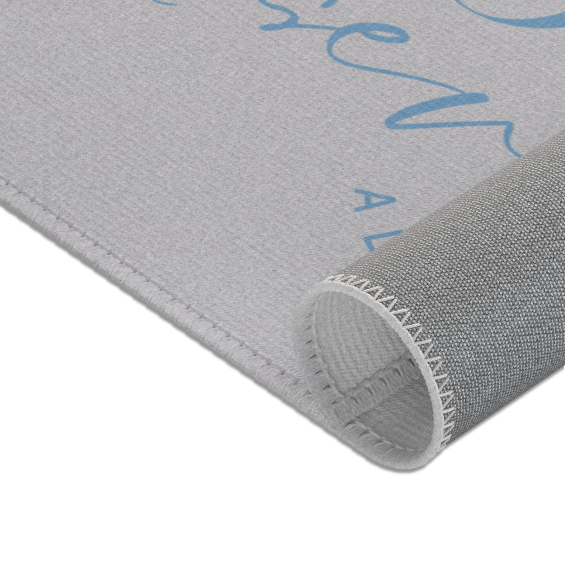 Anchor your home in the quiet strength of love with this elegant “Love Perseveres Always” area rug. With soft blue lettering on a smooth silver-gray background, this design offers a subtle yet impactful reminder of 1 Corinthians 13:7. Perfect for bedrooms, prayer spaces, or peaceful corners where love leads and faith follows.