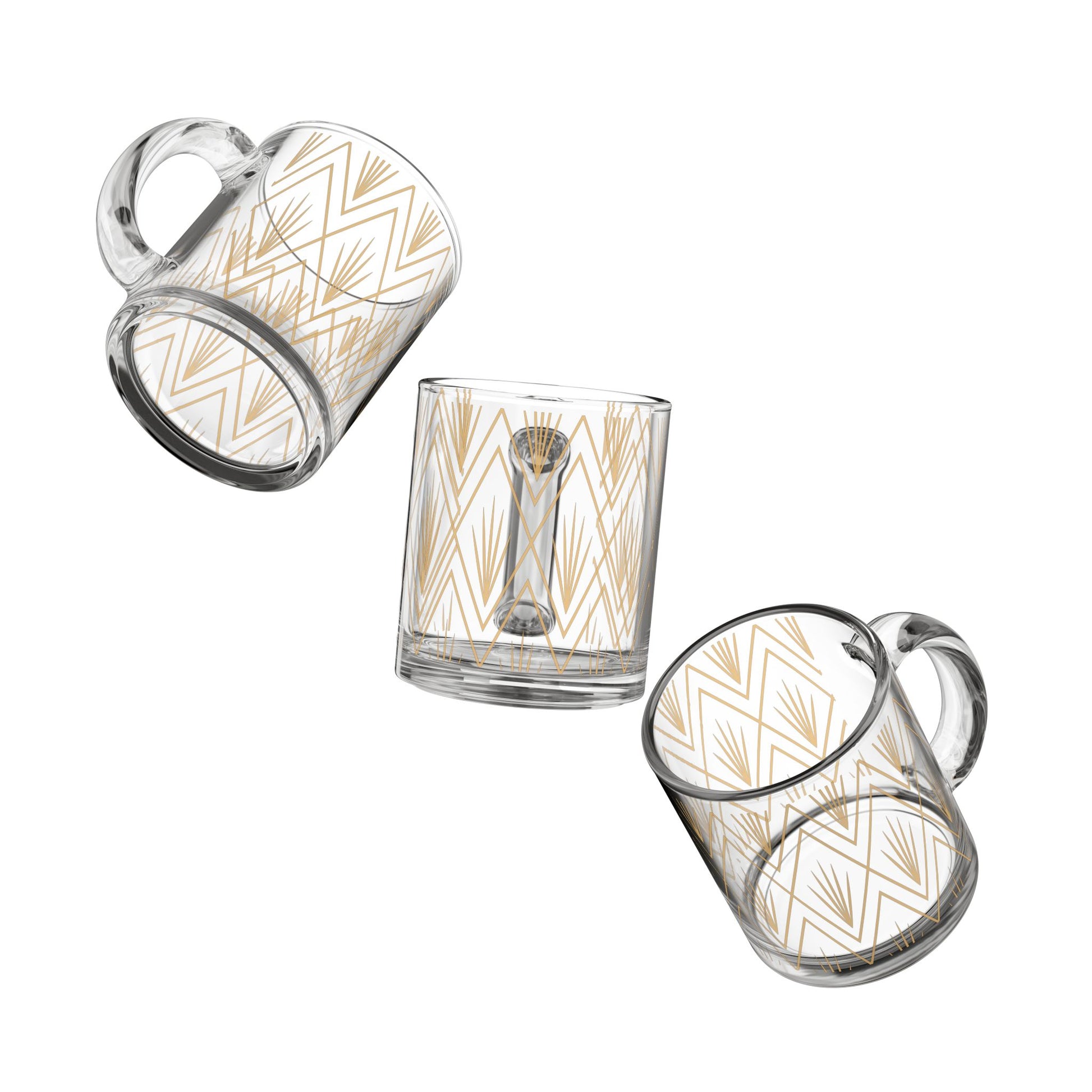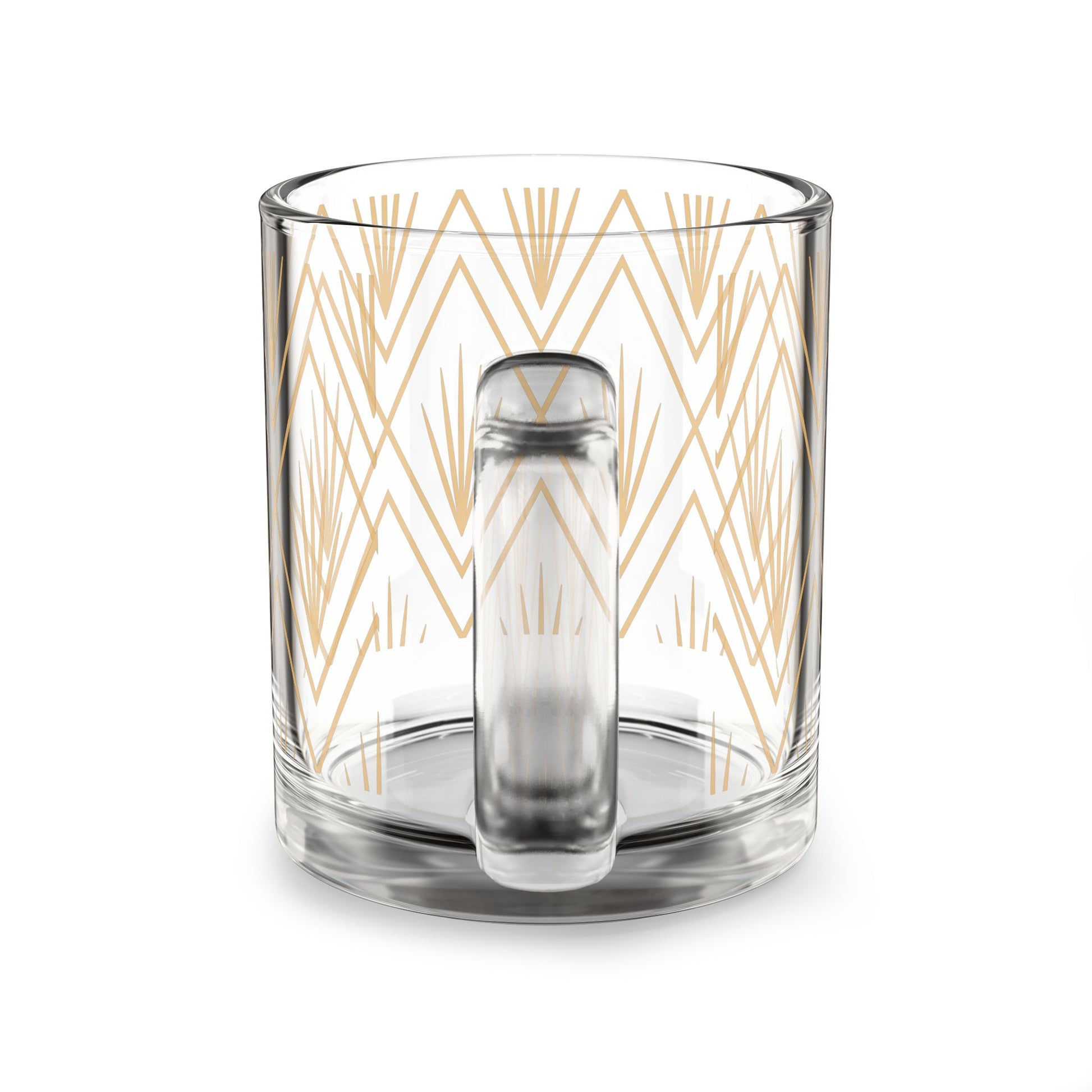 Wrapped in a warm, golden pattern rooted in Art Deco symmetry, it reflects the balance between intention and grace. Each line whispers structure. Each sip, a return to the moment.