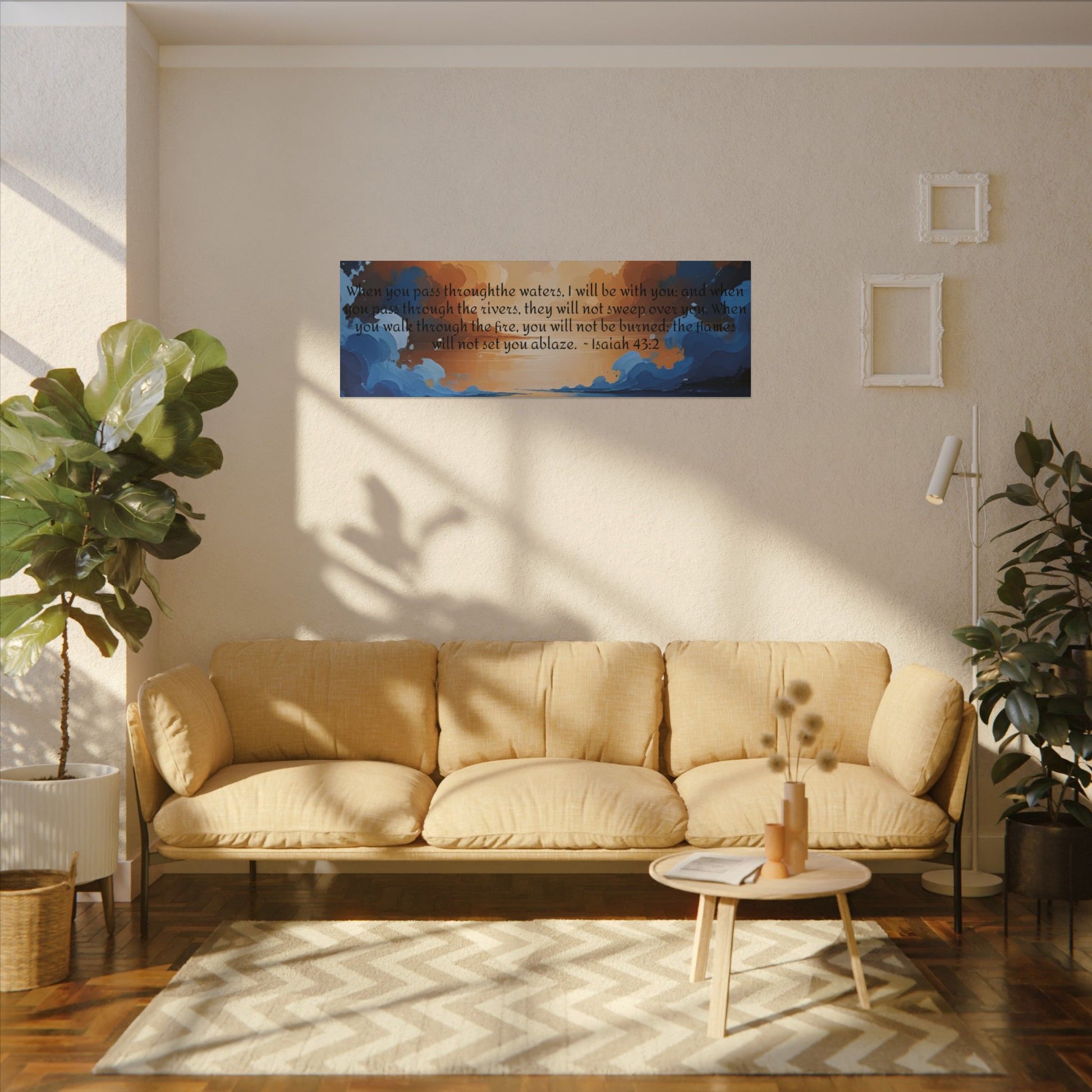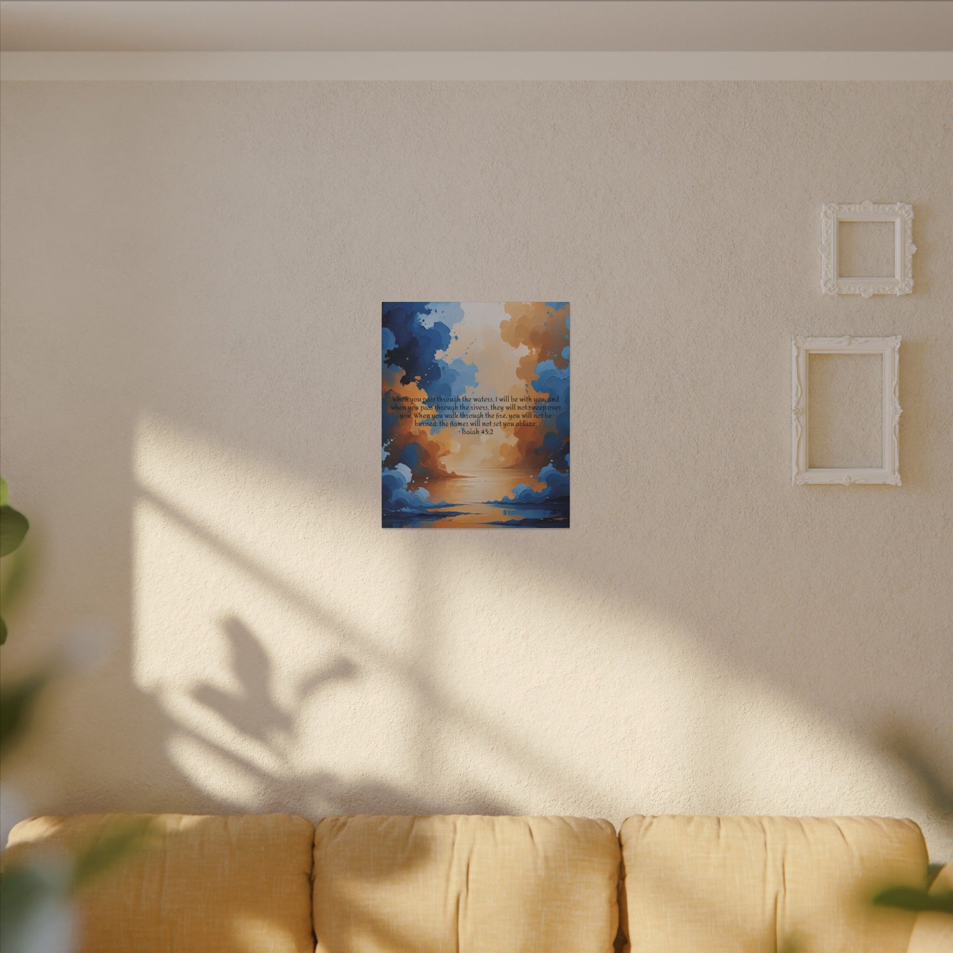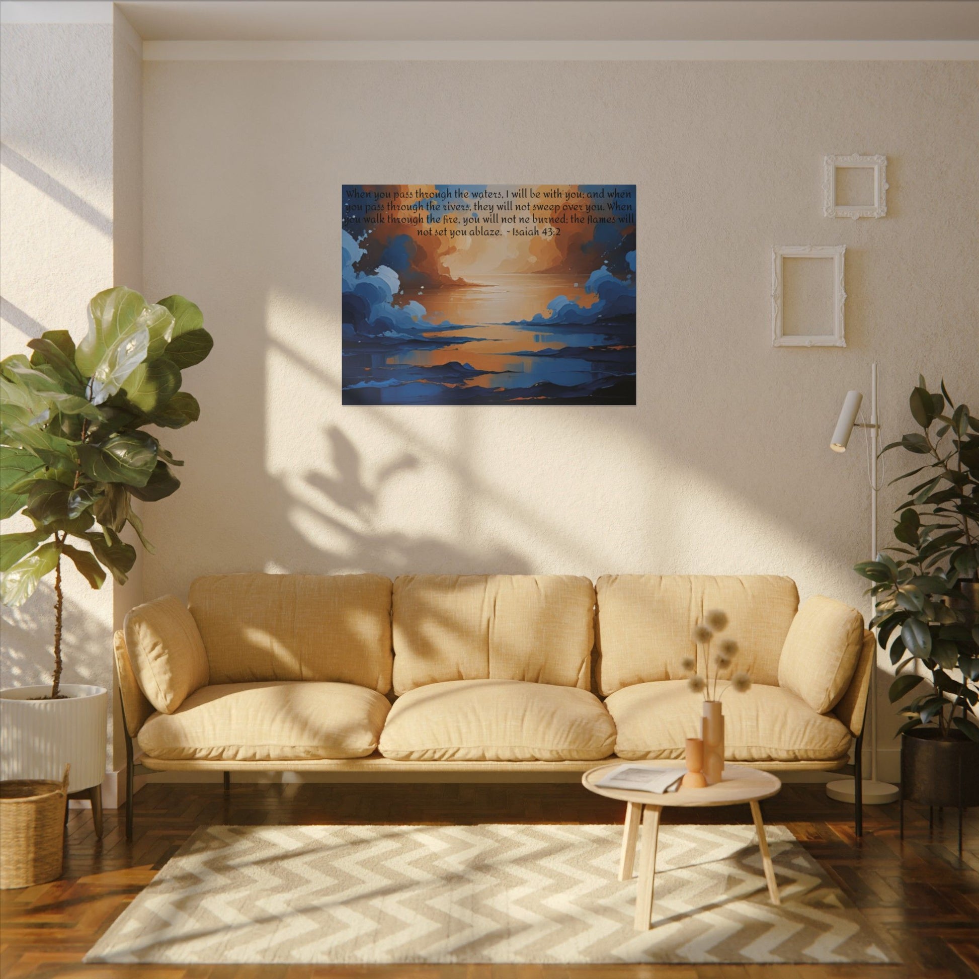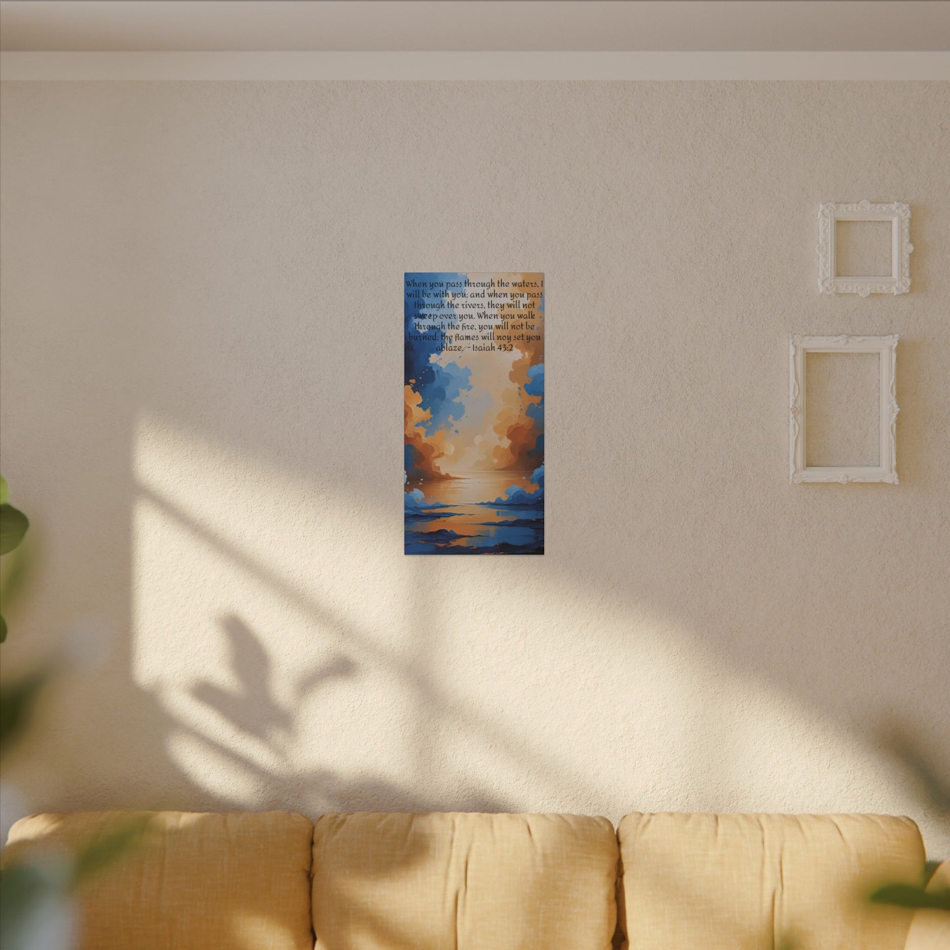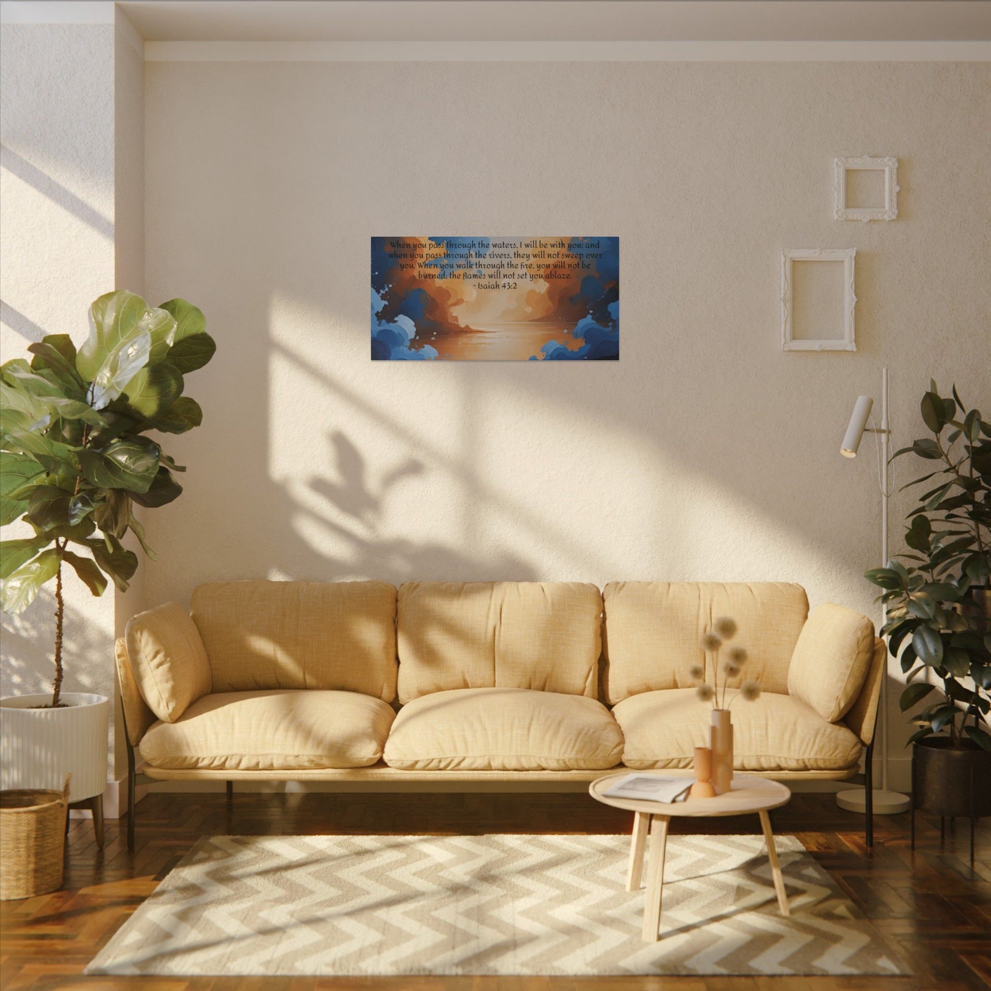 Be reminded of God’s unwavering presence through every storm and trial with this breathtaking canvas print, inspired by Isaiah 43:2. Vivid waves and fiery skies blend beautifully to reflect the promise that no flood will overwhelm you, and no flame will consume you. Whether for your living room, prayer corner, or entryway, this artwork offers hope, peace, and divine reassurance.