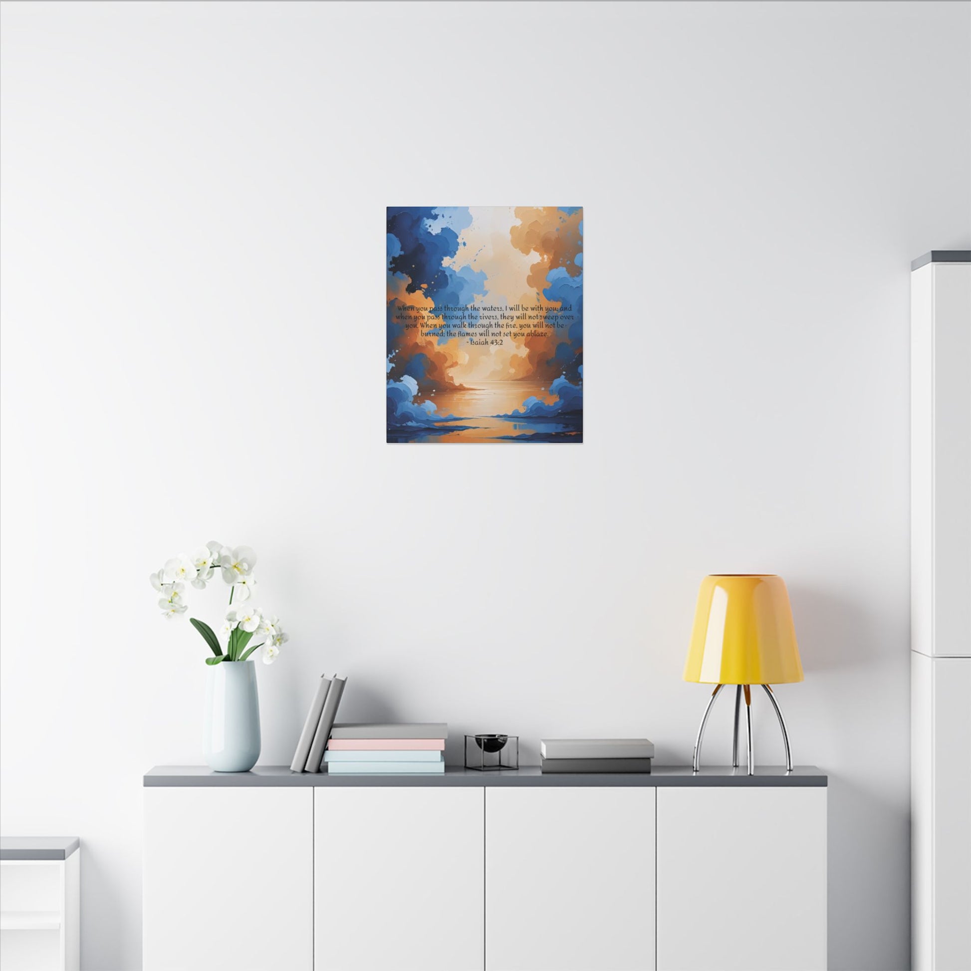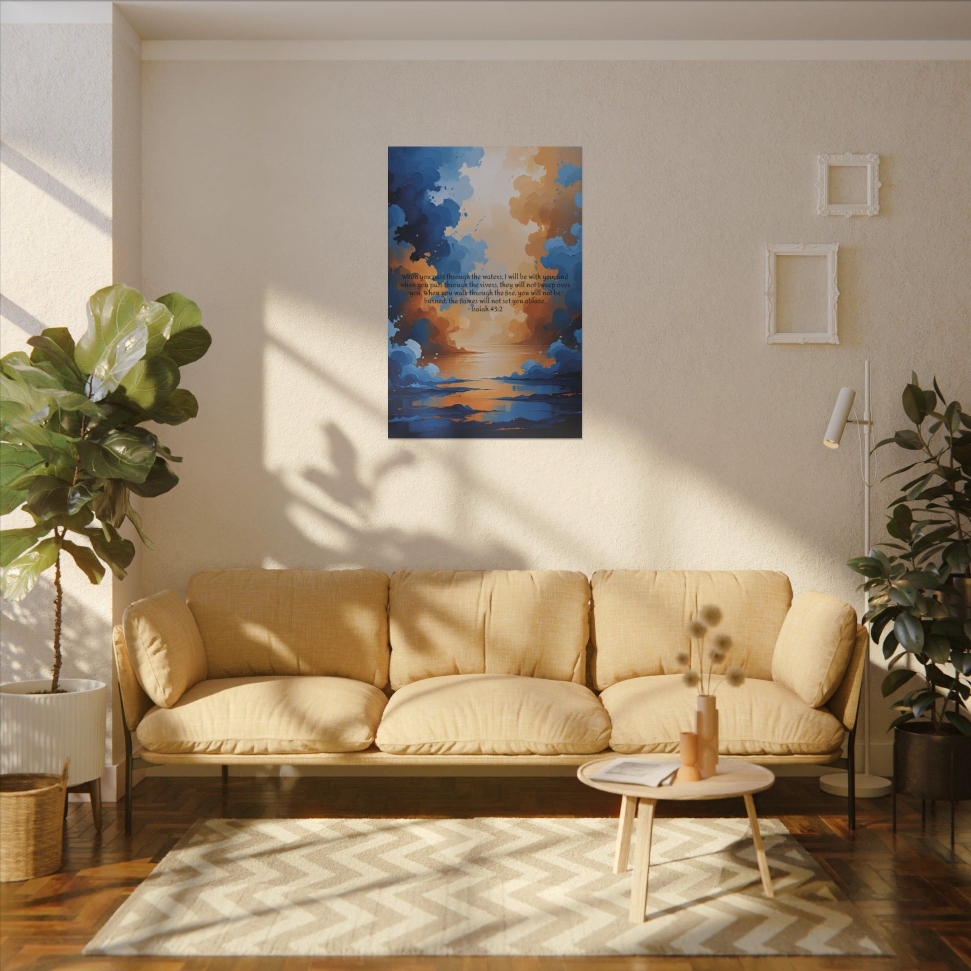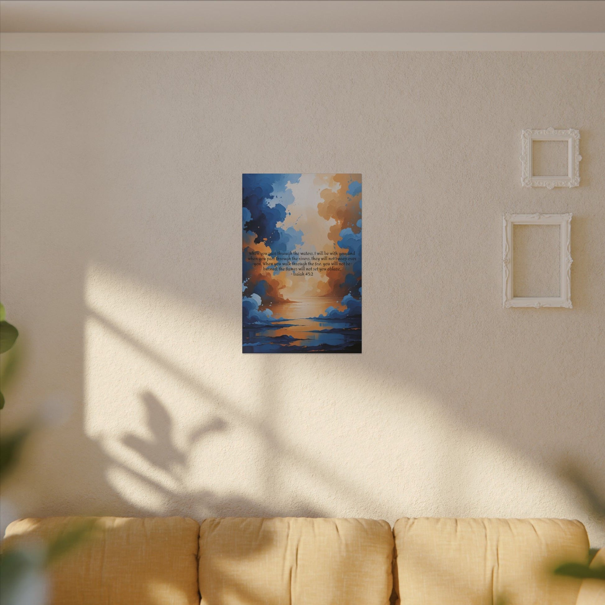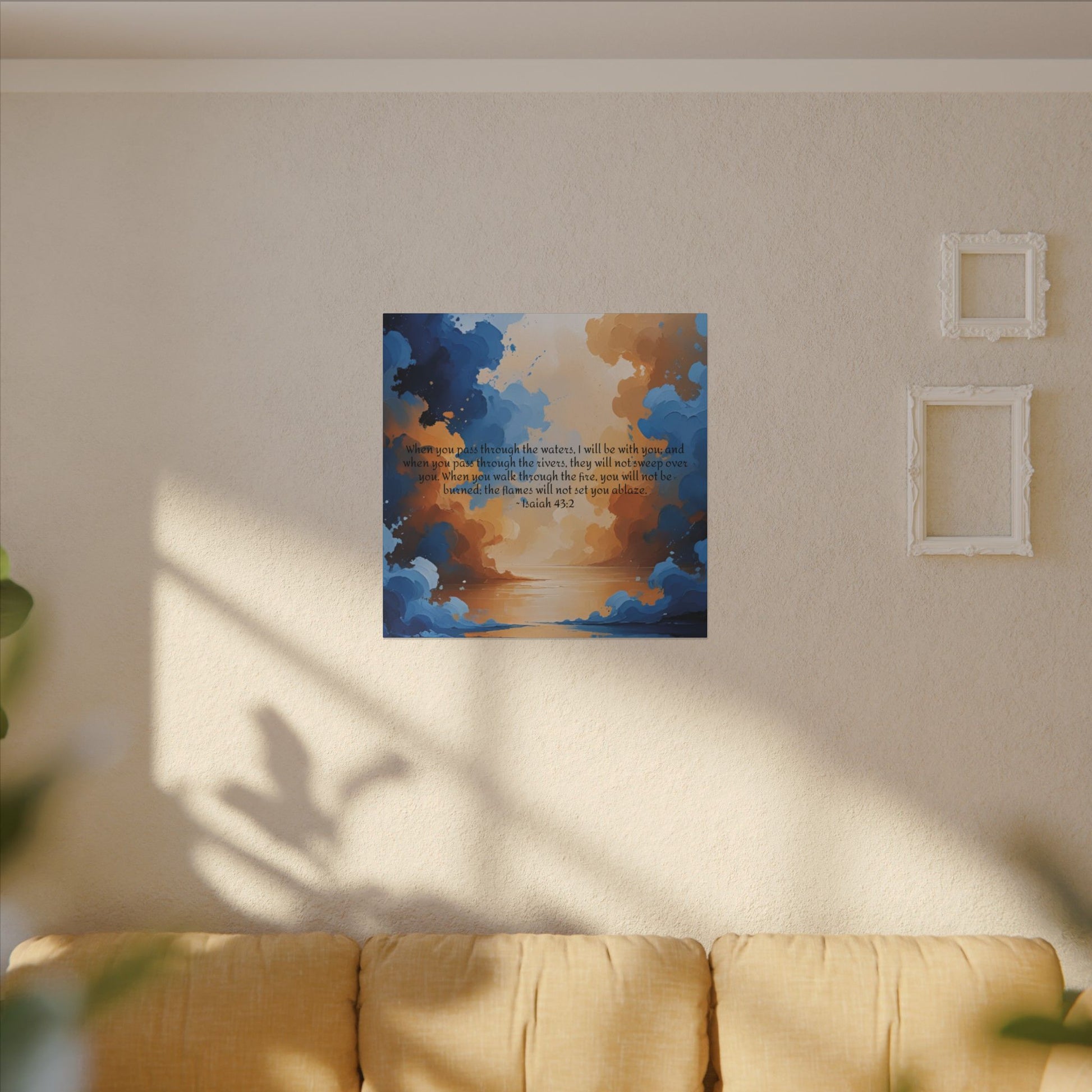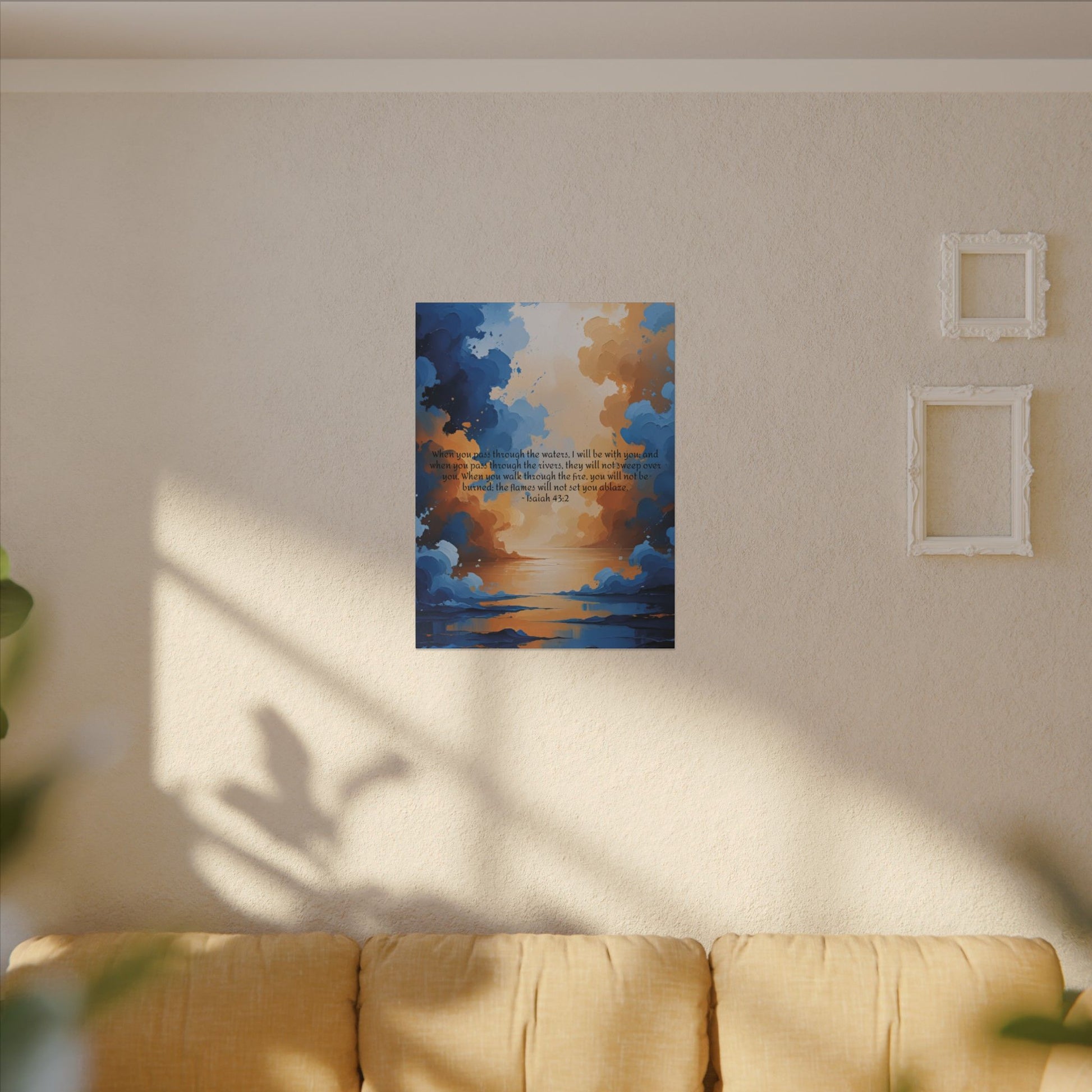 Be reminded of God’s unwavering presence through every storm and trial with this breathtaking canvas print, inspired by Isaiah 43:2. Vivid waves and fiery skies blend beautifully to reflect the promise that no flood will overwhelm you, and no flame will consume you. Whether for your living room, prayer corner, or entryway, this artwork offers hope, peace, and divine reassurance.