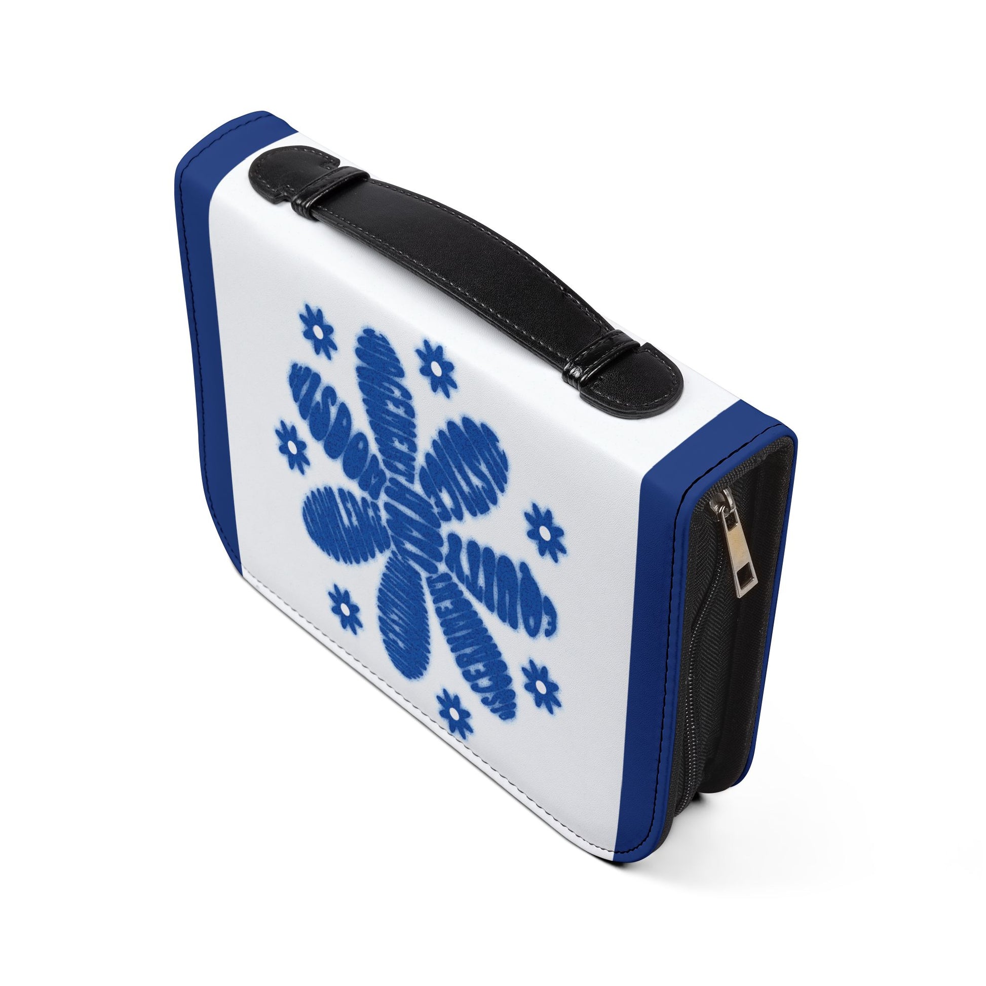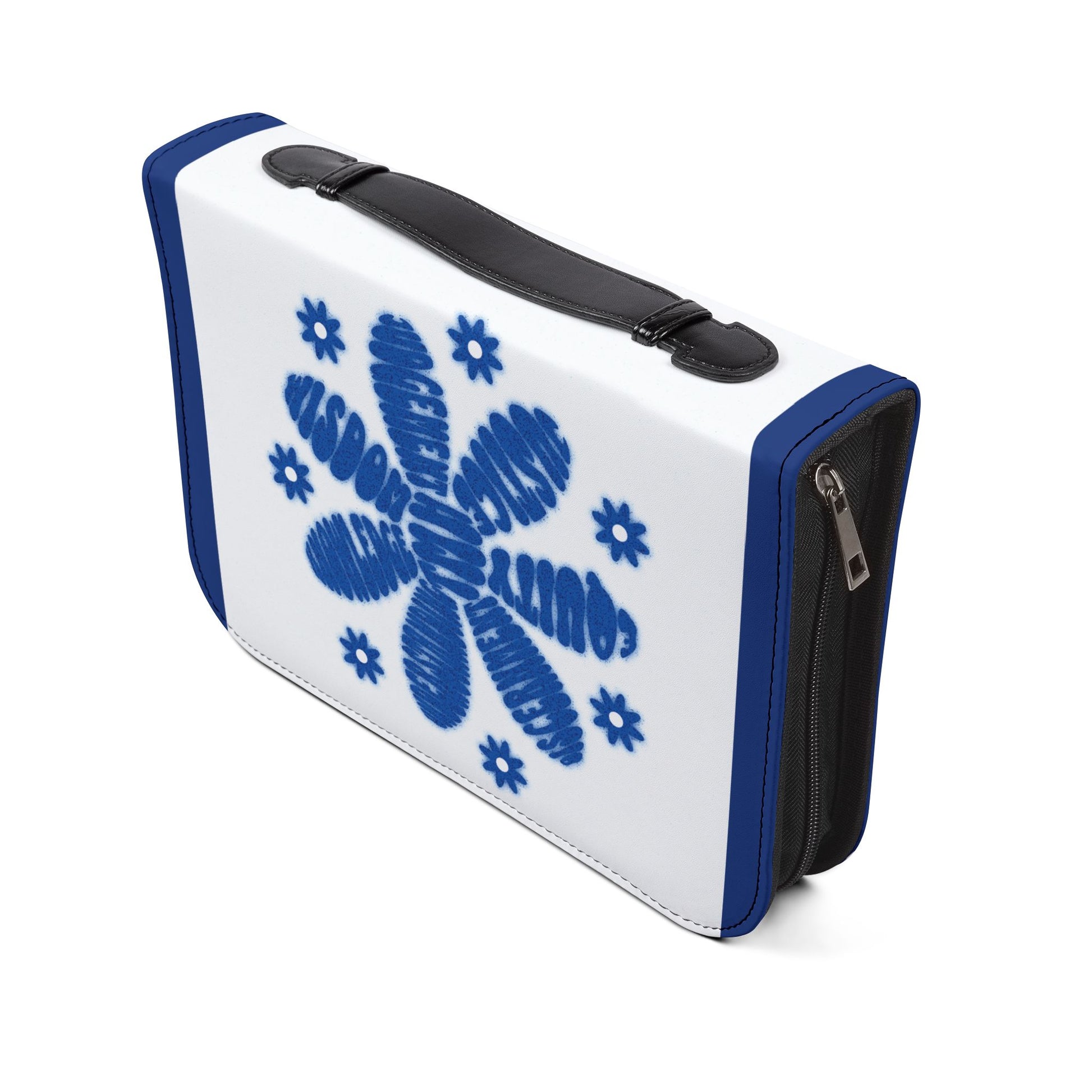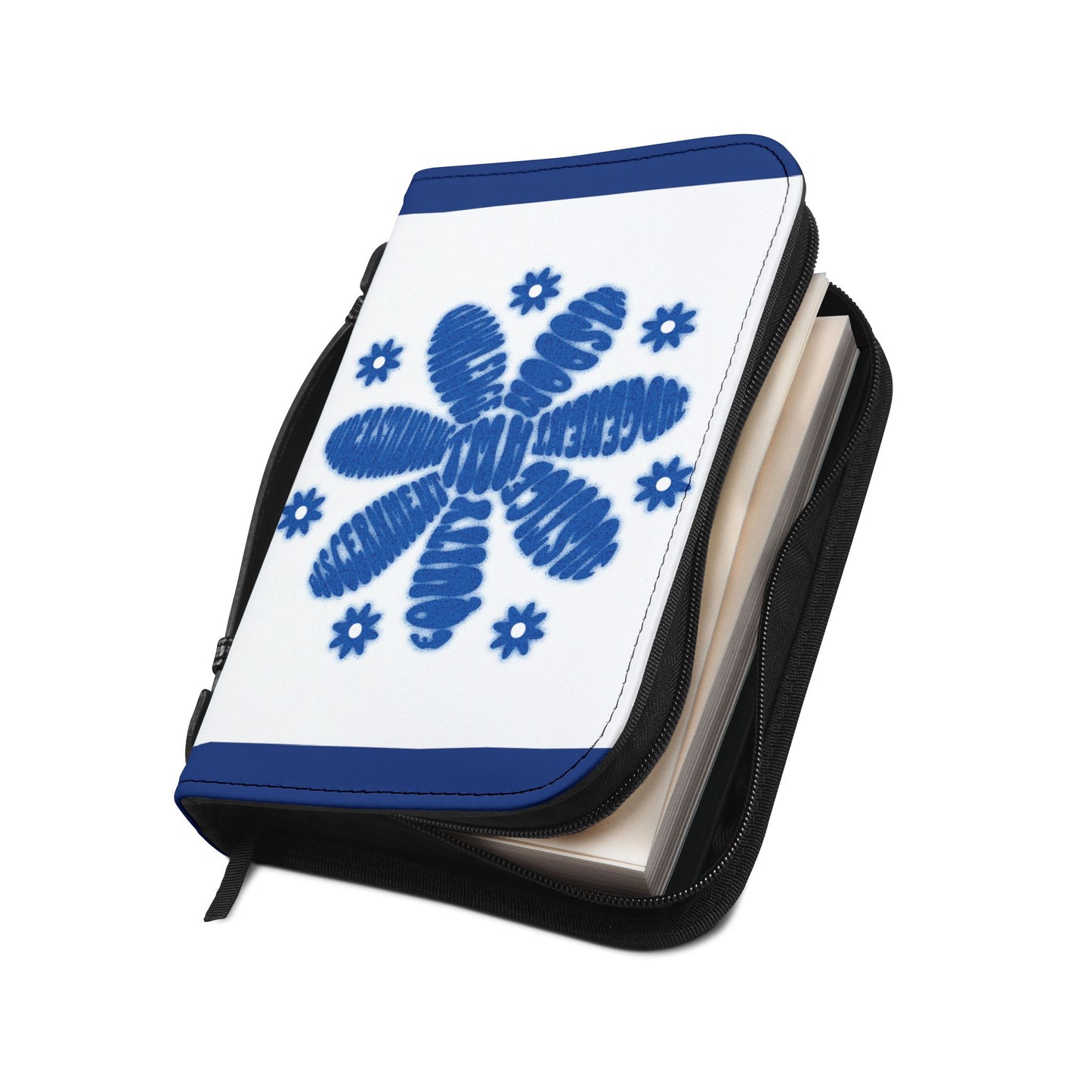 Let wisdom flow like living water. The Deep Waters Edition of our Wisdom in Bloom Bible Cover features bold blue lettering across a clean white backdrop—symbolizing clarity, depth, and peace in God's truth. Each petal displays a divine trait centered on TMH (The Most High), reminding you daily of the spiritual strength you carry.