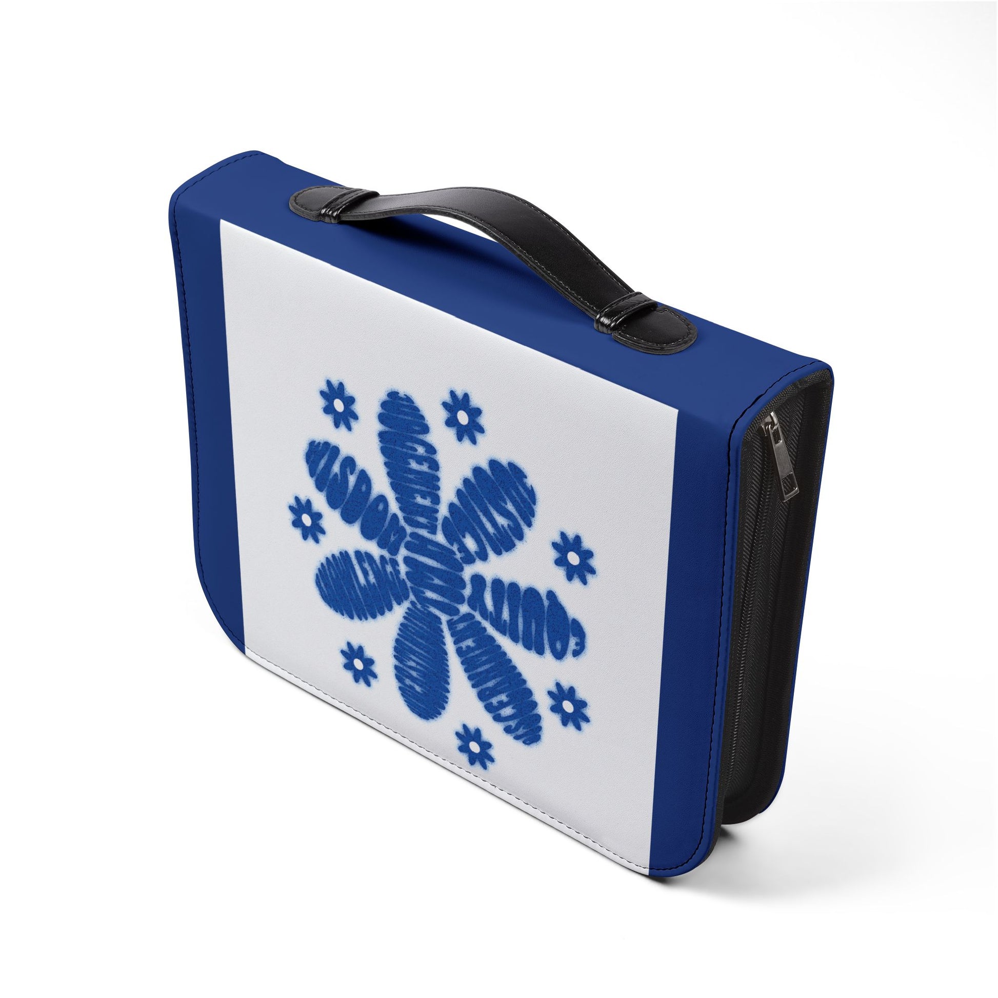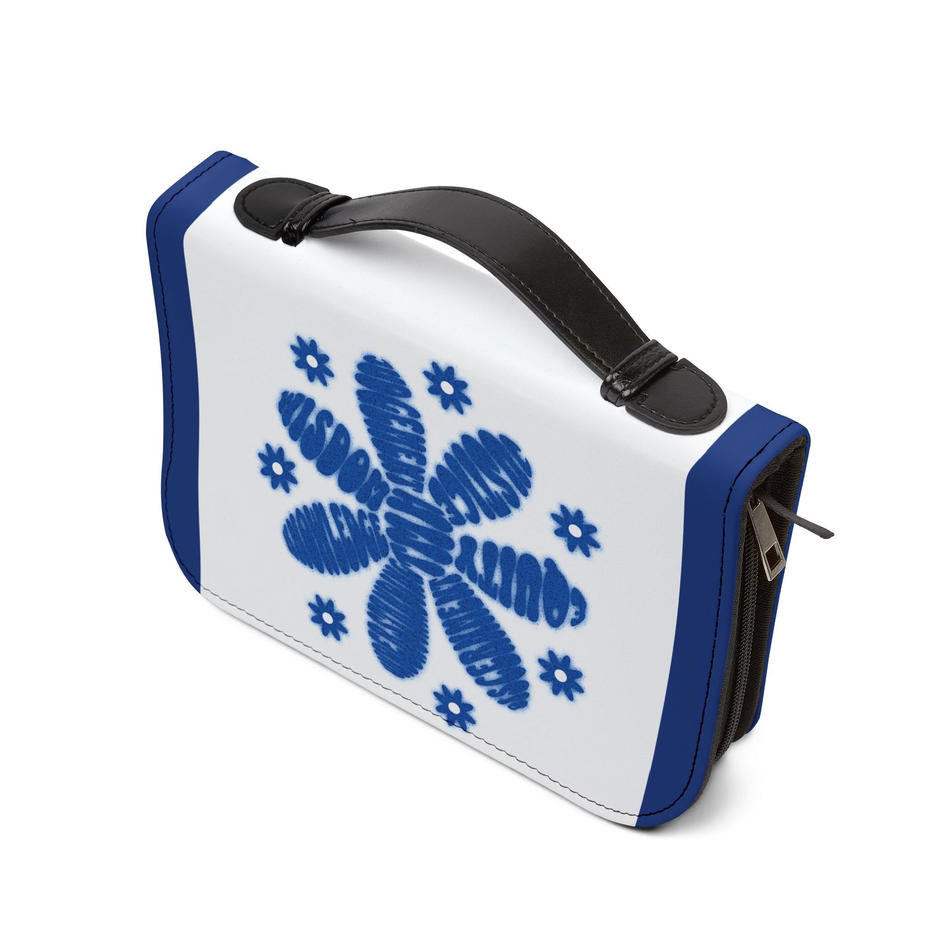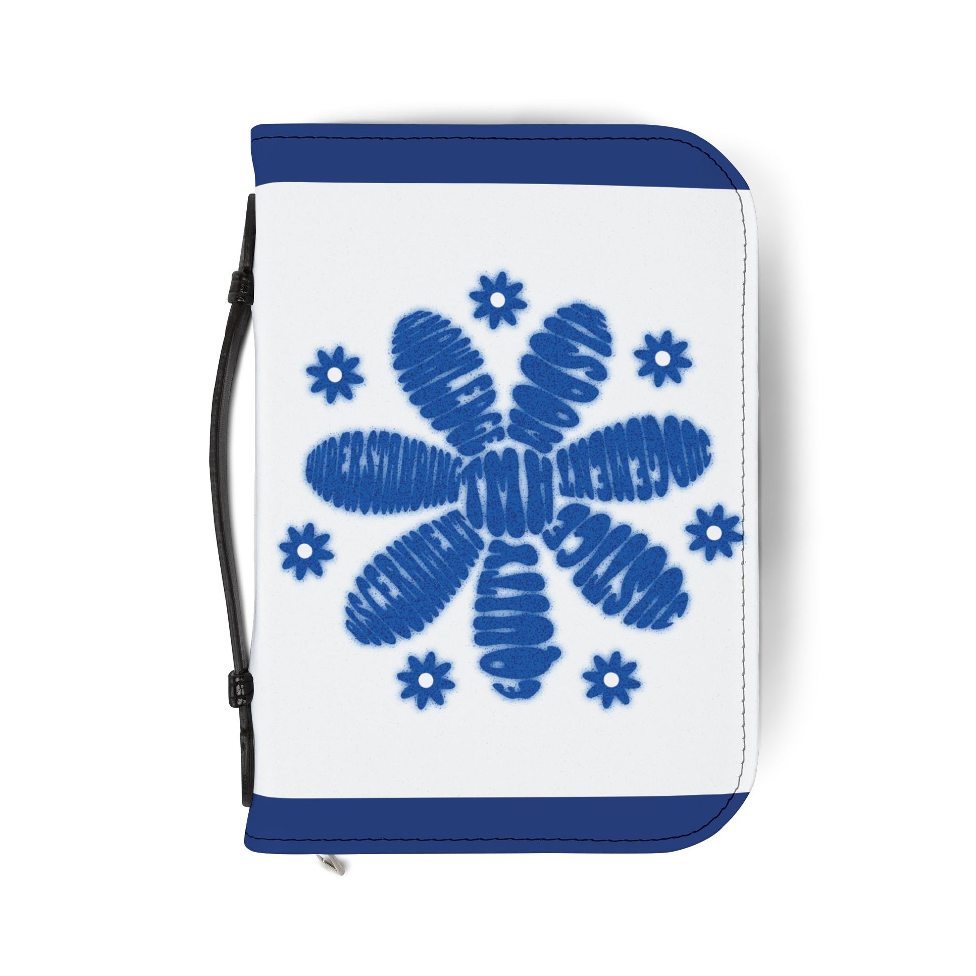 Let wisdom flow like living water. The Deep Waters Edition of our Wisdom in Bloom Bible Cover features bold blue lettering across a clean white backdrop—symbolizing clarity, depth, and peace in God's truth. Each petal displays a divine trait centered on TMH (The Most High), reminding you daily of the spiritual strength you carry.