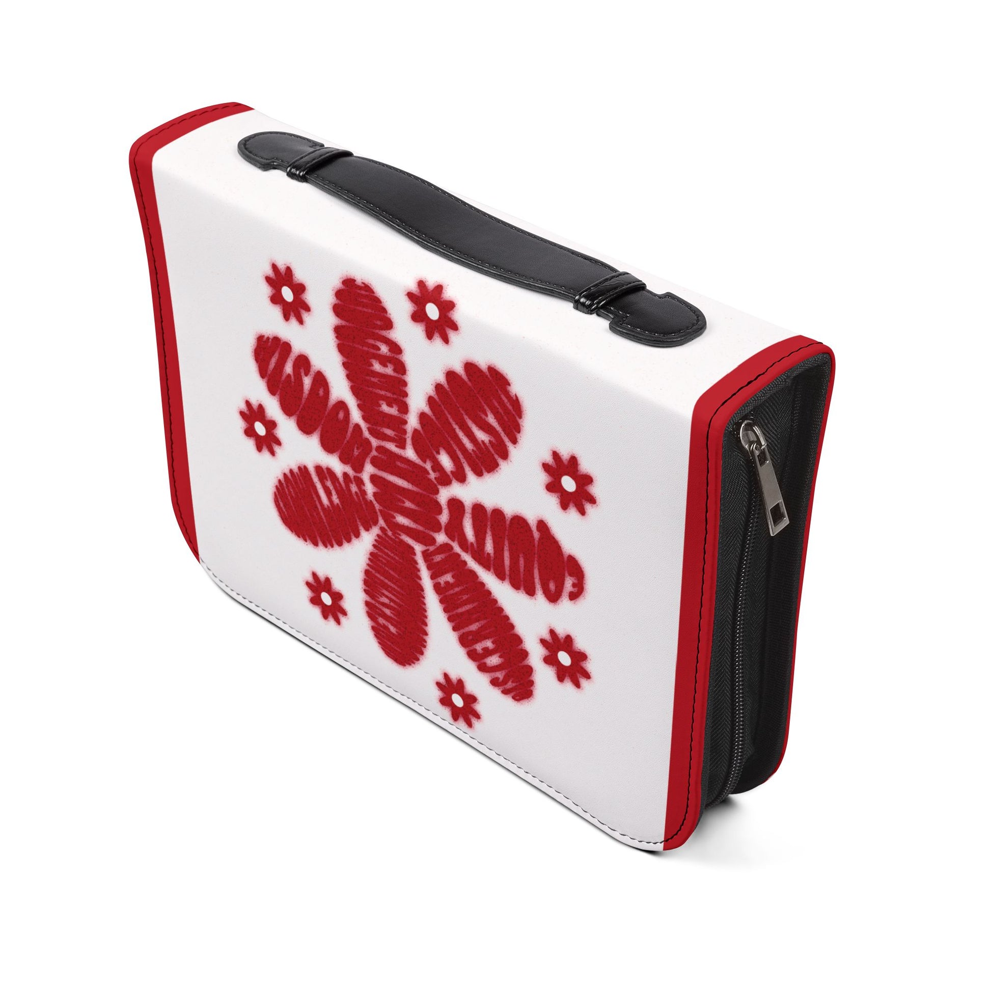 Let your faith speak boldly. The Fire & Truth Edition of our Wisdom in Bloom Bible Cover brings the same Spirit-led design in a striking red-on-white palette. Each petal holds divine attributes—Wisdom, Knowledge, Justice, Understanding, and more—rooted in the Most High. It’s not just a cover, it’s a declaration.