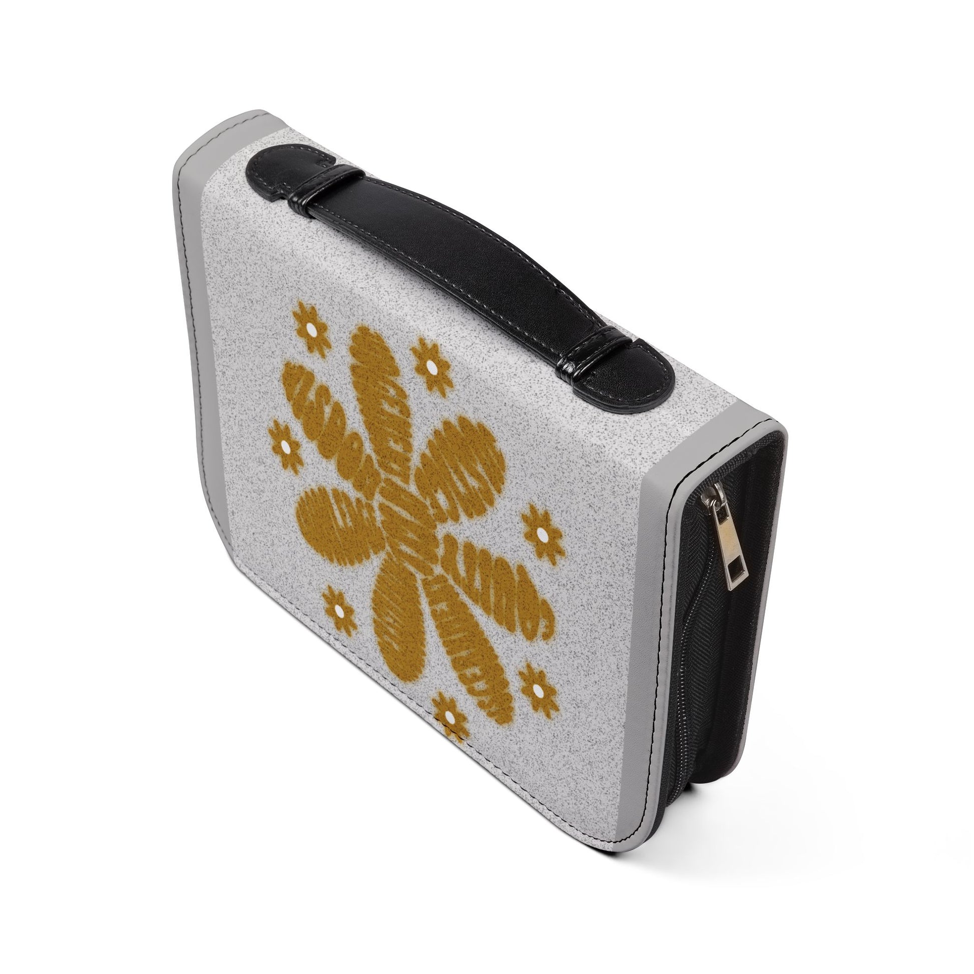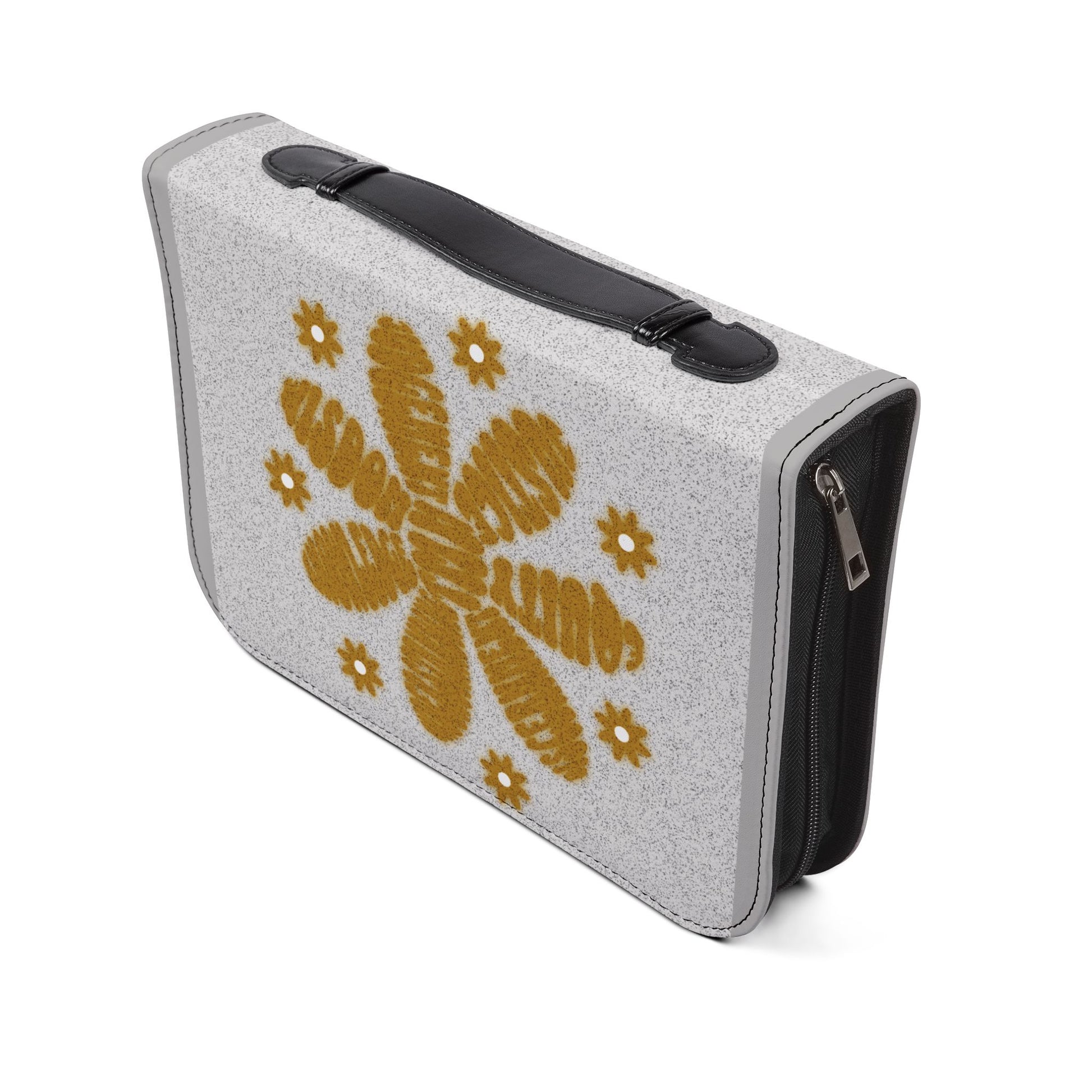 Sophisticated and spirit-filled, the Golden Light Edition of our Wisdom in Bloom Bible Cover radiates divine character and clarity. With its soft gray background and golden flower typography spelling out Knowledge, Understanding, Equity, Justice, Judgment, Discernment, Wisdom, and TMH, this cover brings the power of Proverbs into every step of your walk.
