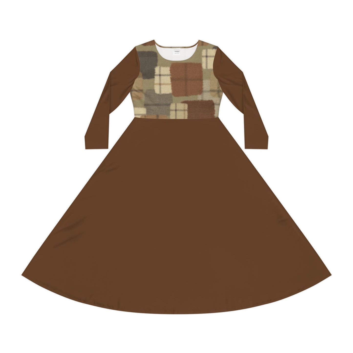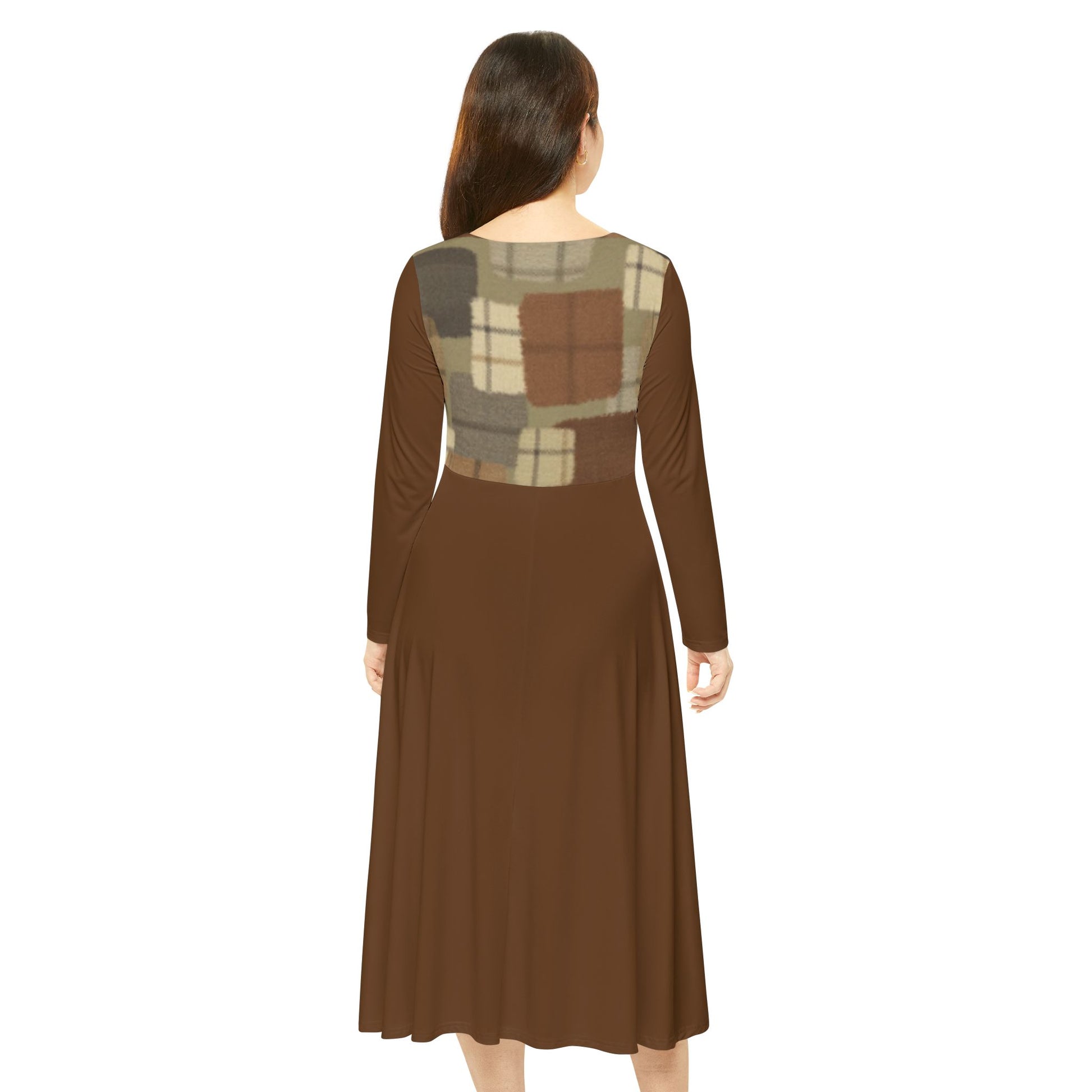 Rooted & Warm – Plaid Yoke Long-Sleeve Midi Dress