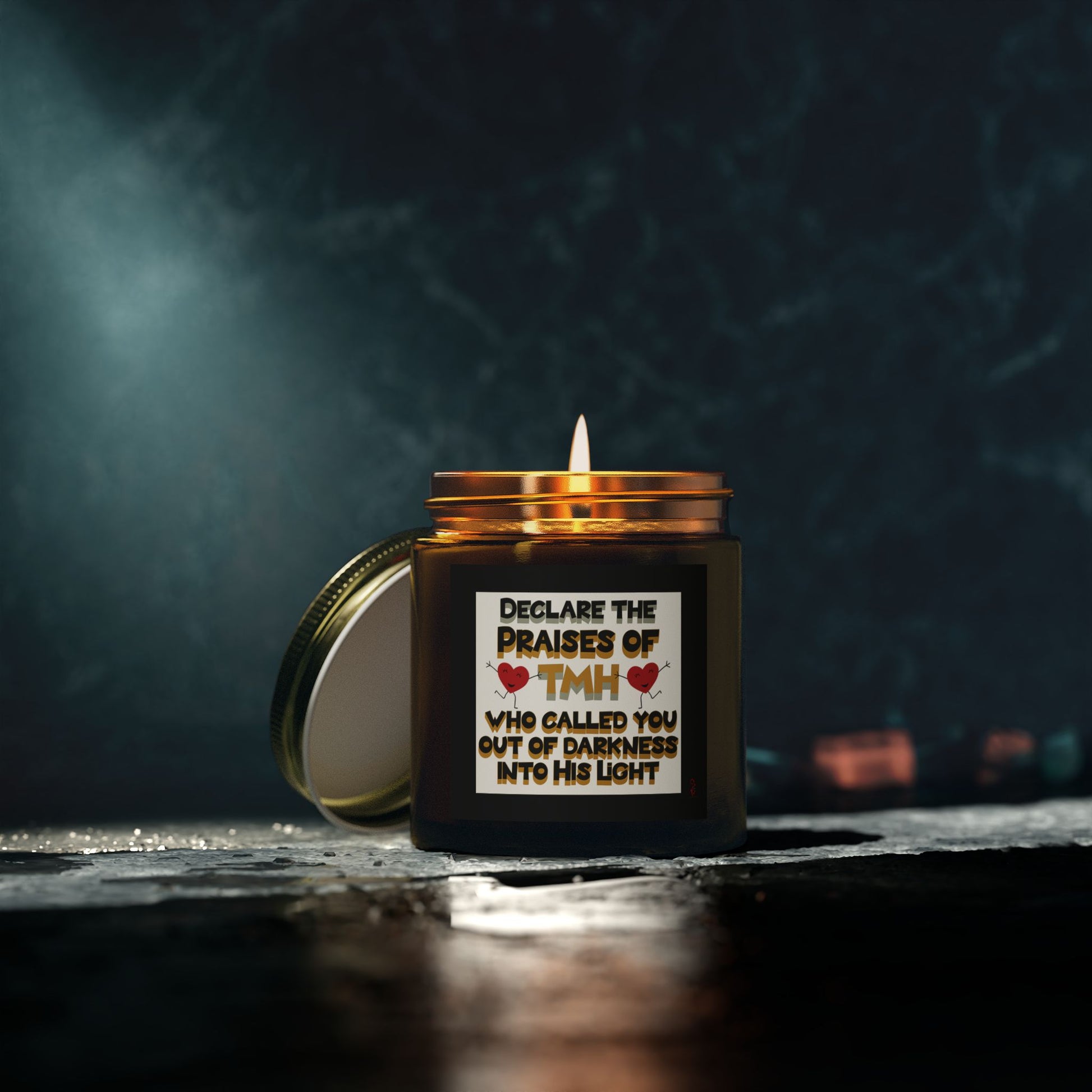 Declare the praises of TMH (The Most High) with every flicker and flame. This uplifting scented candle is a tribute to 1 Peter 2:9, reminding us of the One who called us out of darkness and into His glorious light. Whether you choose the elegant clear jar or the rich amber glass, each candle fills your space with warmth, truth, and a heavenly aroma.