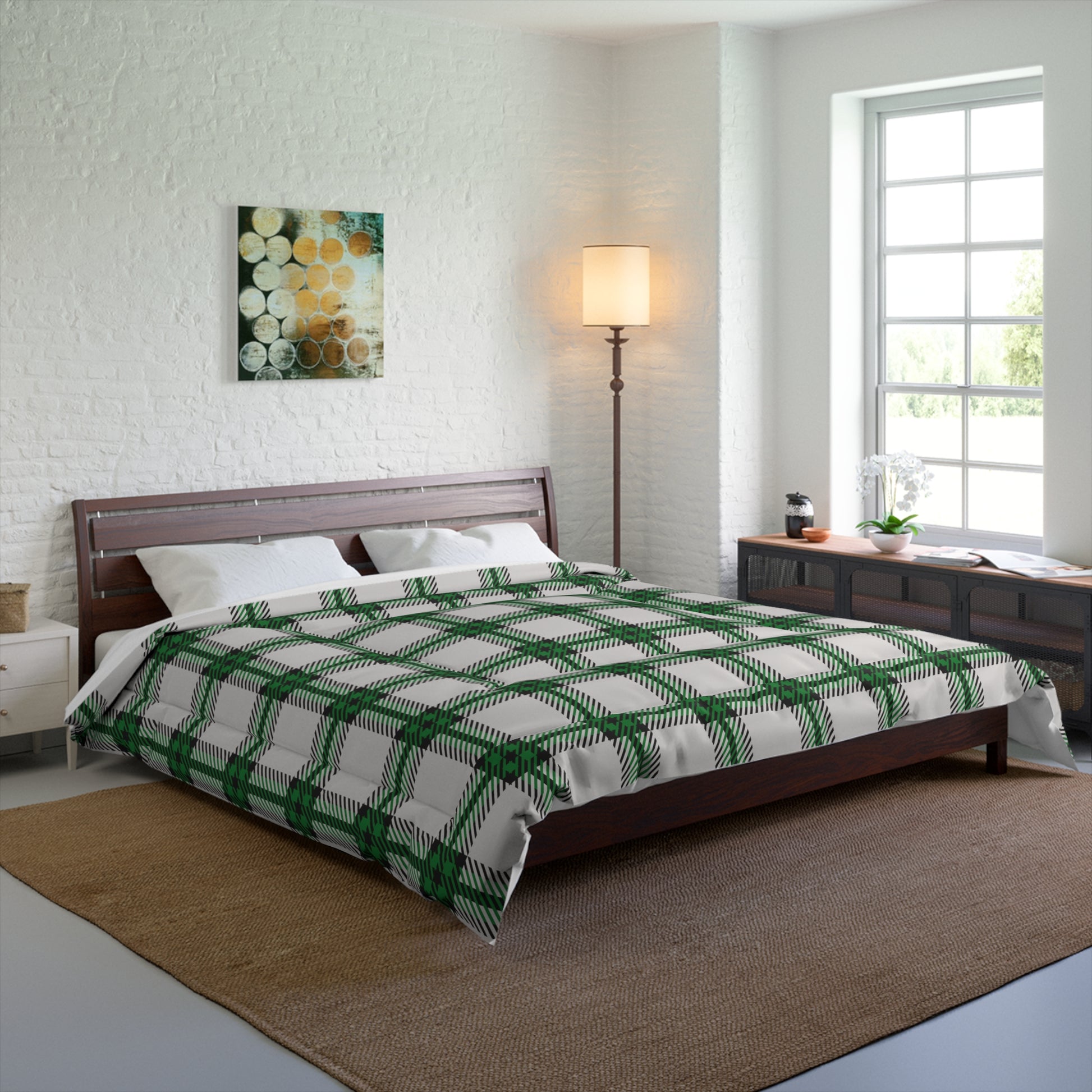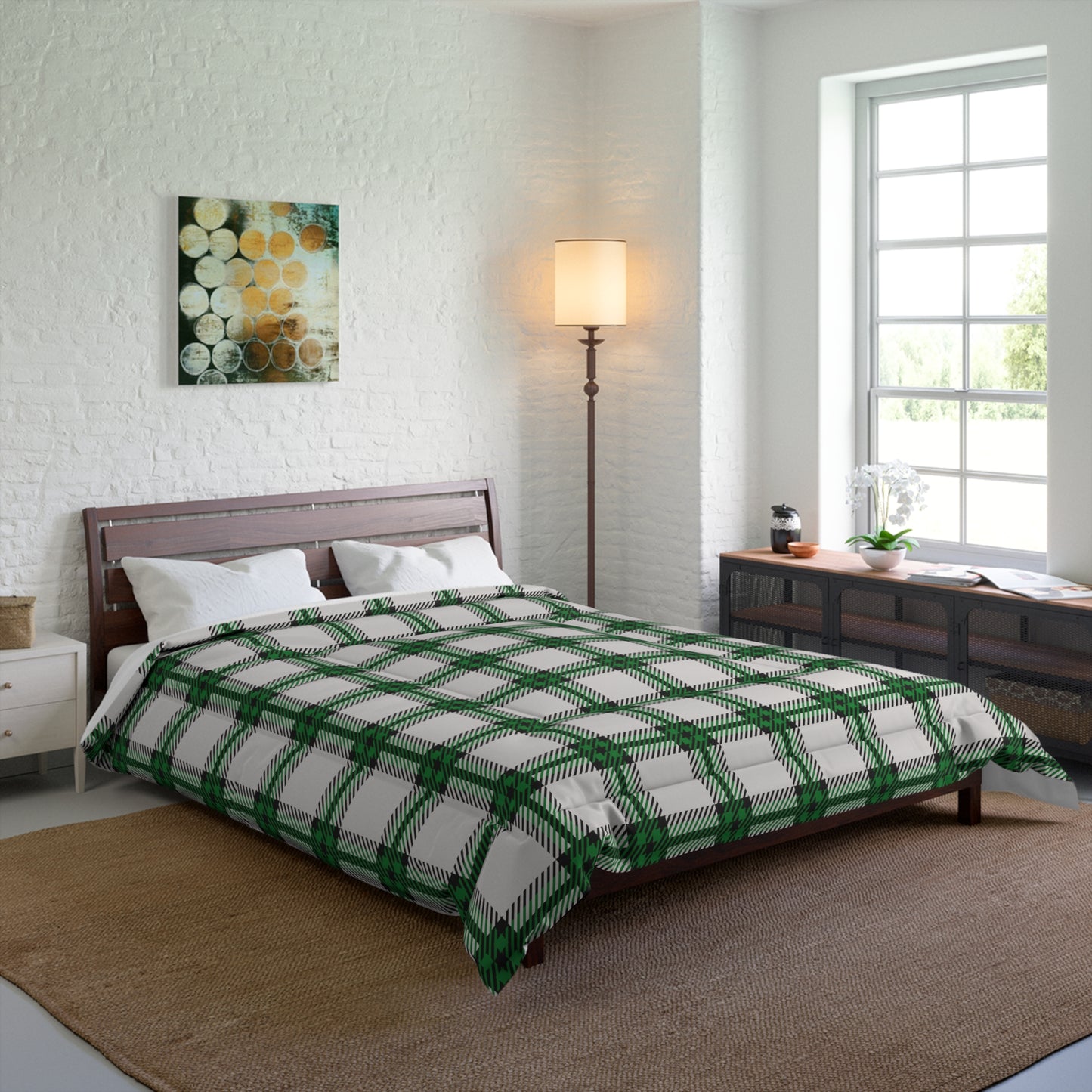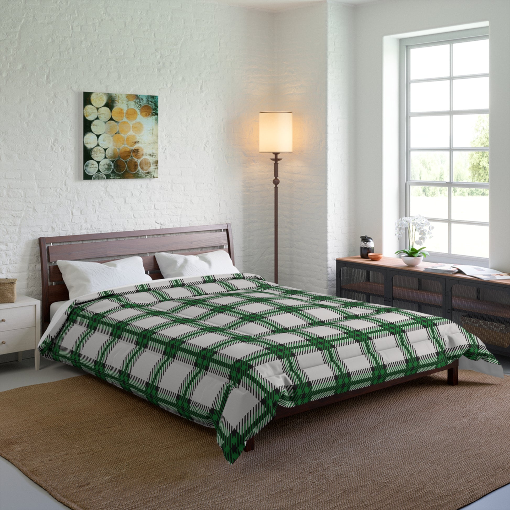 Wrap yourself in layered stillness and sacred strength with the Shadow Glen comforter. This boldly faithful plaid—woven in evergreen, stone white, and charcoal black—whispers heritage with every thread and grounds your space in divine resilience.