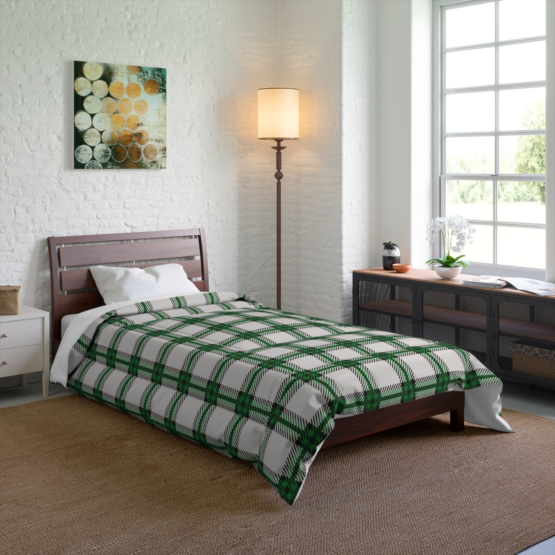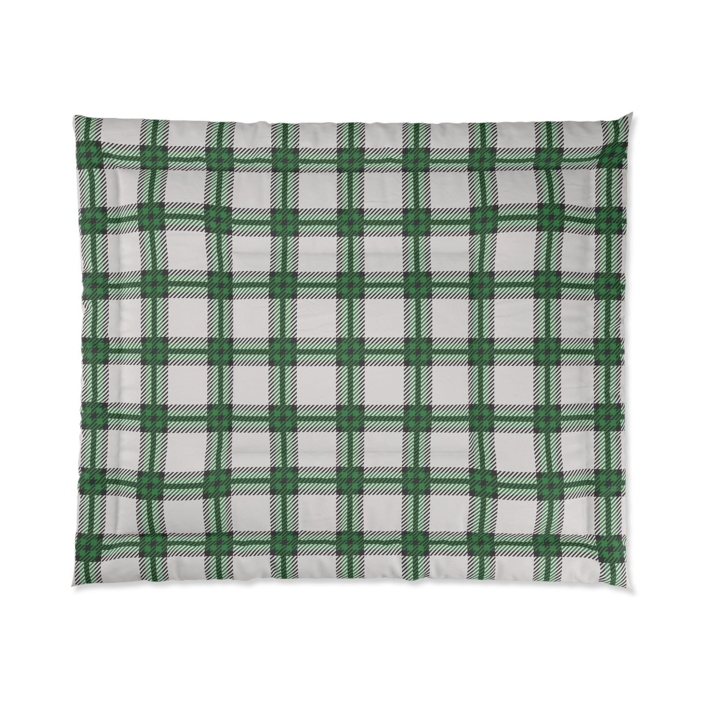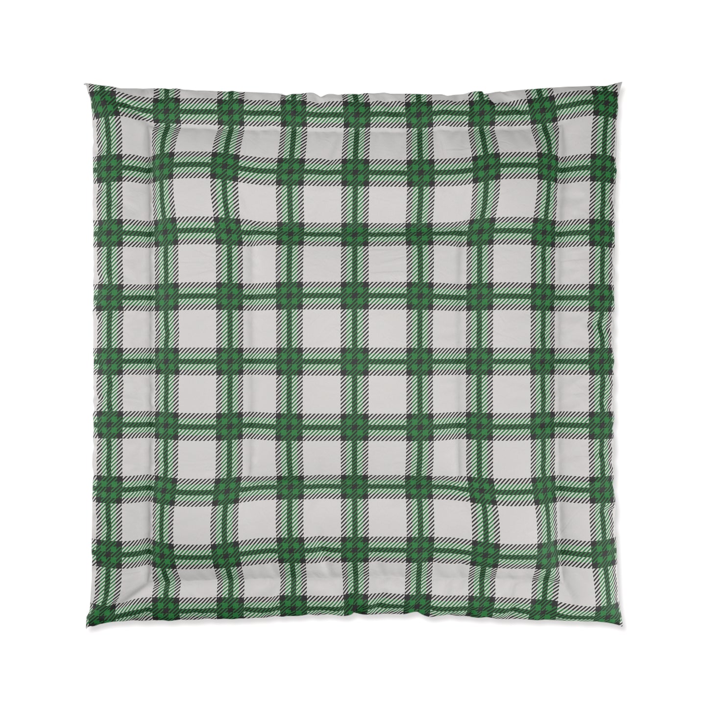 Wrap yourself in layered stillness and sacred strength with the Shadow Glen comforter. This boldly faithful plaid—woven in evergreen, stone white, and charcoal black—whispers heritage with every thread and grounds your space in divine resilience.