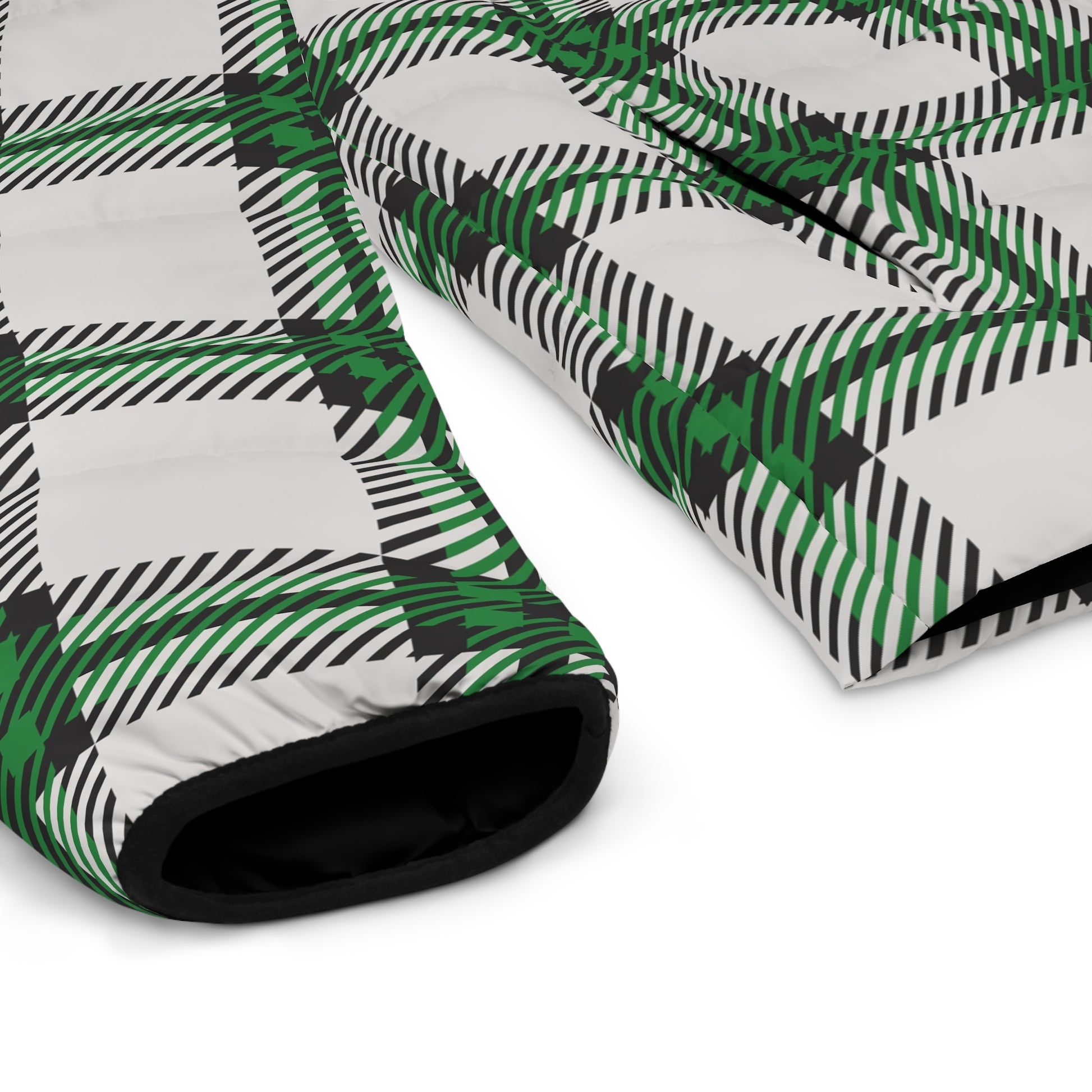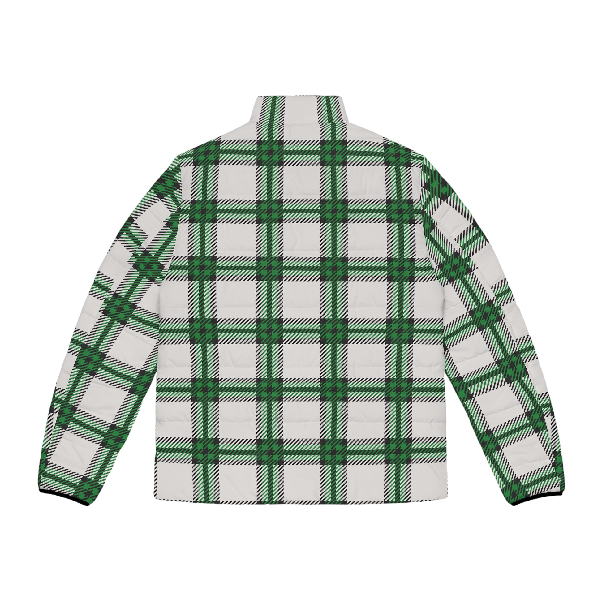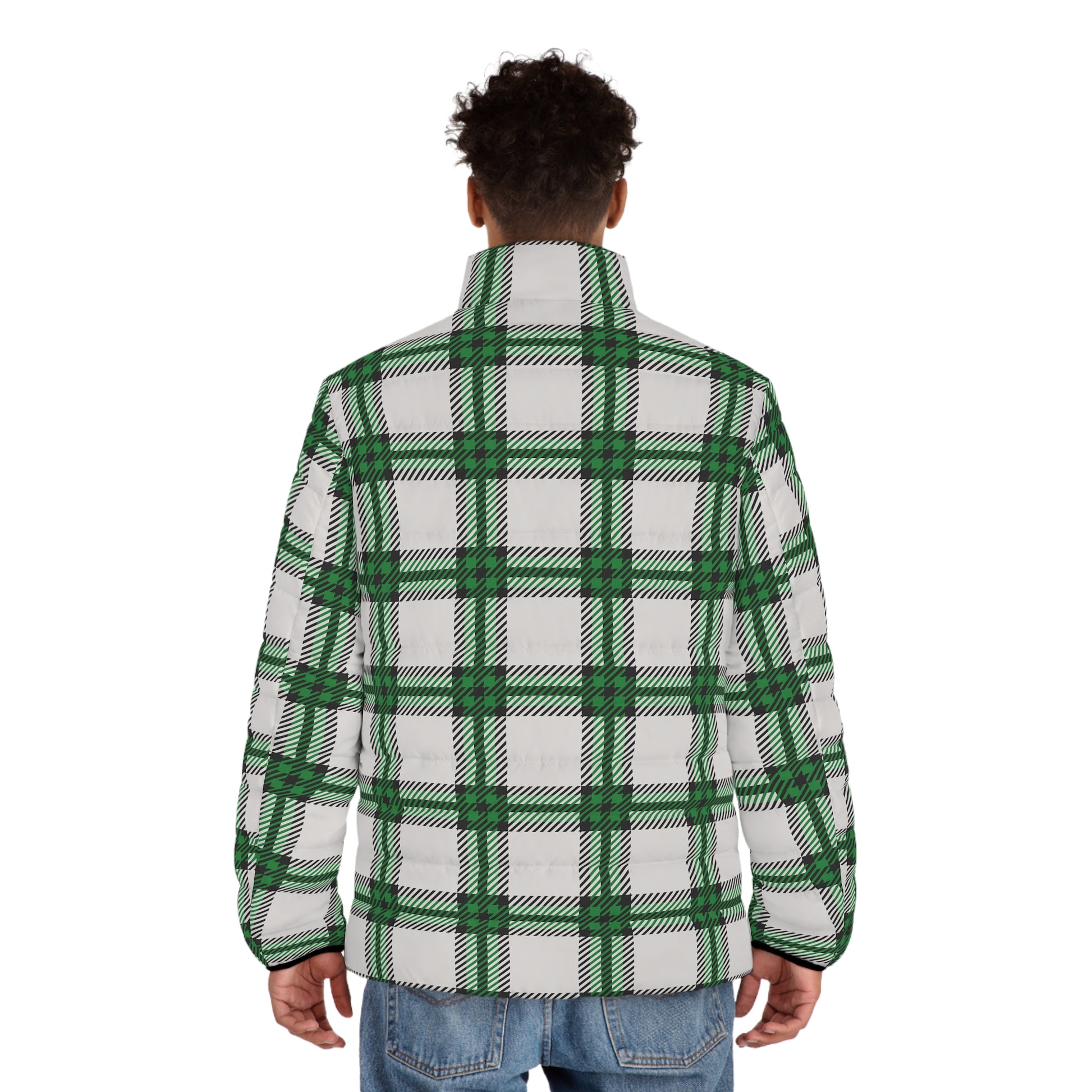 Cloaked in conviction and crafted for the cold, the Shadow Glen men’s puffer is your armor for the season. This striking outerwear piece from the Whispers of Winter: FW25 Collection features an oversized forest plaid pattern in deep green, crisp white, and bold black—symbolic of clarity, growth, and grounded faith.