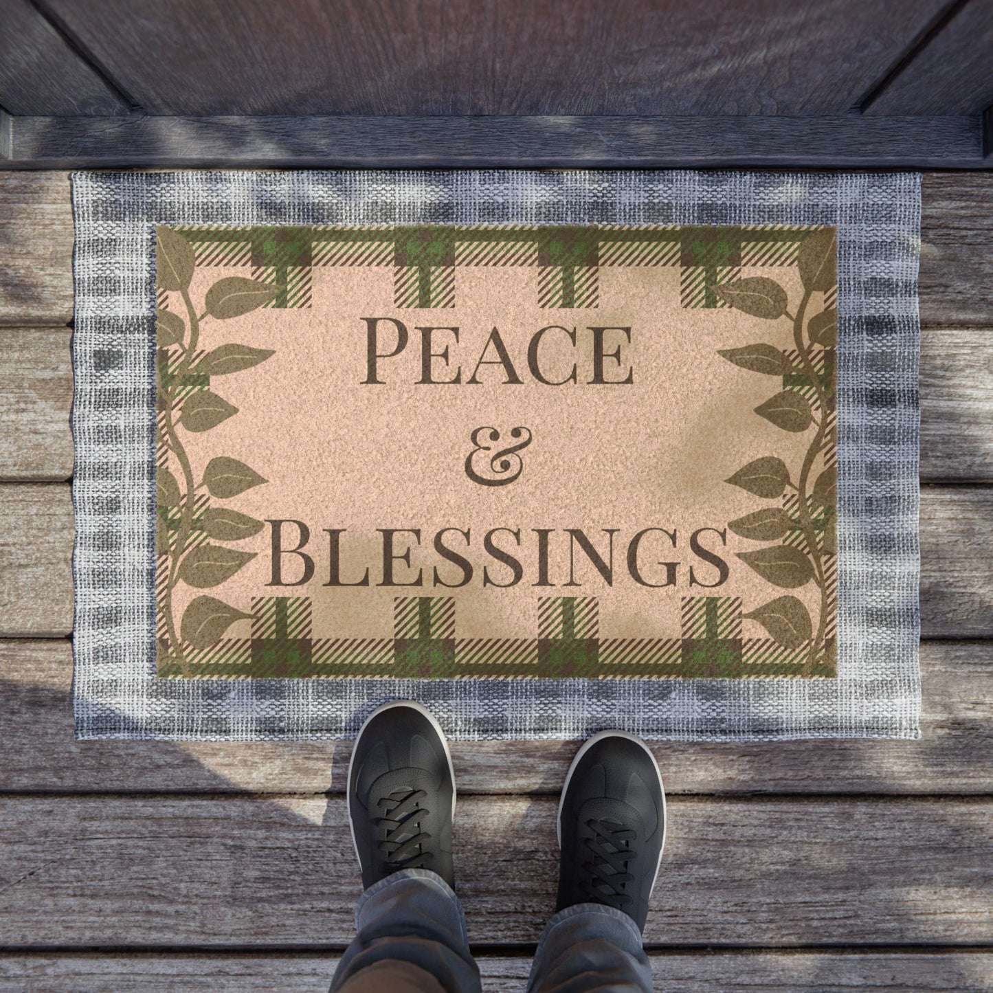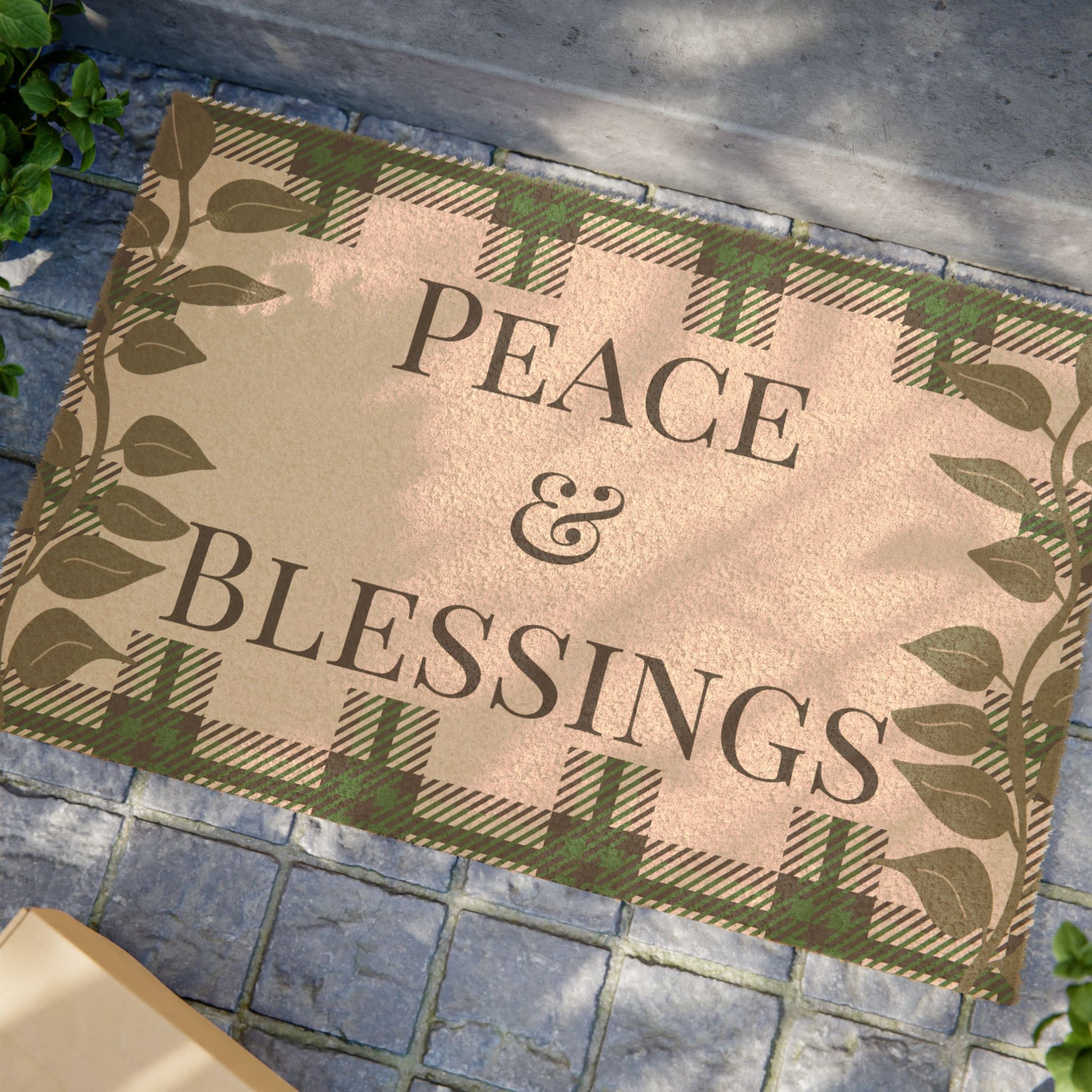 Crafted for durability and style, this outdoor mat features a weather-resistant surface and non-slip rubber backing, making it perfect for porches, stoops, or mudrooms. The “Peace & Blessings” message is both a prayer and a promise — setting the tone for the atmosphere within.