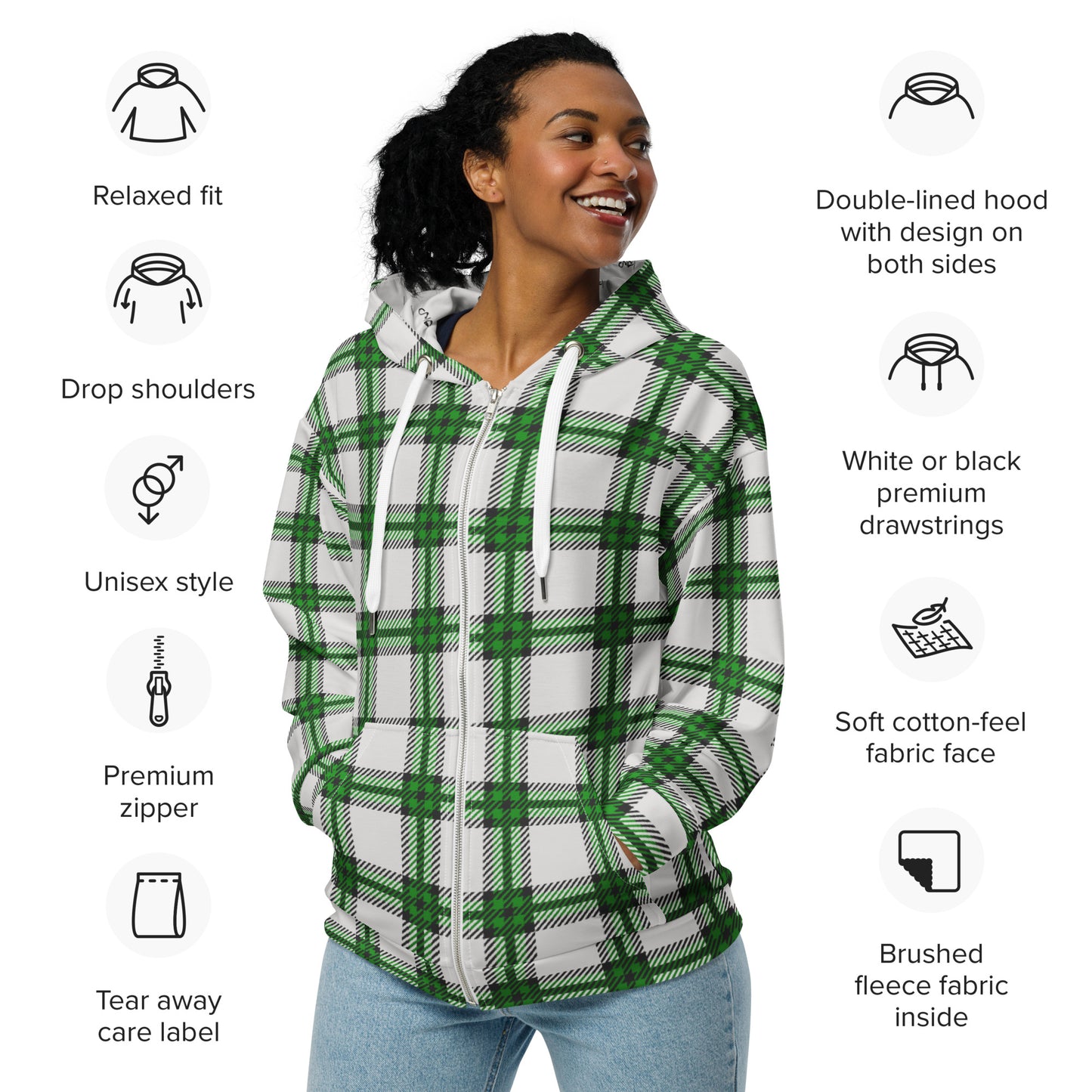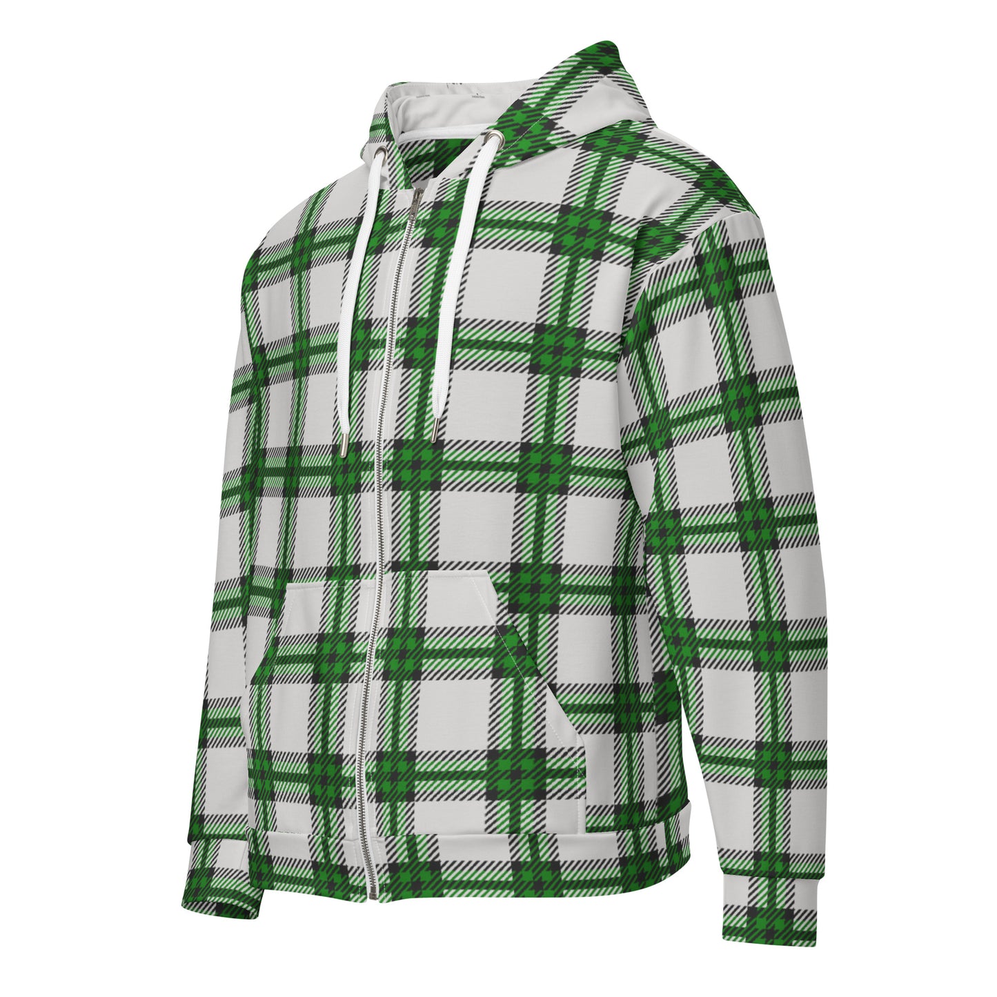 Shadow Glen Unisex Zip Hoodie — Rooted in Plaid, Ready for Battle