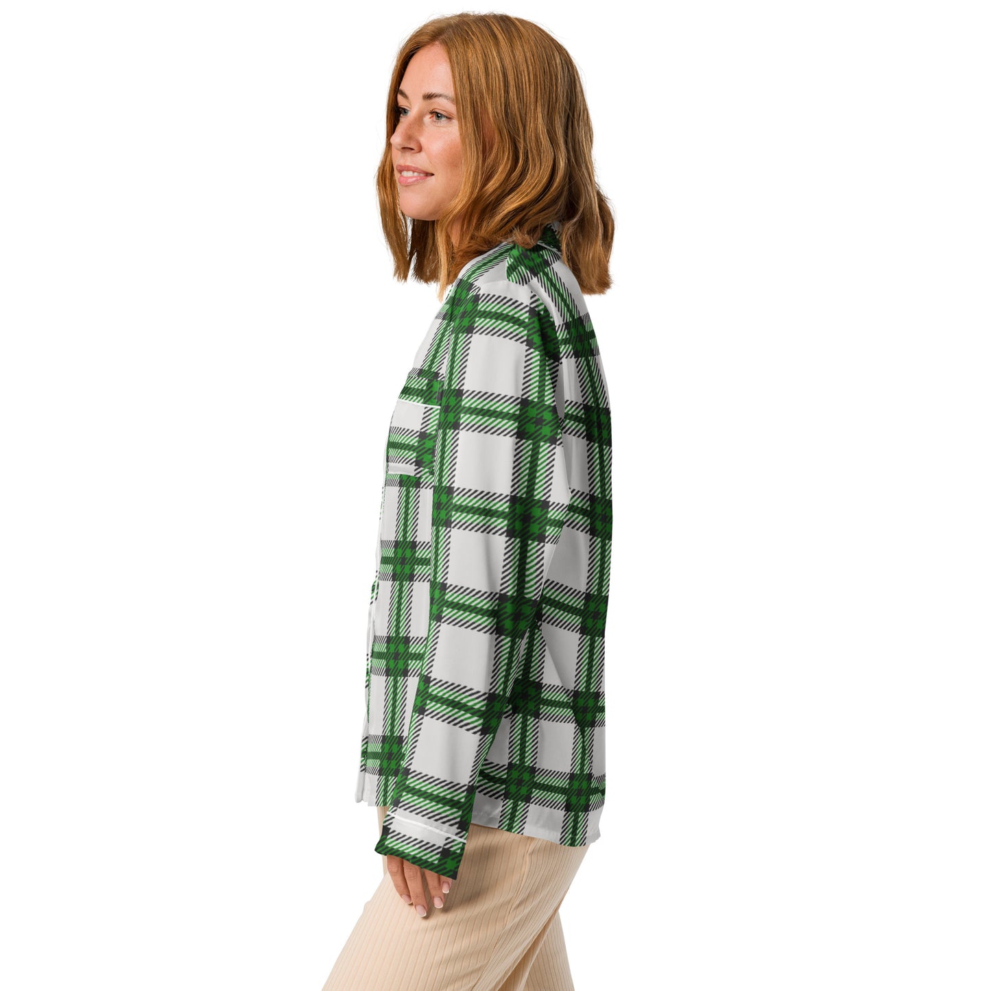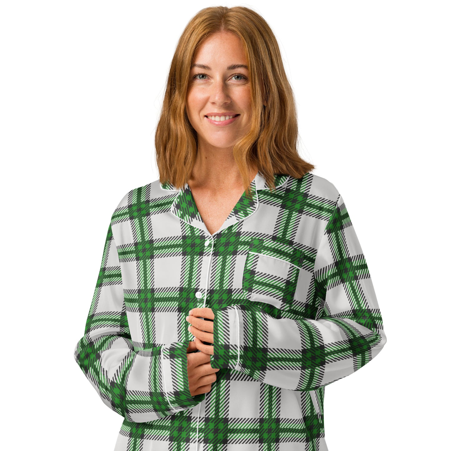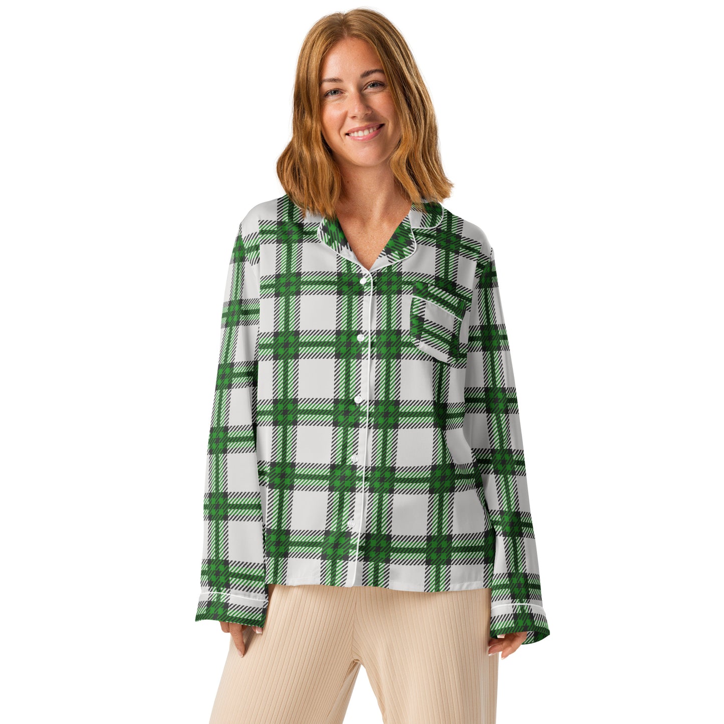 Slip into serenity with the Shadow Glen Women’s Pajama Top, a graceful layering of heritage style and sacred stillness. Draped in the signature evergreen and stone plaid of the Shadow Glen palette, this soft-button sleep shirt blends comfort and conviction in one elegant silhouette.