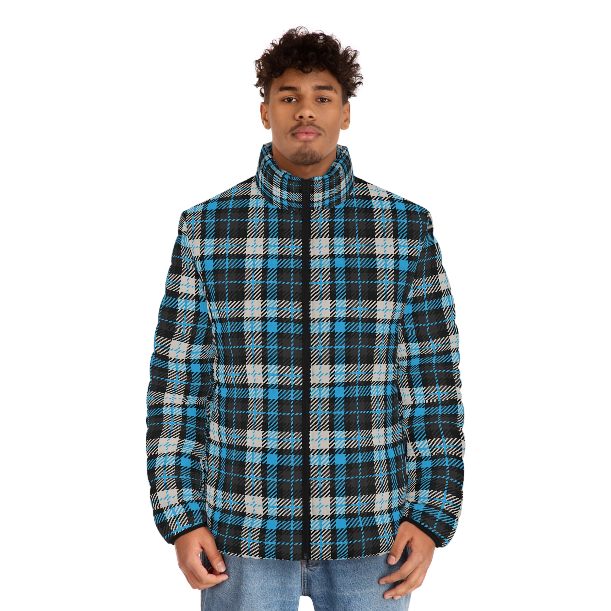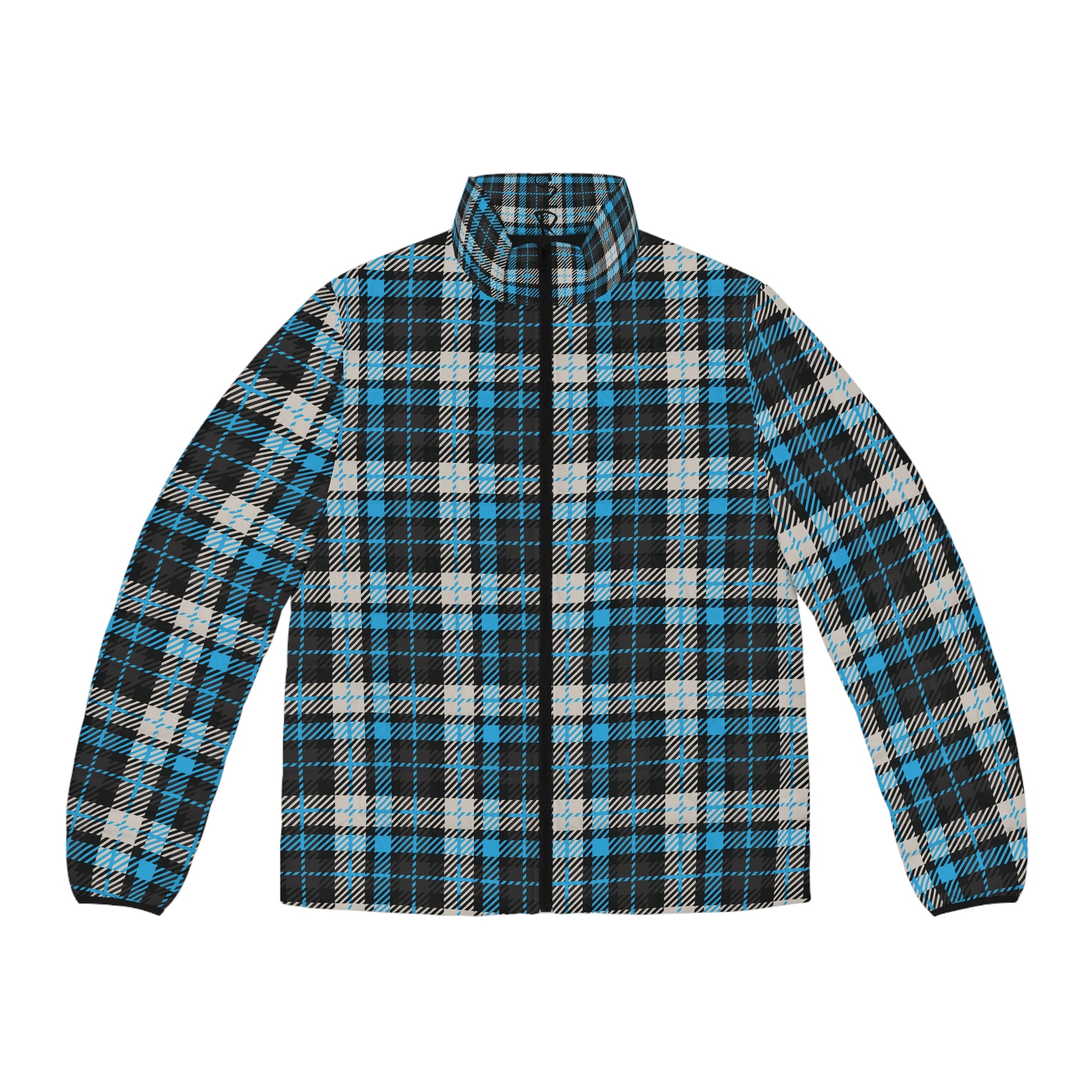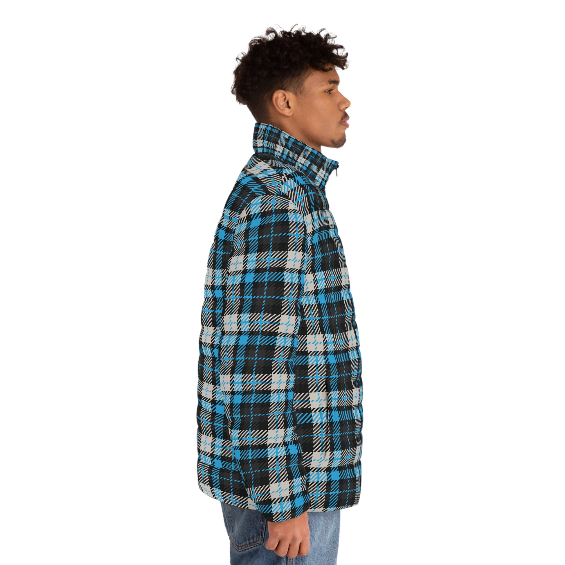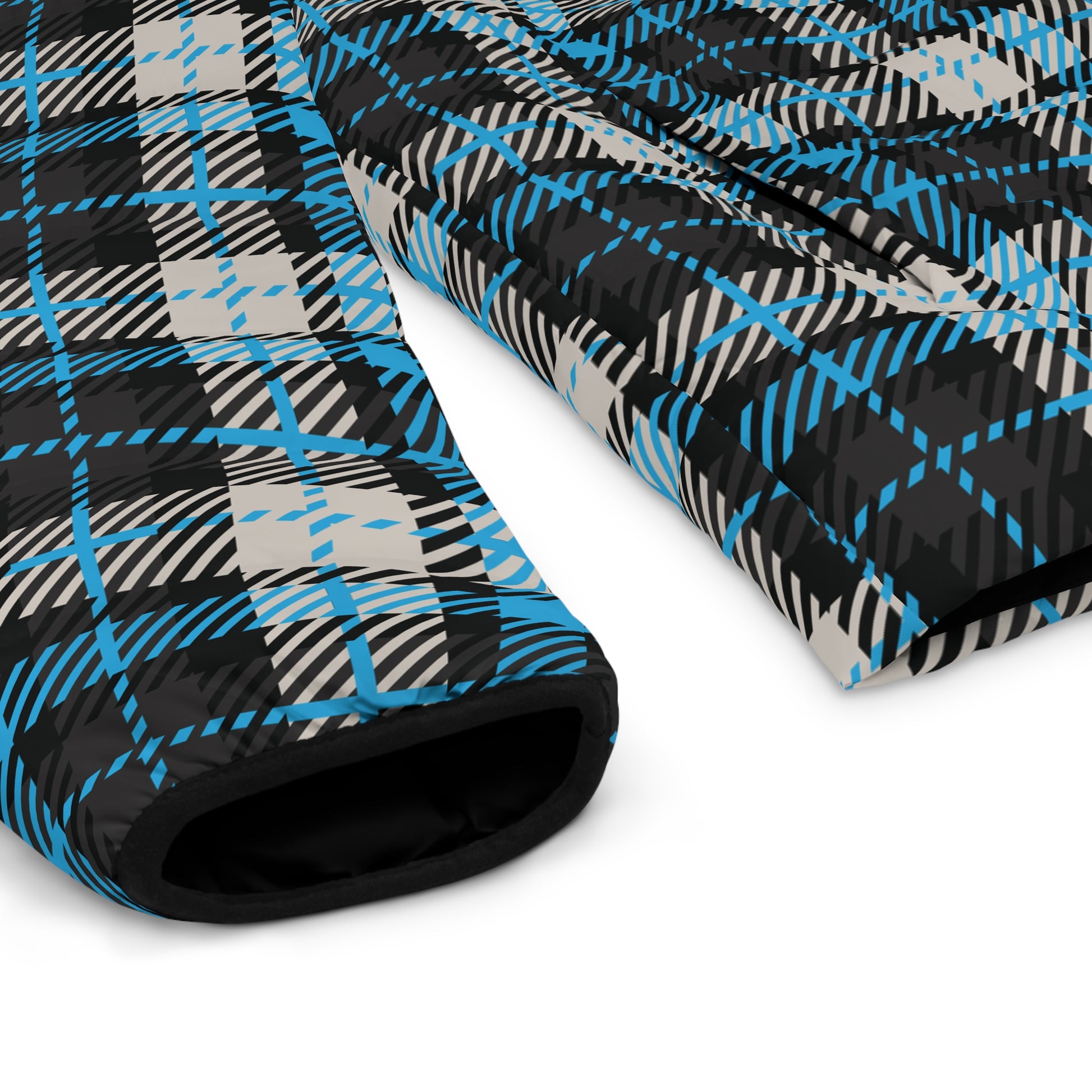Not every crossing is loud. Some are made in silence—without applause, without approval, but with purpose. The Silent Crossing Men’s Puffer Jacket carries that kind of energy: a bold plaid in gamma blue, charcoal black, and stone beige, designed for those who move in quiet strength.