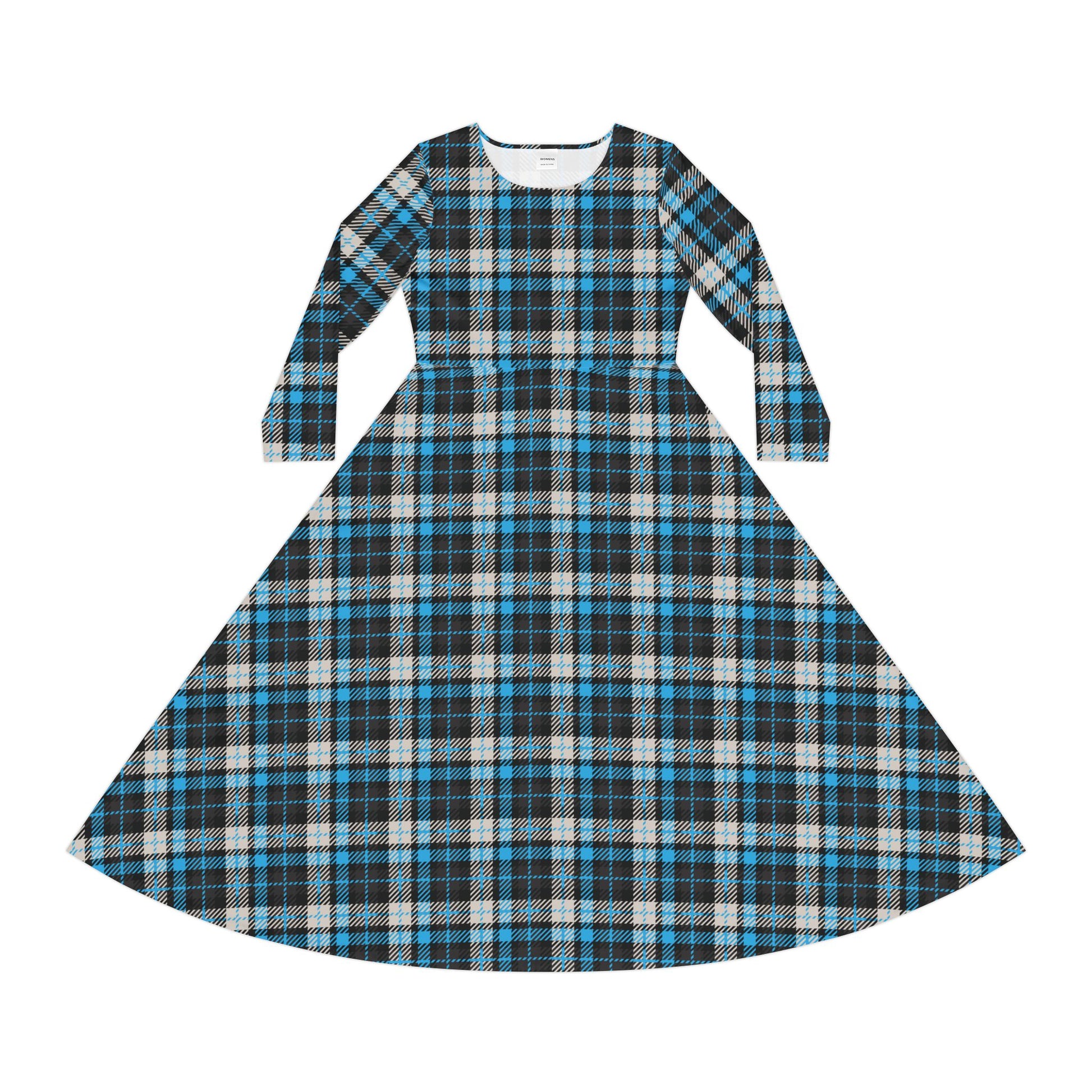 Silent Crossing – Women’s Long Sleeve Tartan Midi Dress