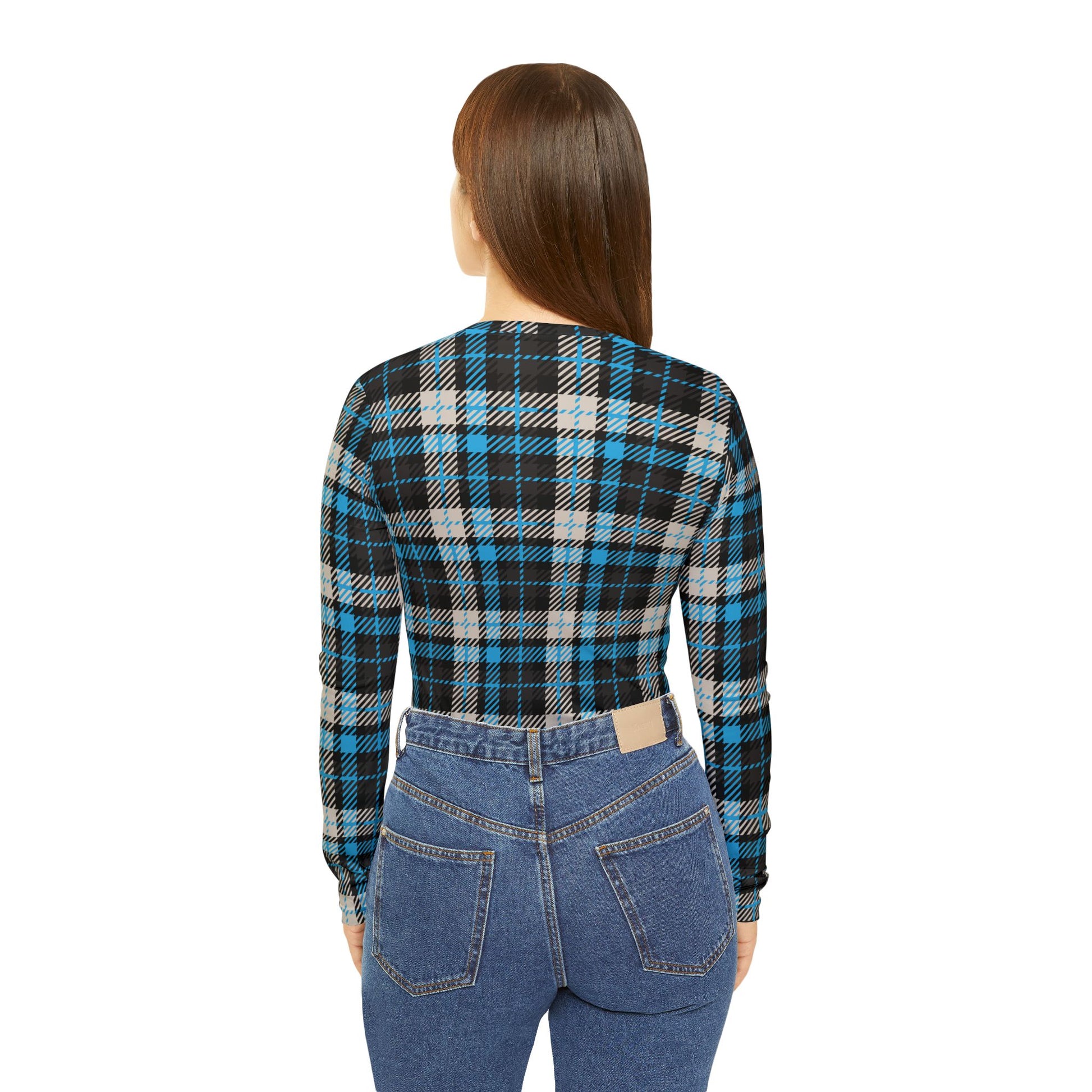 The Silent Crossing Women’s V-Neck is a quiet but powerful layering piece, wrapped in the season’s boldest winter plaid: a woven tapestry of gamma blue, stone beige, and charcoal black.