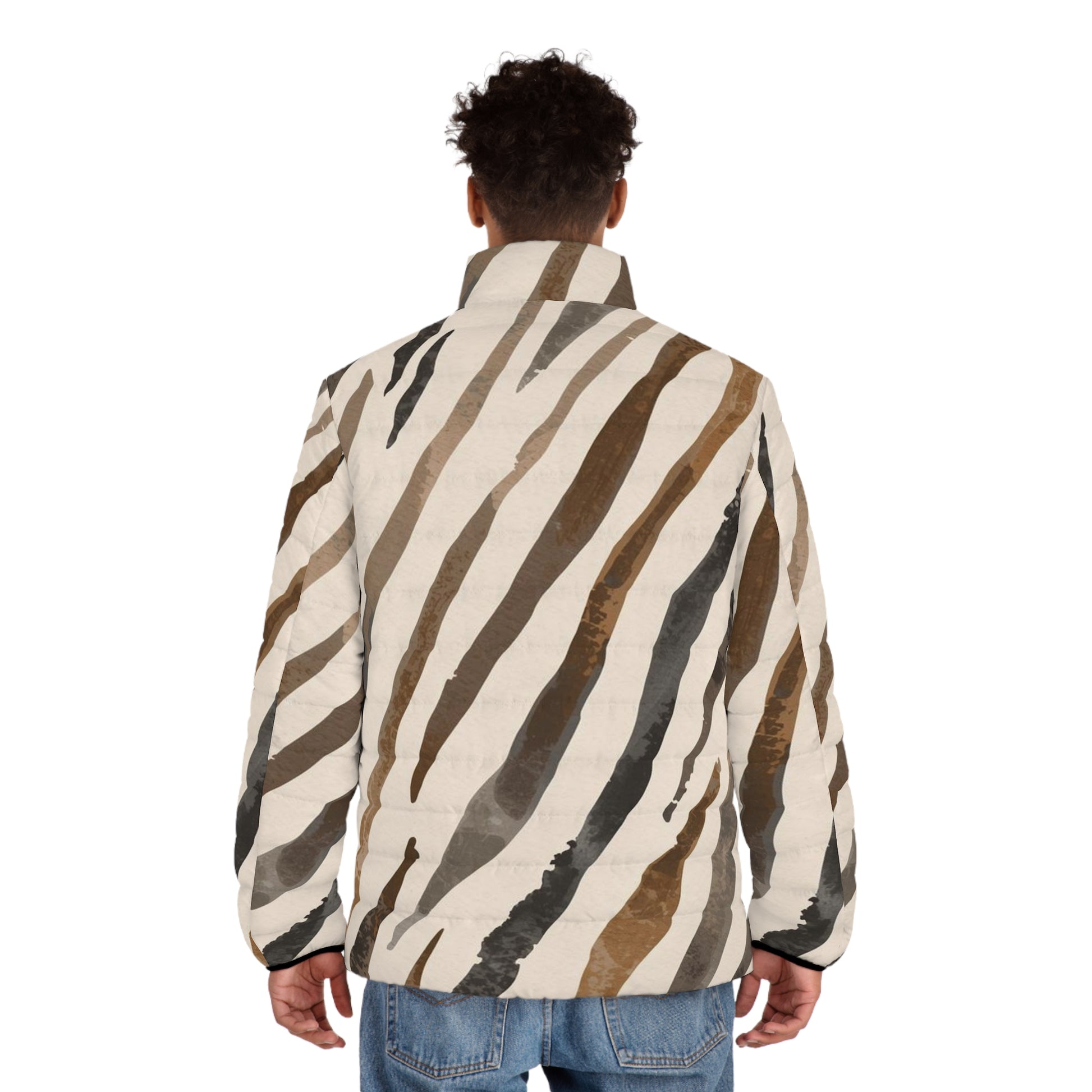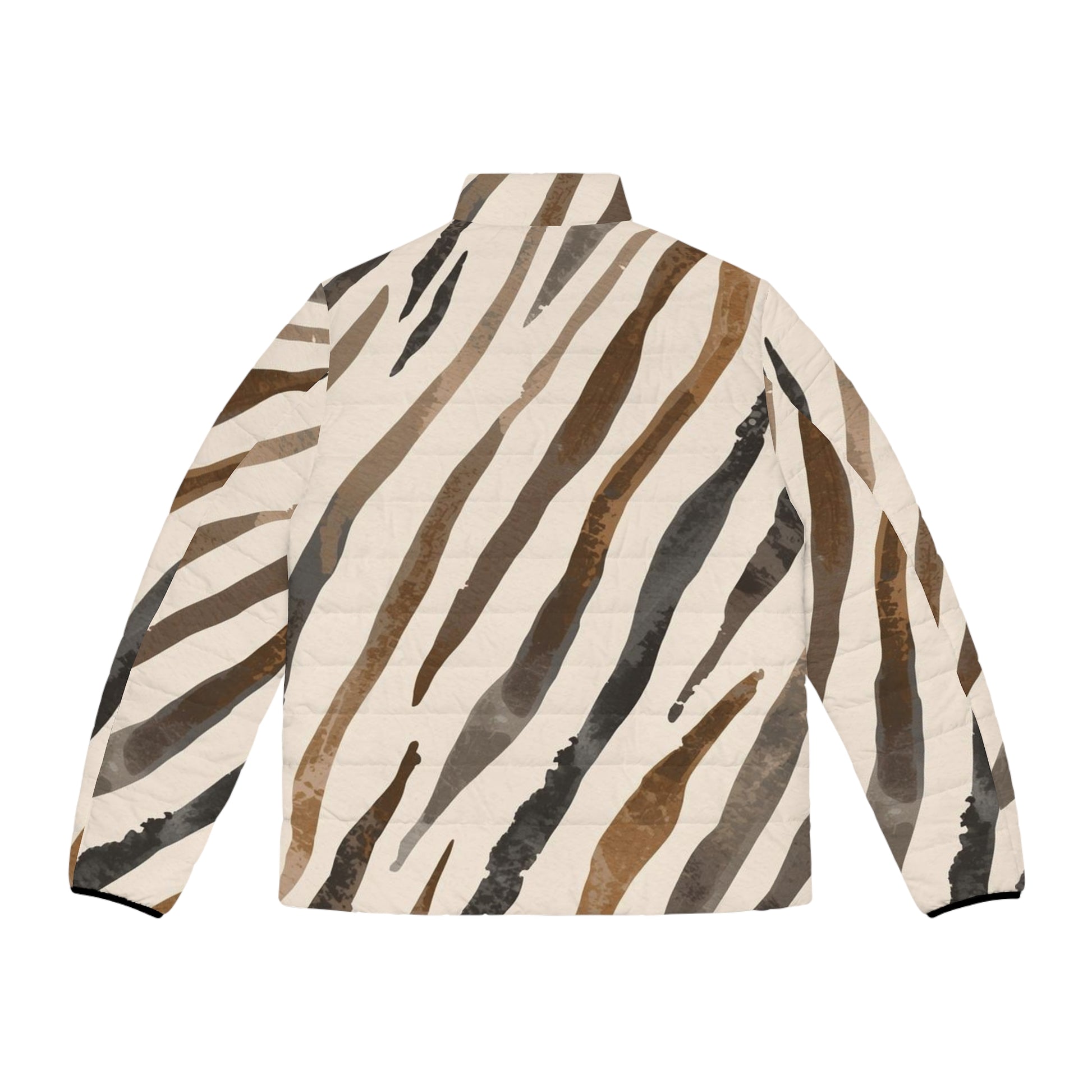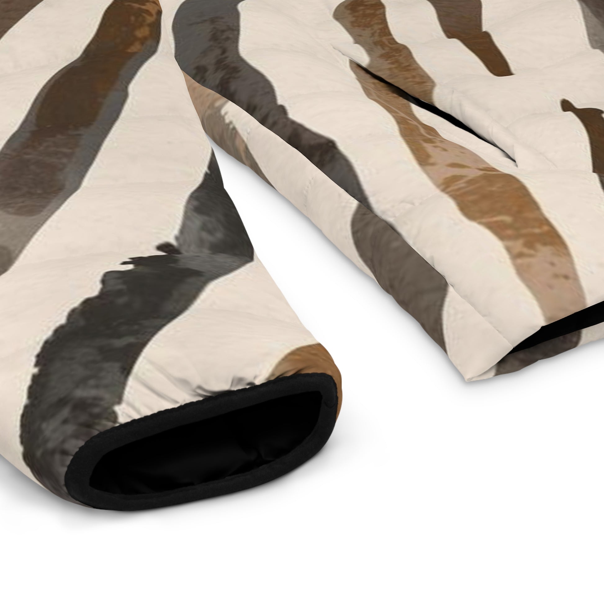 The Silent Stride men’s puffer moves like wisdom — steady, focused, and unfazed by the noise. Designed for those who walk with power even when they’re quiet, this jacket covers you in both warmth and intention. The abstract tiger print whispers of control and quiet courage — a reminder that not every roar needs to be heard to make impact.