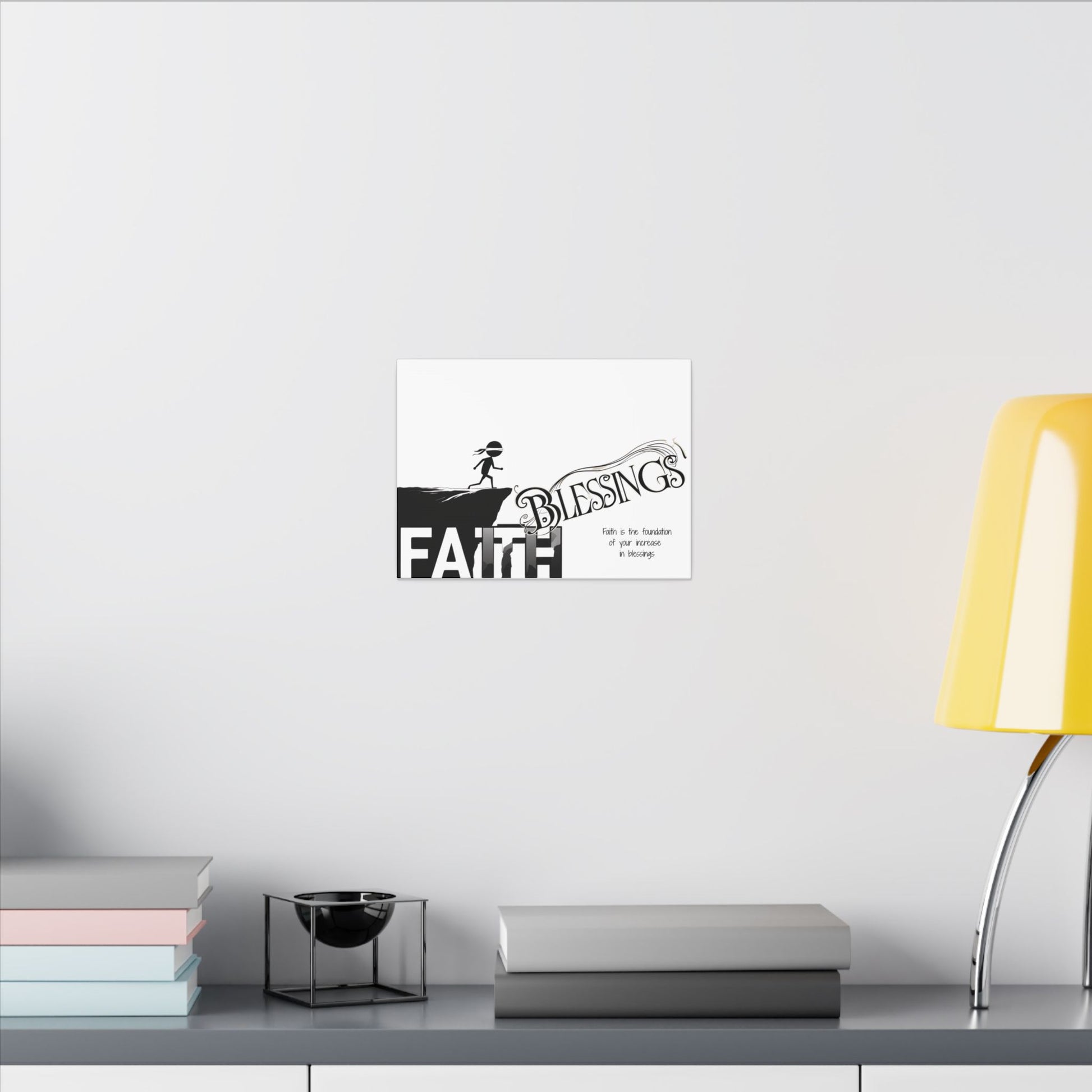 Step out in faith, even when the path ahead is unseen. This powerful canvas features a blindfolded figure walking boldly across the word “FAITH” toward the flowing promise of “BLESSINGS.” A visual reminder that obedience in the unseen leads to overflow in the Spirit. The hand-lettered message reads: