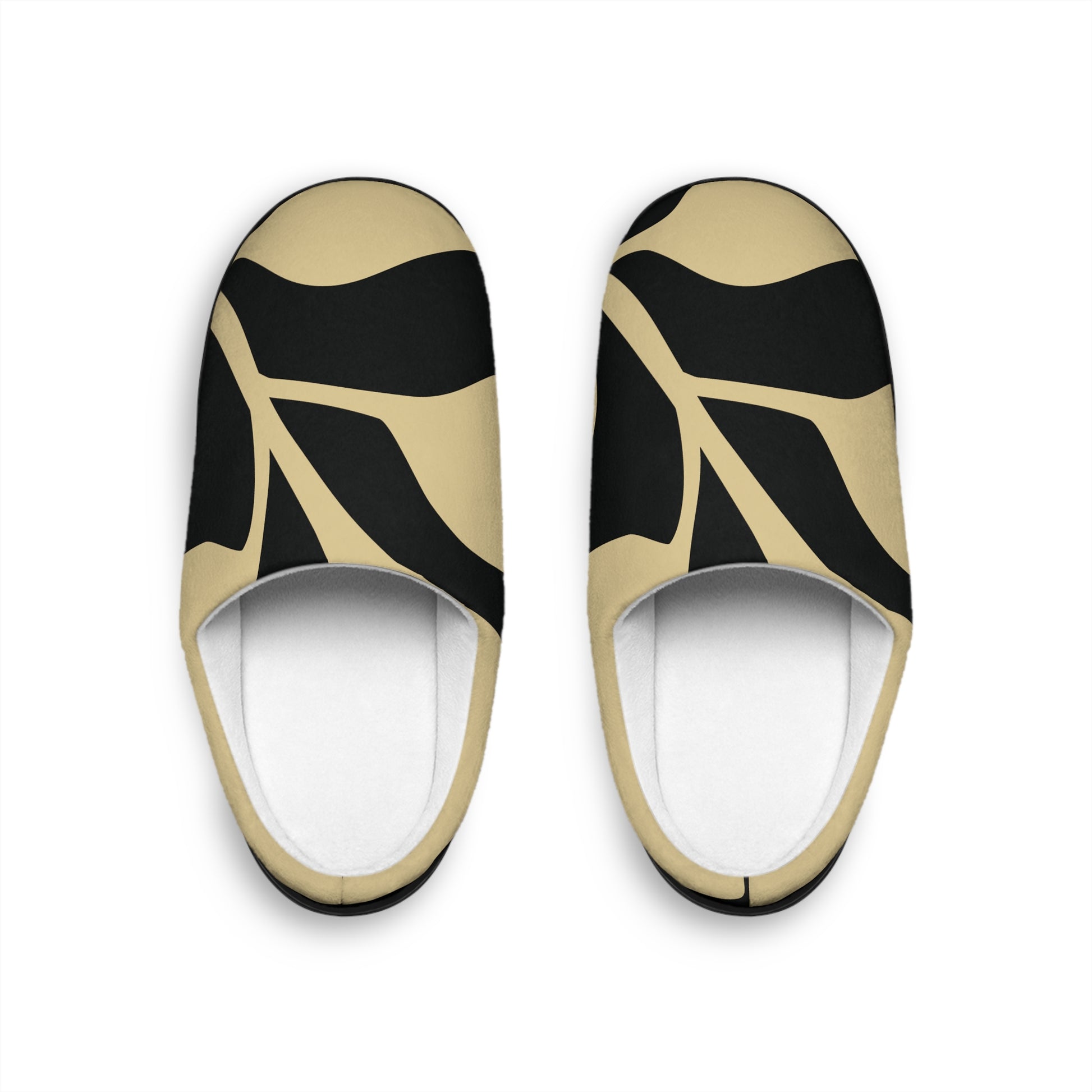 Step into elegance with these striking black-and-gold slippers featuring a bold abstract branch design. Whether you're winding down or starting your day, these cozy slip-ons bring comfort and elevated style to your every step. Soft, supportive, and seriously stylish β these slippers turn everyday wear into a statement of confidence.