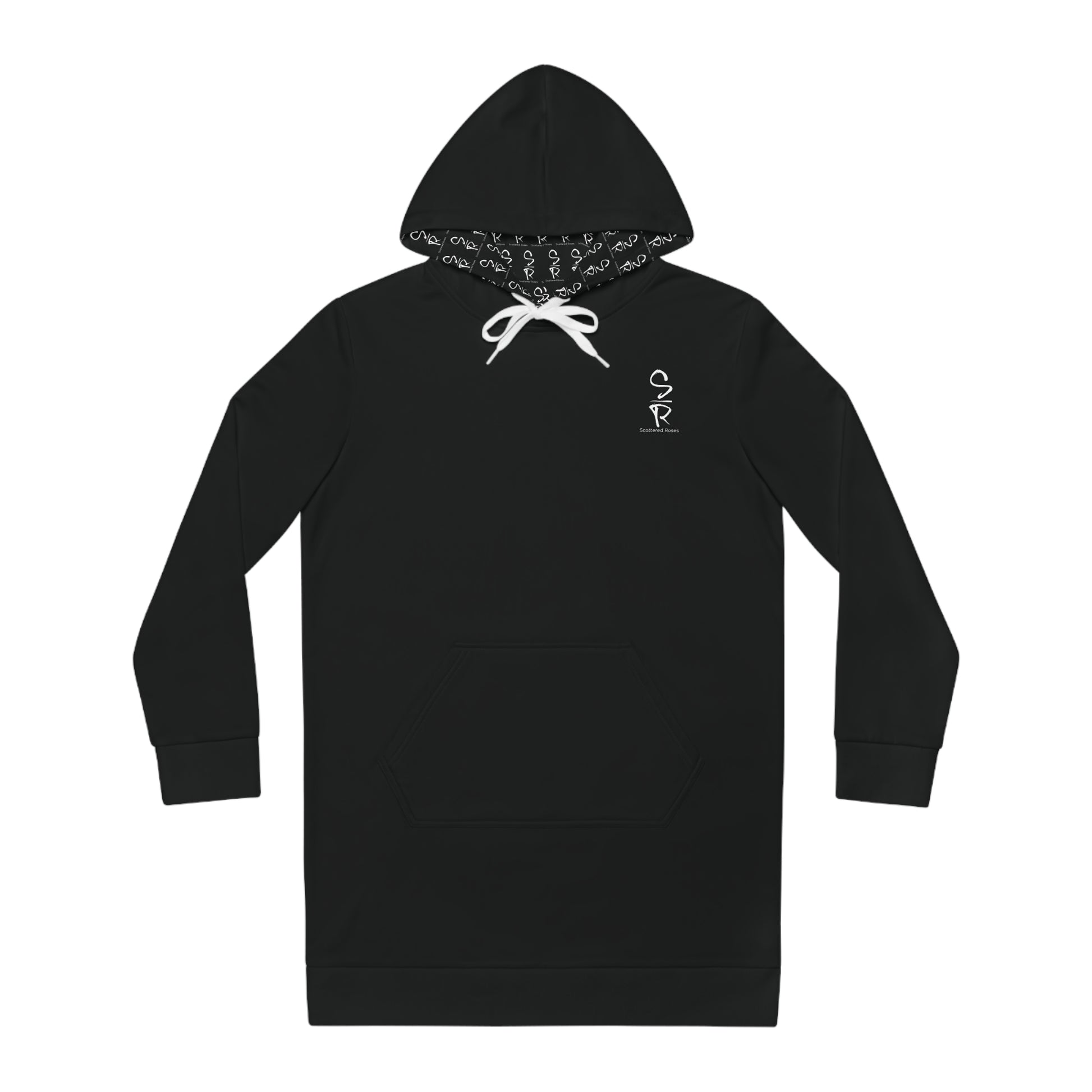 Step into the day covered in confidence with the Anointed & Unshaken Hoodie Dress. Minimalist in design yet rich in meaning, its sleek black canvas is accented by the Scattered Roses emblem — a quiet reminder of your God-given identity. The cozy hood, lined with signature script, wraps you in warmth, while the relaxed fit moves with you through every mission and moment.