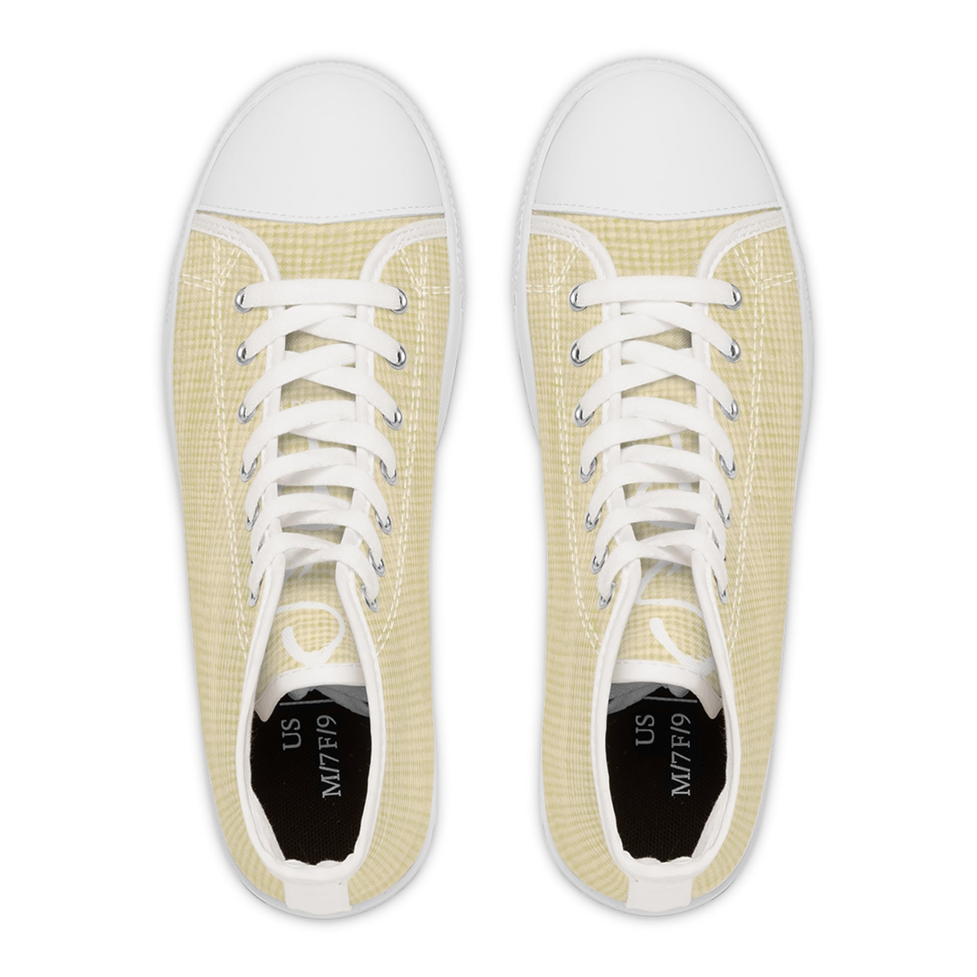Step into the day with Sunlight Steps, where comfort meets effortless style. These women’s high-top sneakers feature a gentle buttery hue with a subtle printed texture, pairing everyday versatility with a fresh, uplifting vibe. Built for comfort, ready for adventure, and perfect for adding a soft pop of color to any outfit.