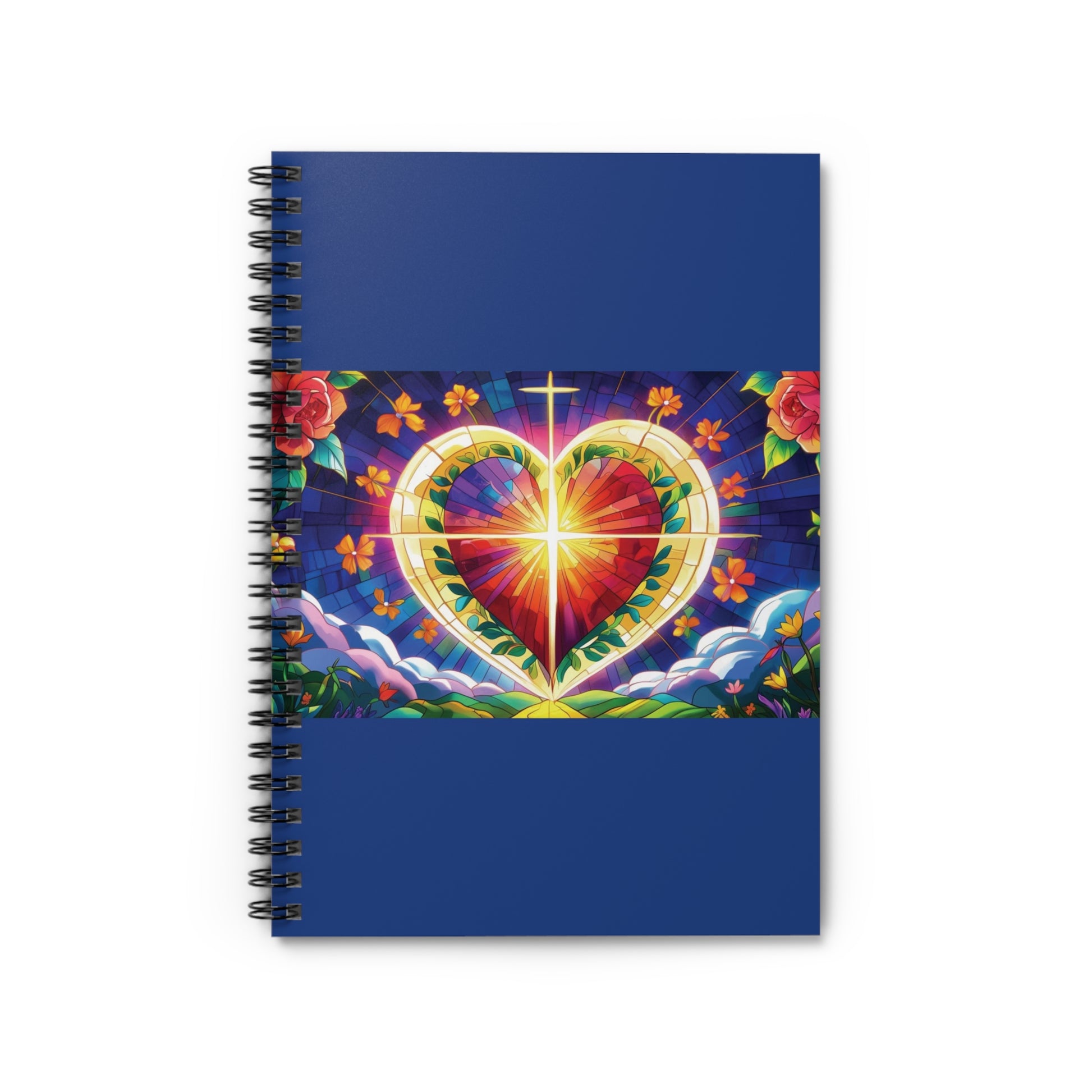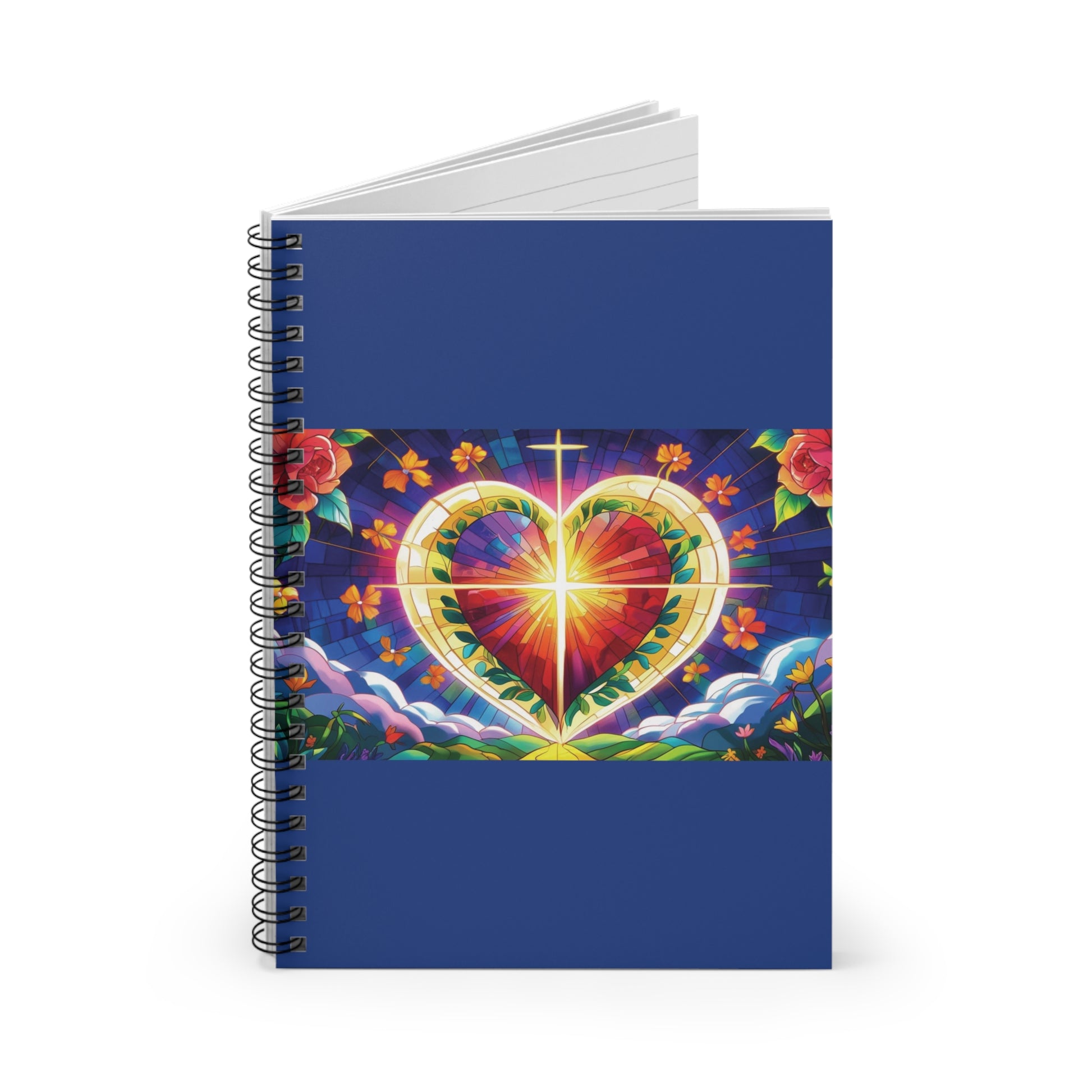 Let your notes, prayers, and dreams be filled with the light of His love. This vibrant spiral notebook features a radiant heart design with a glowing cross at the center, surrounded by blooming flowers and a stained-glass effect. Perfect for Bible study notes, daily journaling, or capturing creative ideas, it’s a beautiful reminder that everything you do can flow from a heart rooted in Christ.